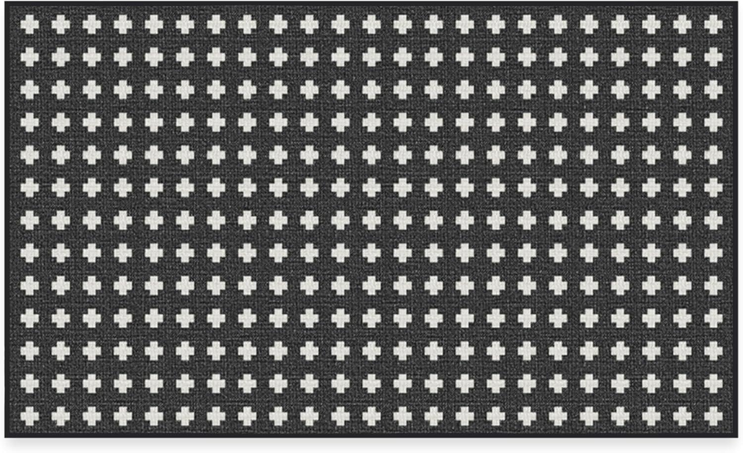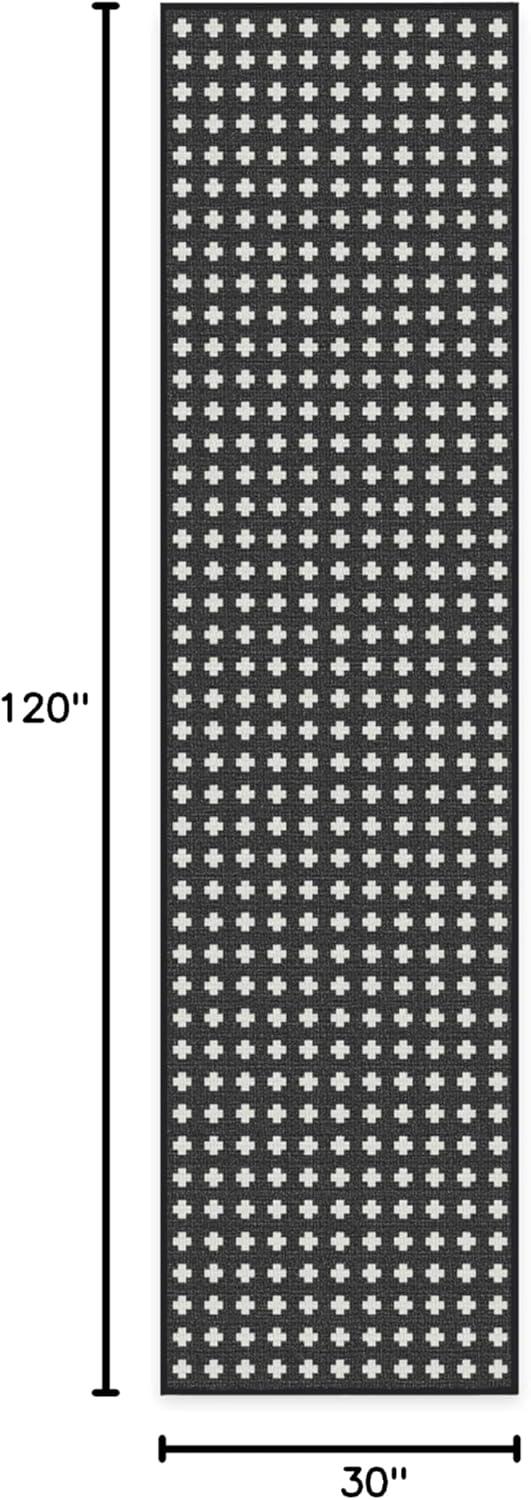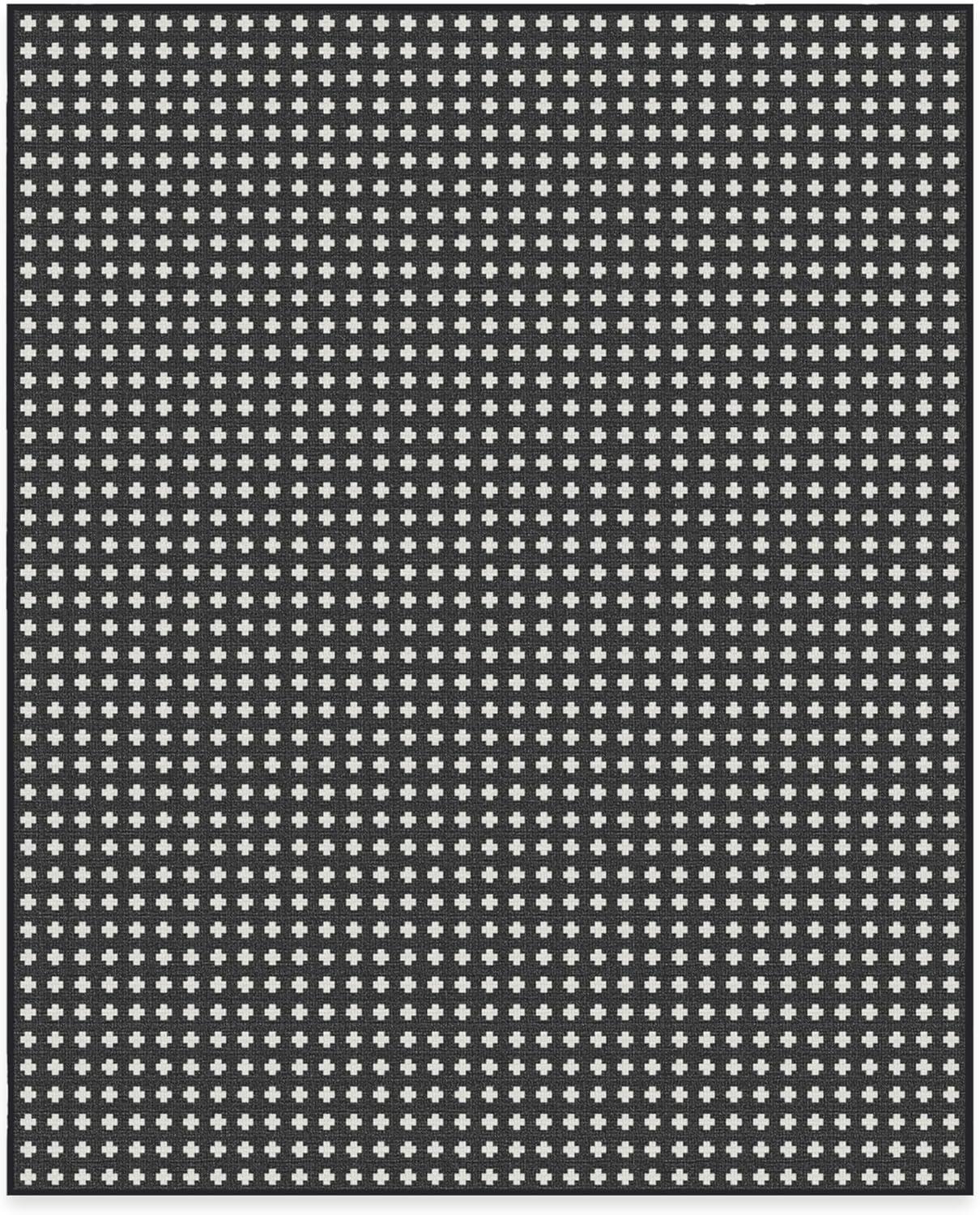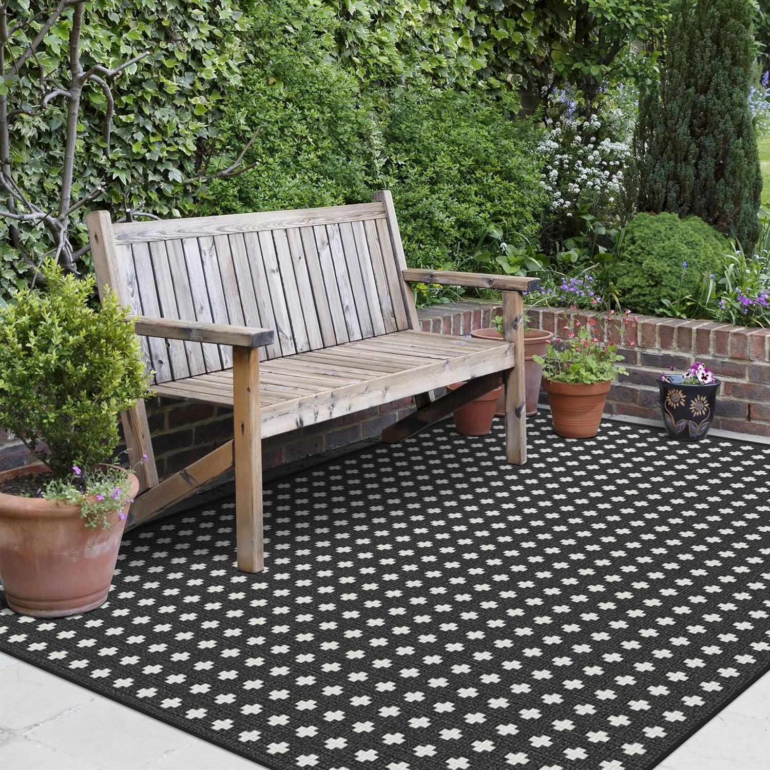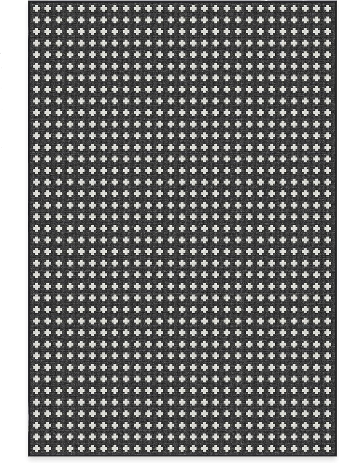 RUGGABLE Washable Area Rug – Outdoor Gingham Plaid Black & White 3×5, Stain-Resistant, Non-Slip – Small Machine Washable Rugs for Entryway, Patio, Balcony, Deck, & Porch–with Standard Pad(Adde Black – Standard Pad)