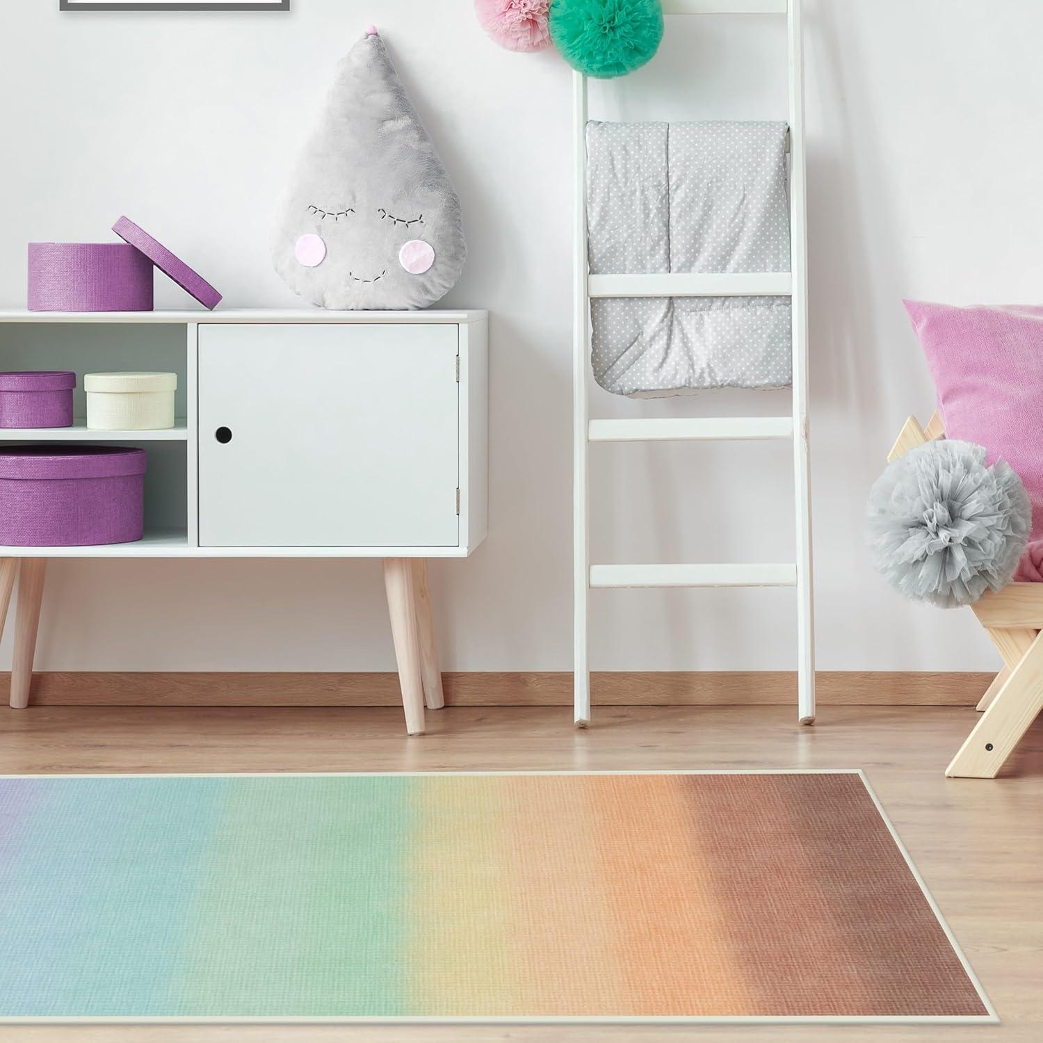 MODERN RUG TECHNOLOGY: Elevate your space with our captivating Washable Carpet, featuring seventeen happy colors, with a mesmerizing watercolor wash effect. It perfectly blends classic and contemporary design, adding a playful vibe to girls or boys bedroom, nursery, or playroom.