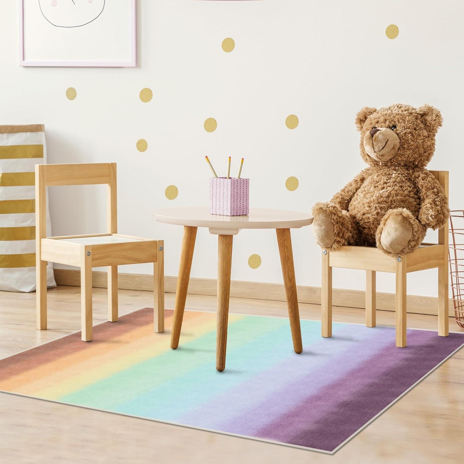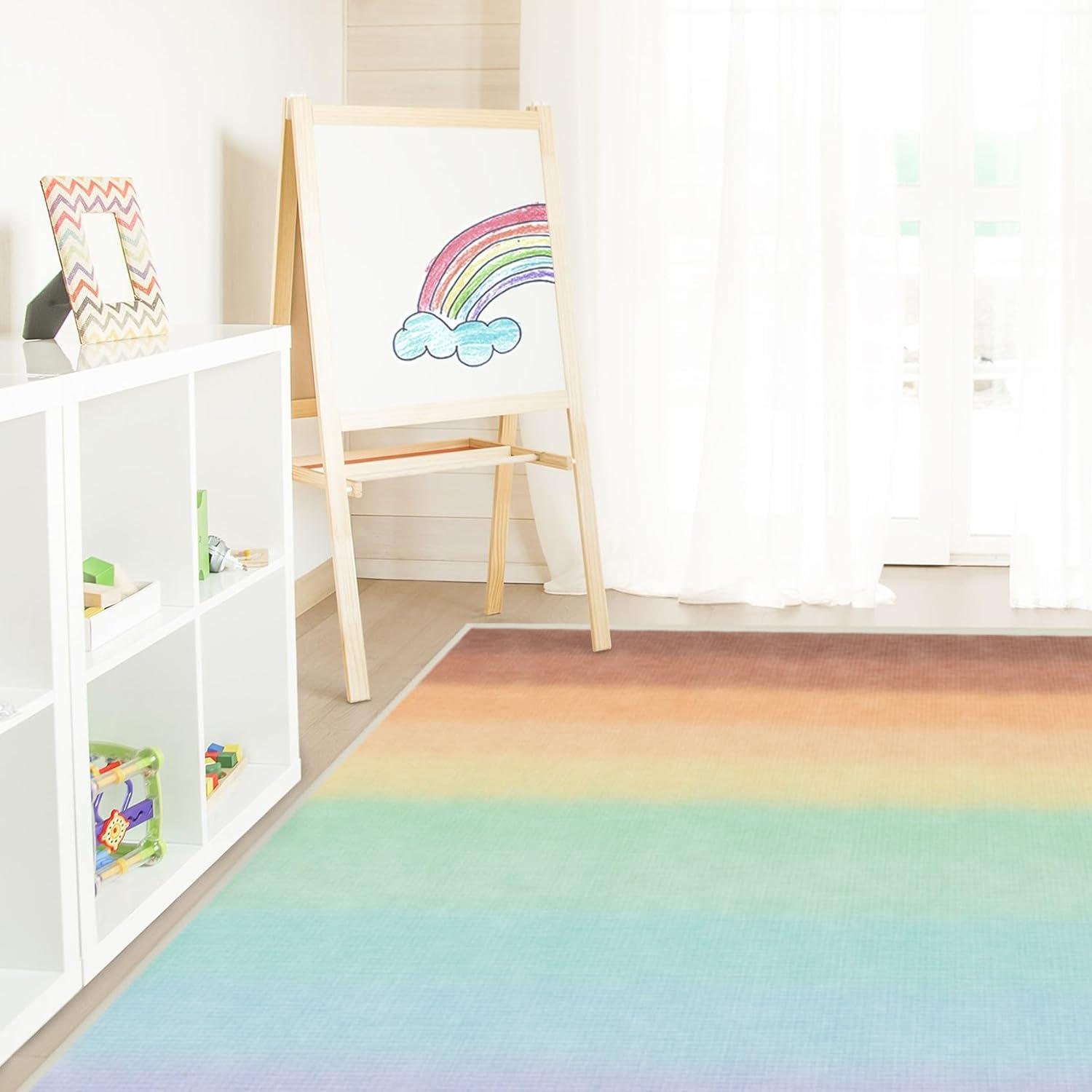 MODERN RUG TECHNOLOGY: Elevate your space with our captivating Washable Carpet, featuring seventeen happy colors, with a mesmerizing watercolor wash effect. It perfectly blends classic and contemporary design, adding a playful vibe to girls or boys bedroom, nursery, or playroom.