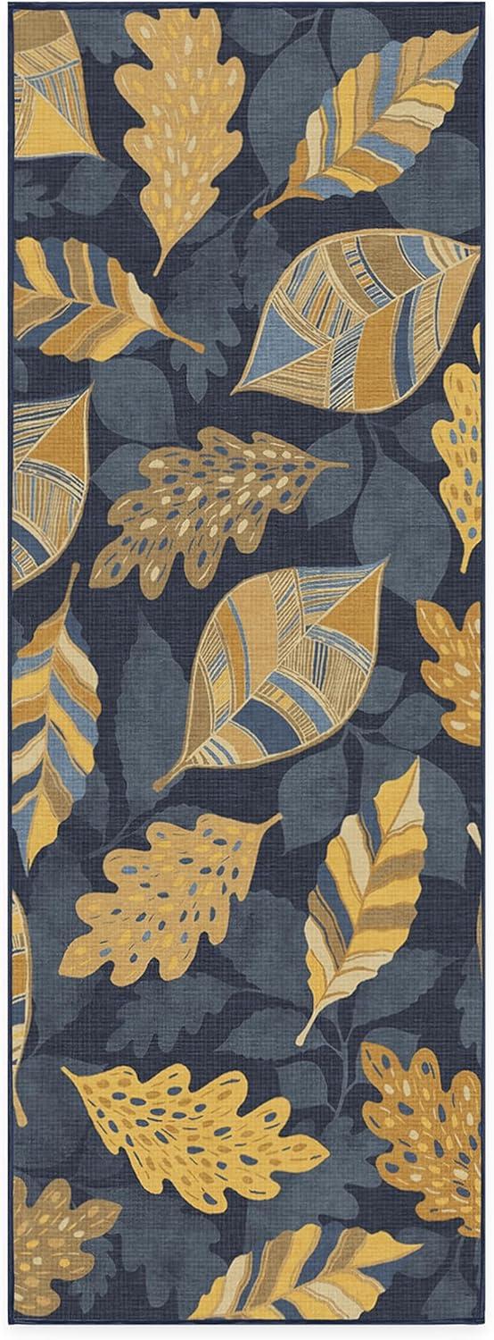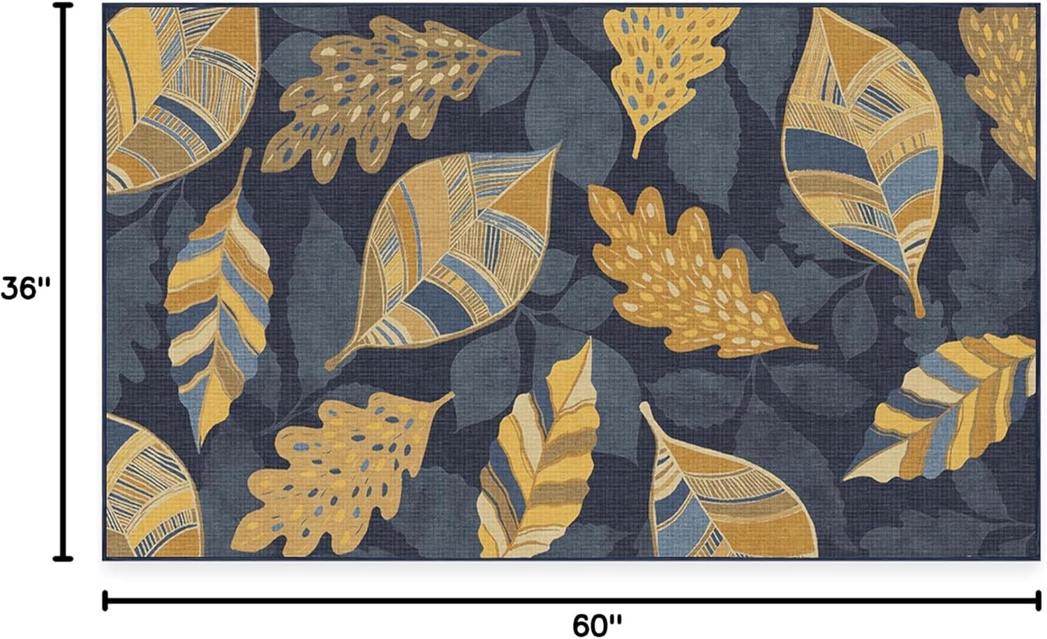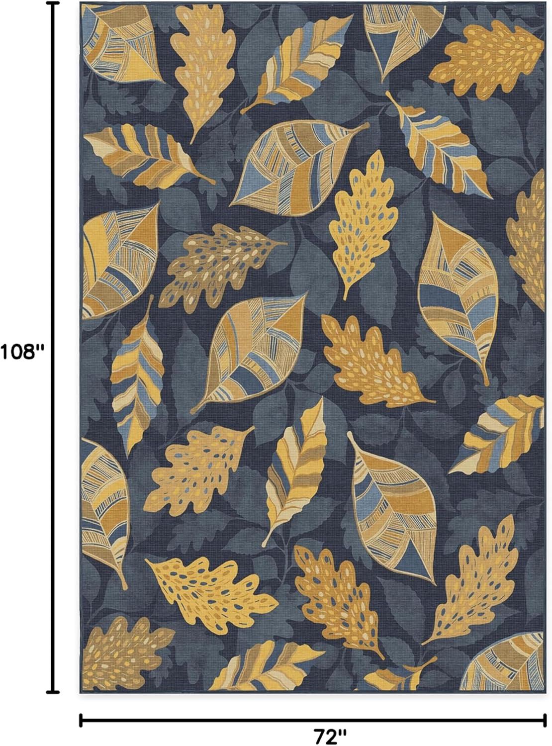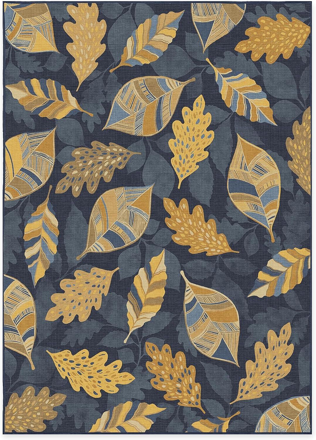 SAY HELLO TO FALL: Designed with gold-colored leaves against a dark blue background, our Aurelia Navy Gold Rug is ready to warm up any space. The varied patterns with a silhouetted background of falling leaves bring dimension and layers to this seasonal rug with a festive fall vibe.
