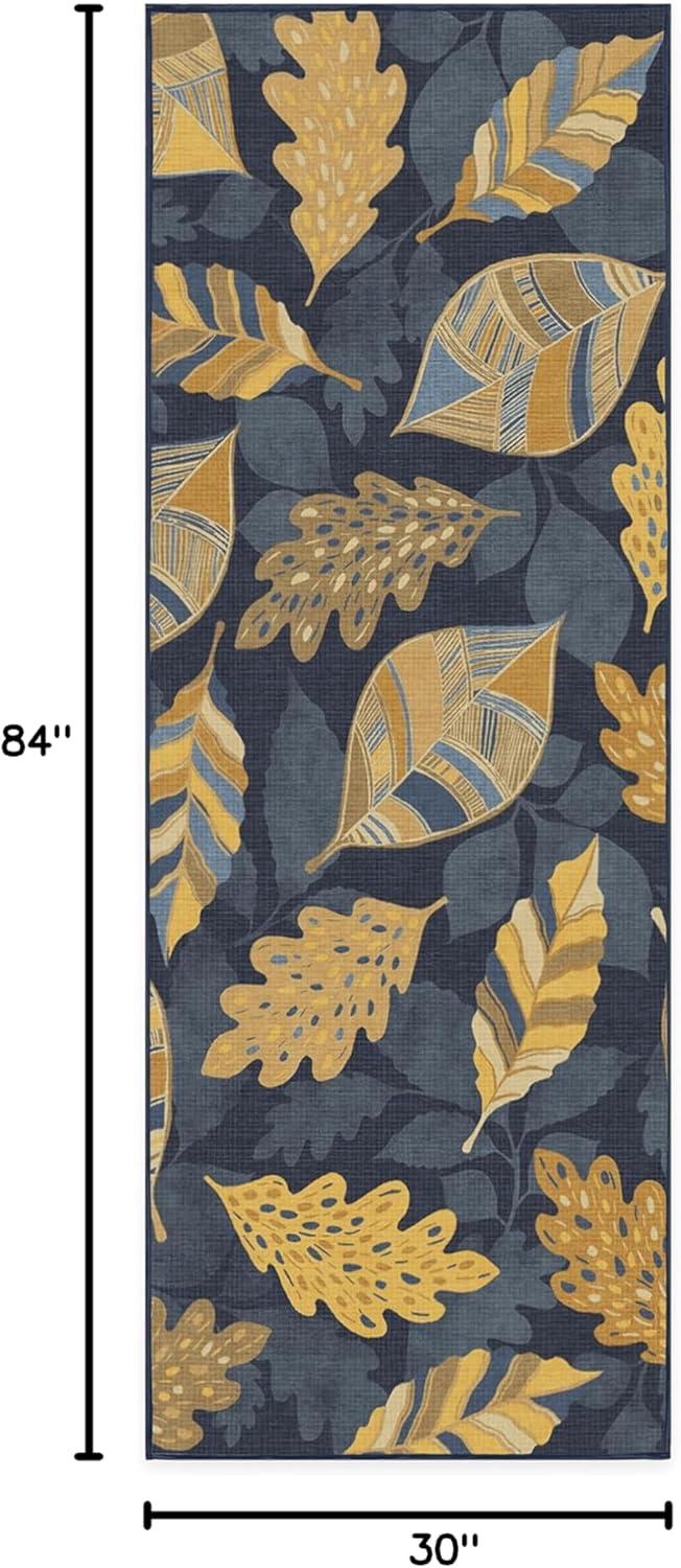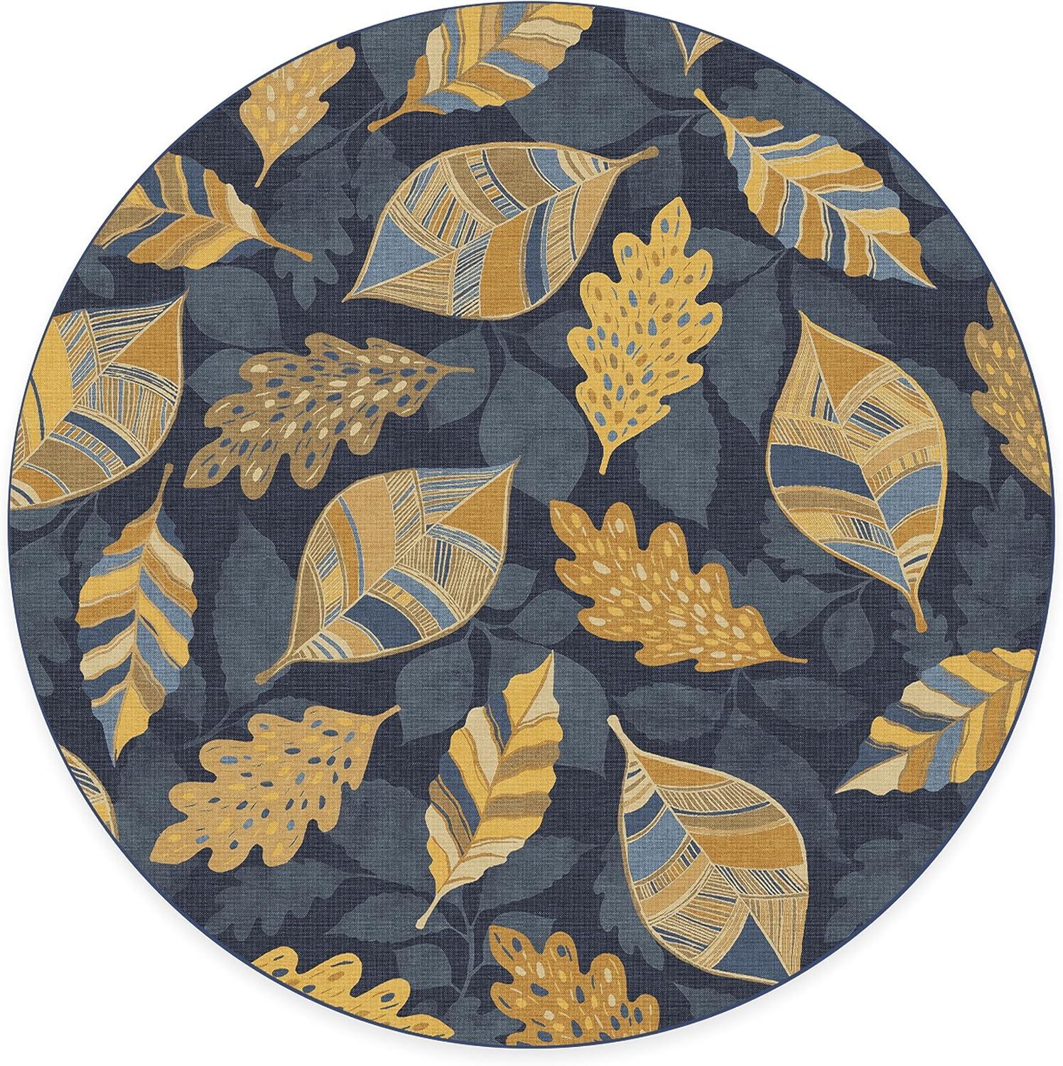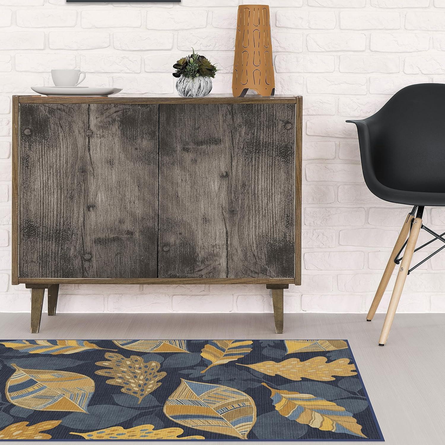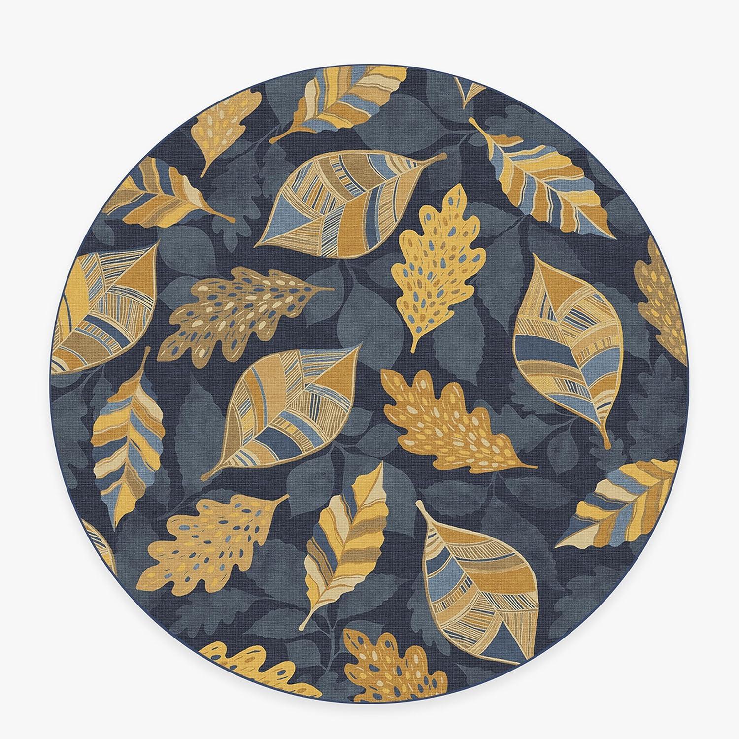 SAY HELLO TO FALL: Designed with gold-colored leaves against a dark blue background, our Aurelia Navy Gold Rug is ready to warm up any space. The varied patterns with a silhouetted background of falling leaves bring dimension and layers to this seasonal rug with a festive fall vibe.