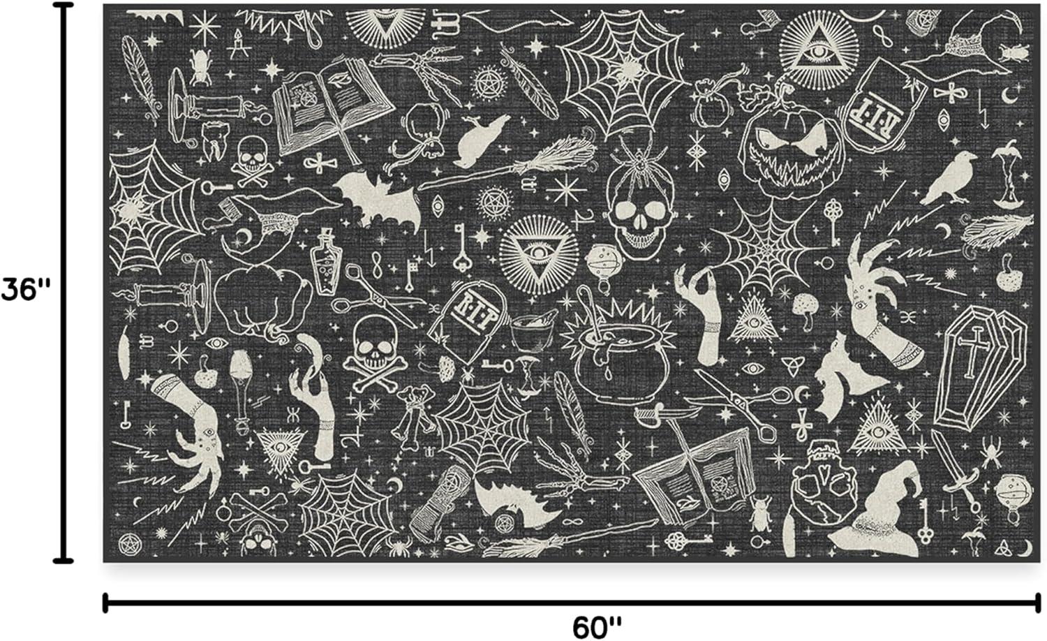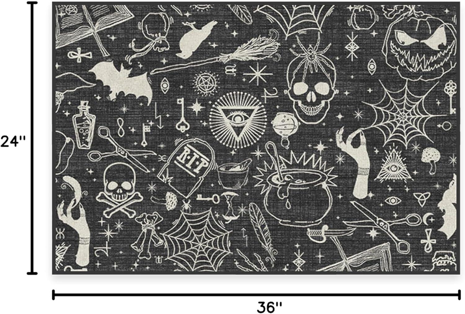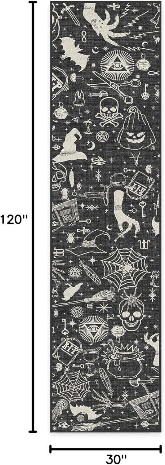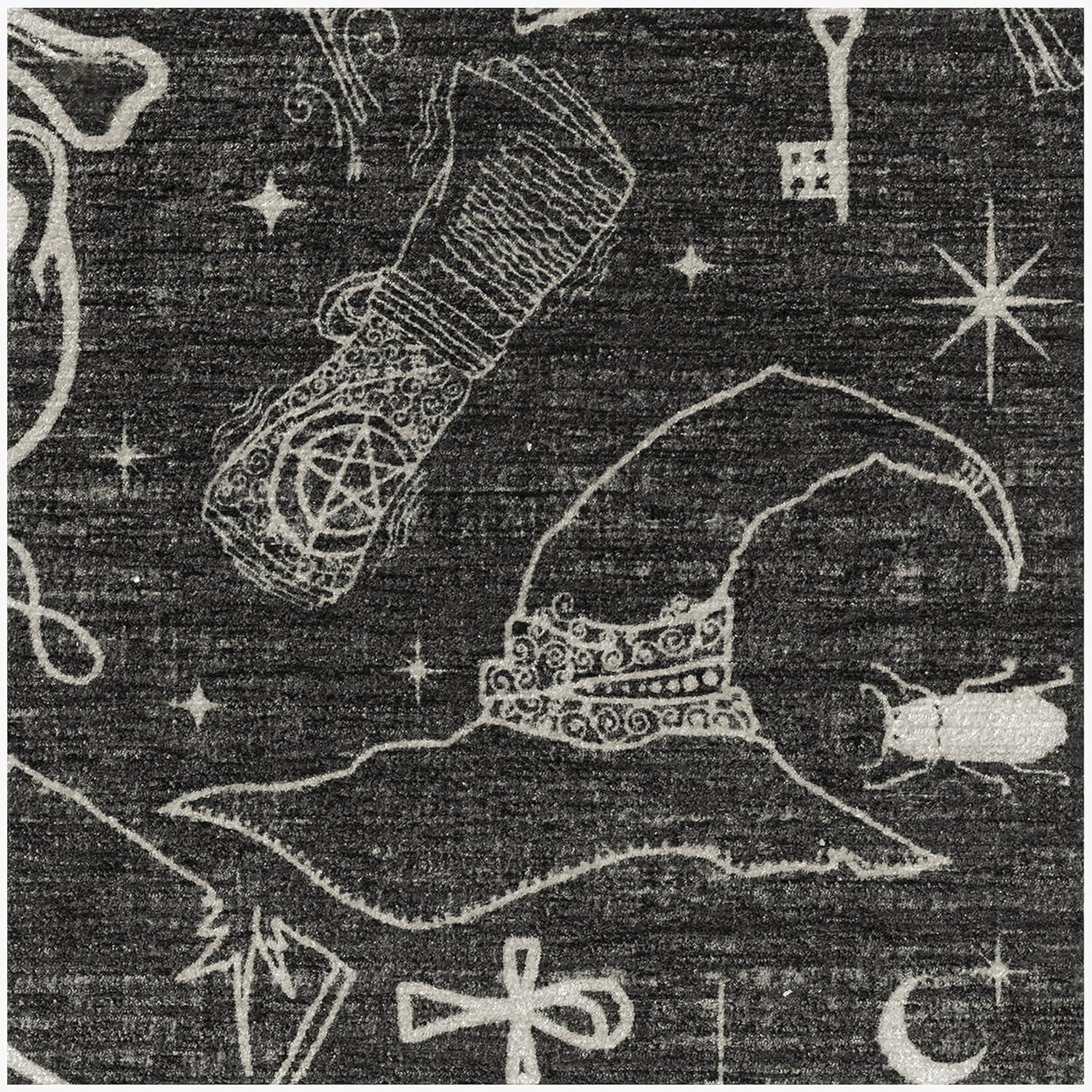 RUGGABLE Washable Fall Autumn Area Rug – Aurelia Navy Gold 3×5, Stain-Resistant, Non-Slip – Small Machine Washable Rugs for Living Room, Bedroom, Hallway, Entryway & Office–with Standard Pad(Witchcraft Black – Standard Pad)