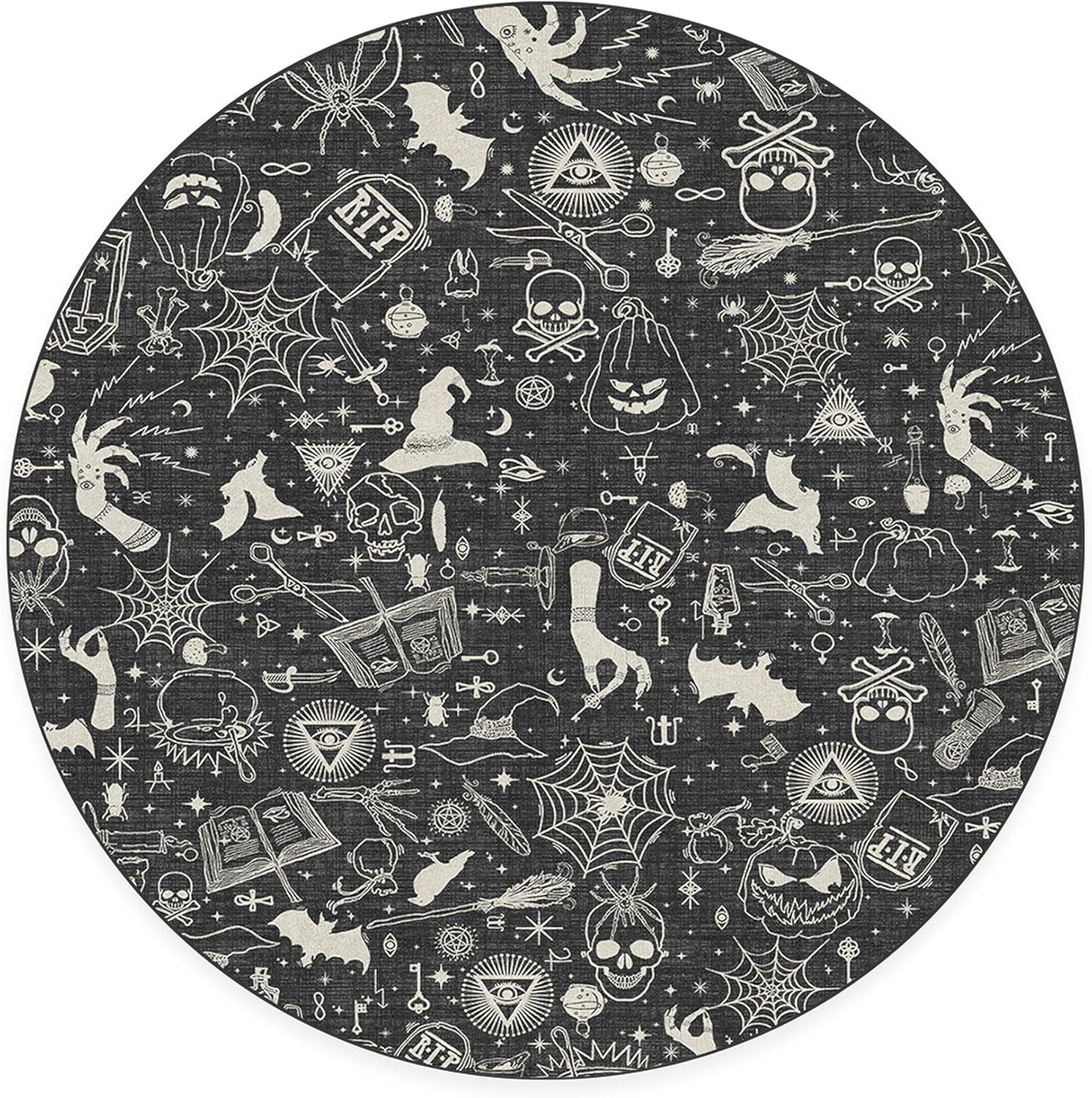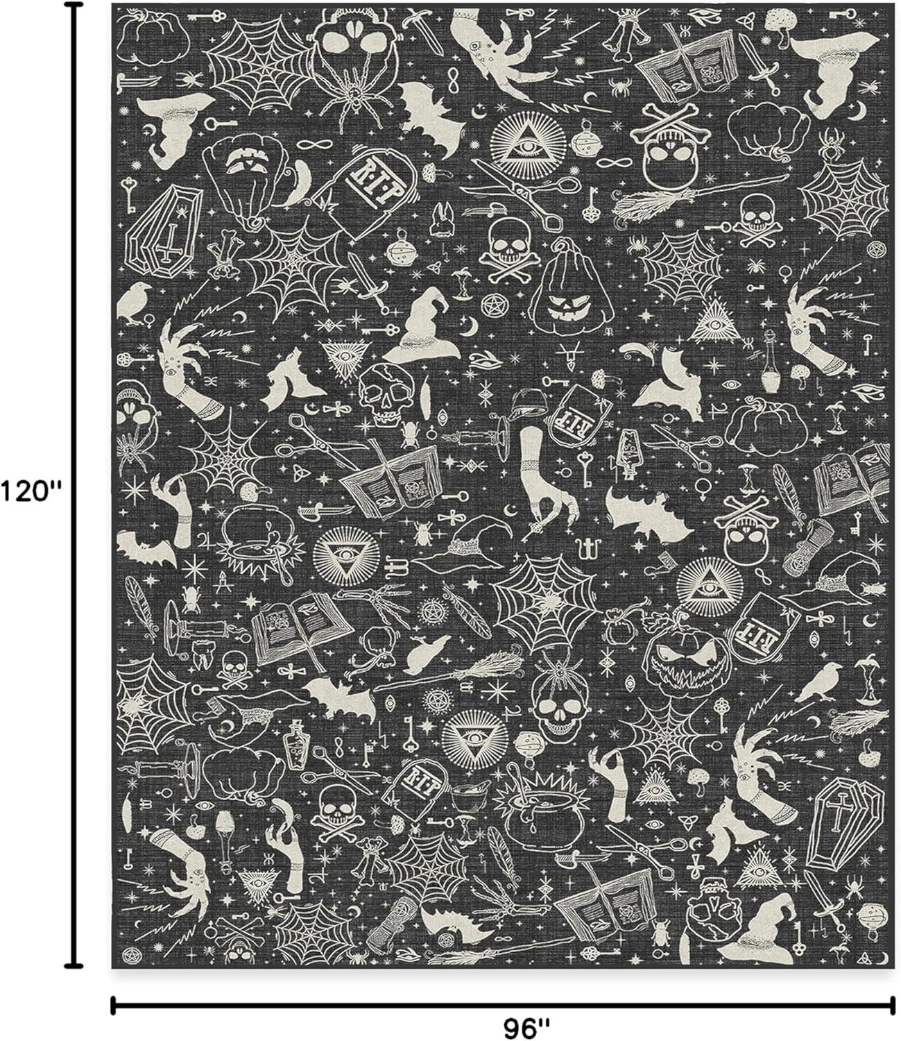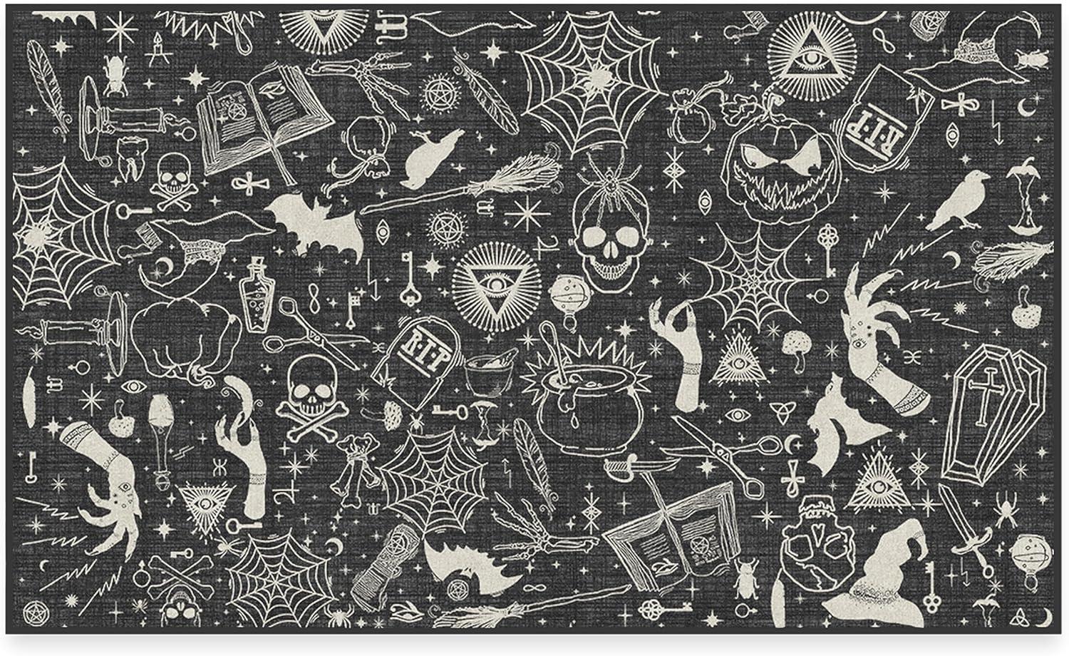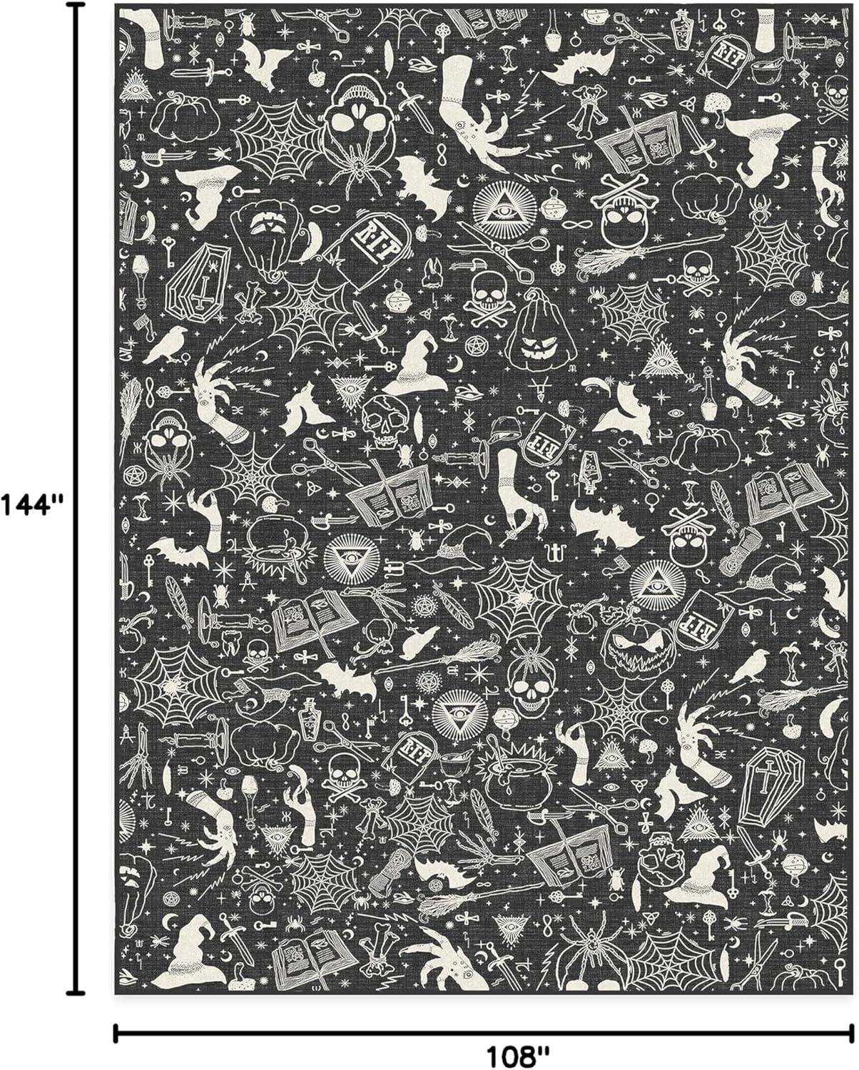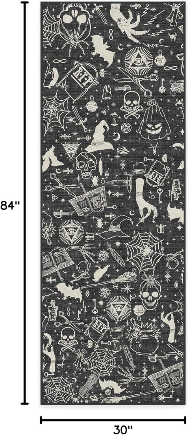 RUGGABLE Washable Fall Autumn Area Rug – Aurelia Navy Gold 3×5, Stain-Resistant, Non-Slip – Small Machine Washable Rugs for Living Room, Bedroom, Hallway, Entryway & Office–with Standard Pad(Witchcraft Black – Standard Pad)