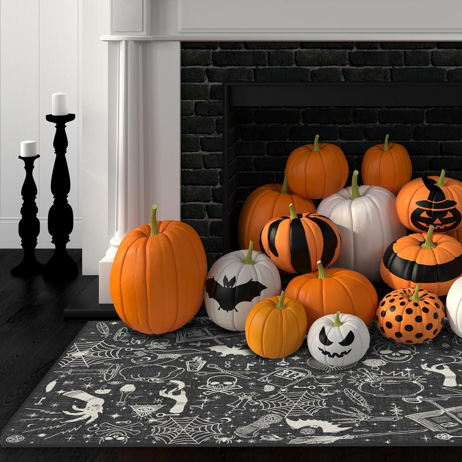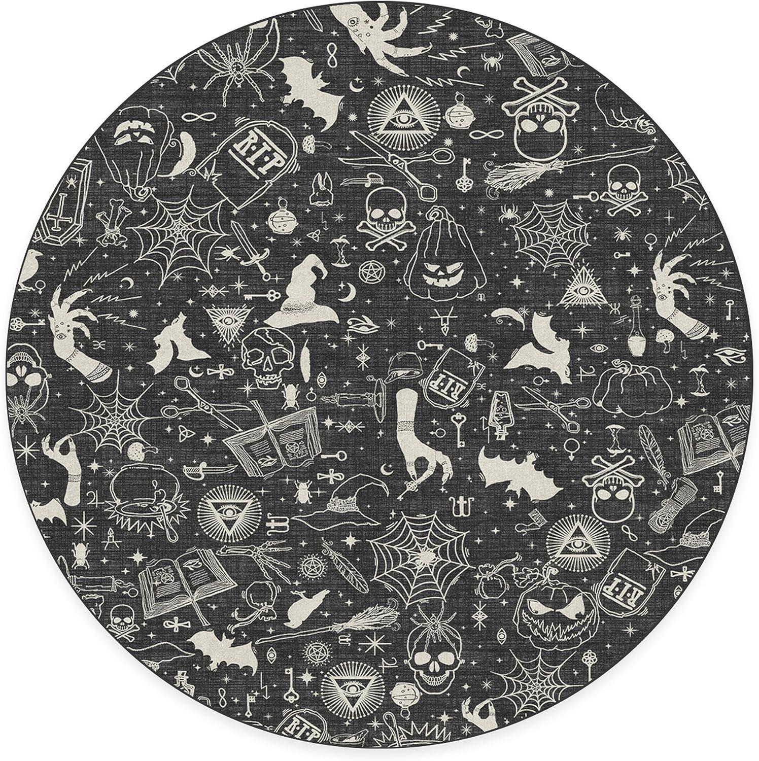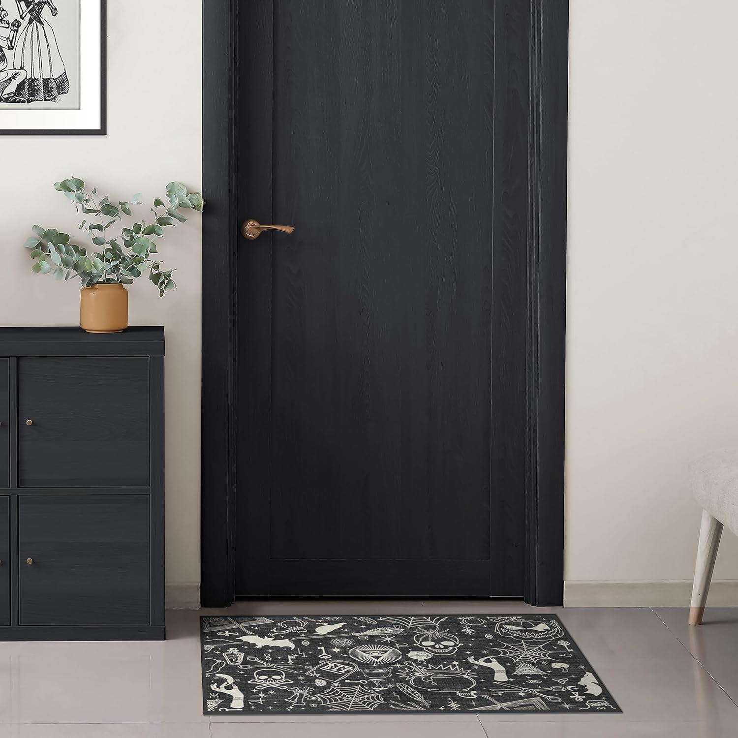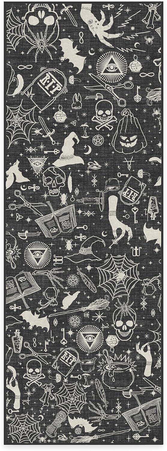 RUGGABLE Washable Fall Autumn Area Rug – Aurelia Navy Gold 3×5, Stain-Resistant, Non-Slip – Small Machine Washable Rugs for Living Room, Bedroom, Hallway, Entryway & Office–with Standard Pad(Witchcraft Black – Standard Pad)