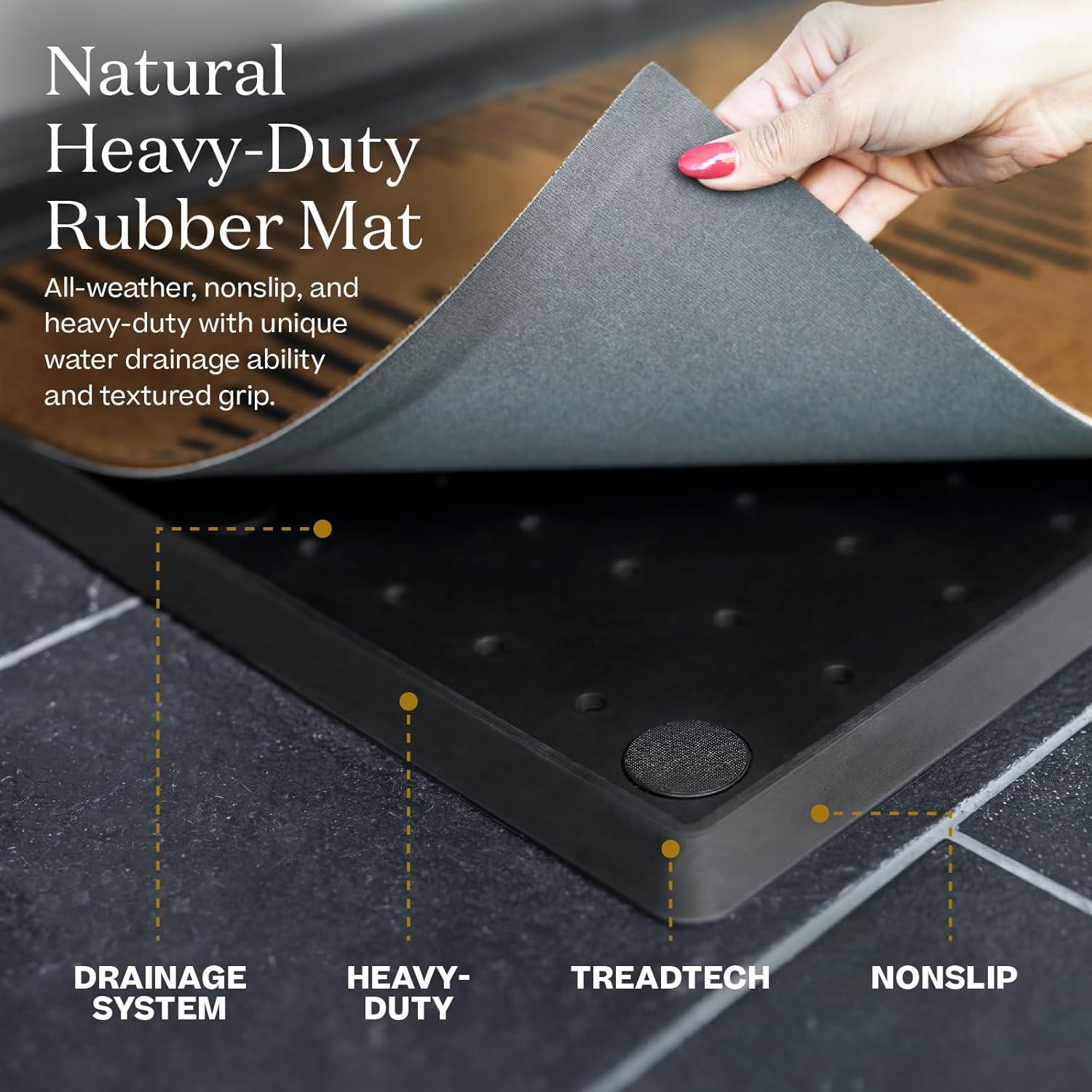 Non-Slip Heavy-Duty Rubber Base: Durable rubber base offers a textured, non-slip surface to keep the mat securely in place. Designed for high-traffic entry points, suitable for both indoor and outdoor doormat use.It has drainage ability which channels water effectively.