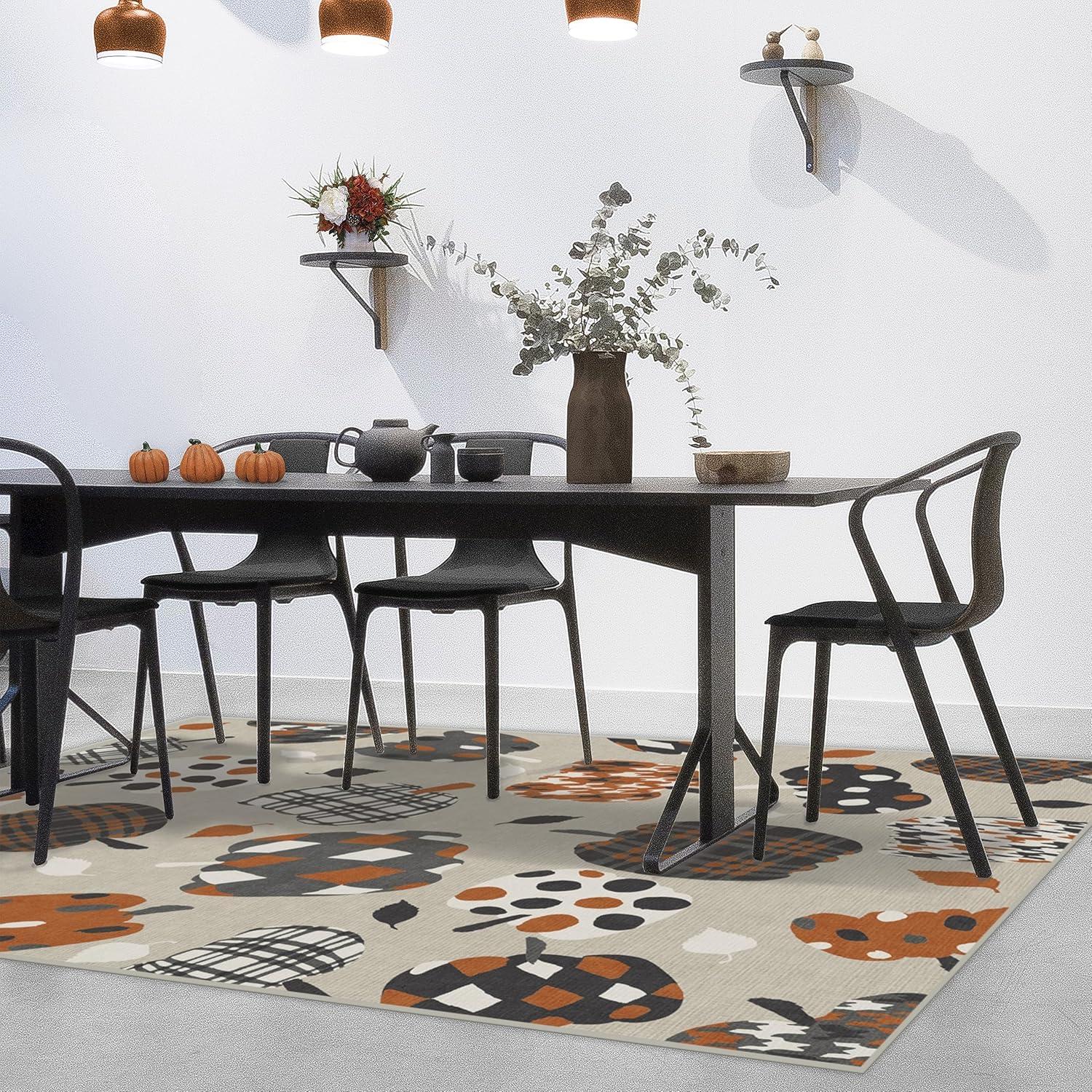 RUGGABLE Washable Halloween Area Rug –Bone Dance Ivory White 6 ft Round, Stain-Resistant, Non-Slip –Medium Machine Washable Rugs for Living Room, Bedroom, Hallway, Entryway & Office–with Standard Pad(Pumpkin Orange – Cushioned Pad)