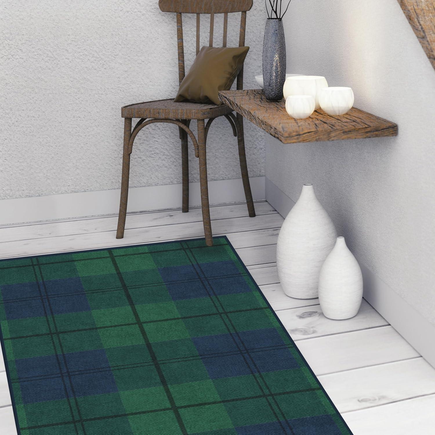 RUGGABLE Washable Plaid Area Rug – Dress Stewart Tartan White 2×3, Stain-Resistant, Non-Slip – Small Machine Washable Rugs for Living Room, Bedroom, Hallway, Entryway & Bathroom–with Standard Pad(Buffalo Plaid Blackwatch – Standard Pad)