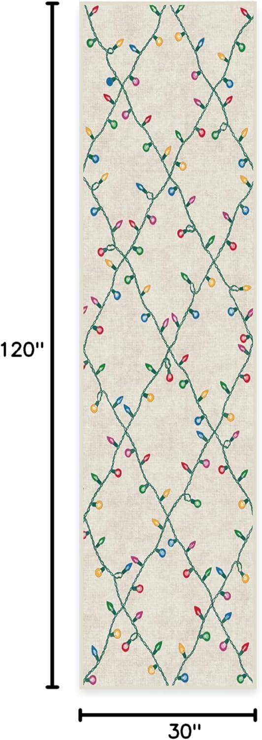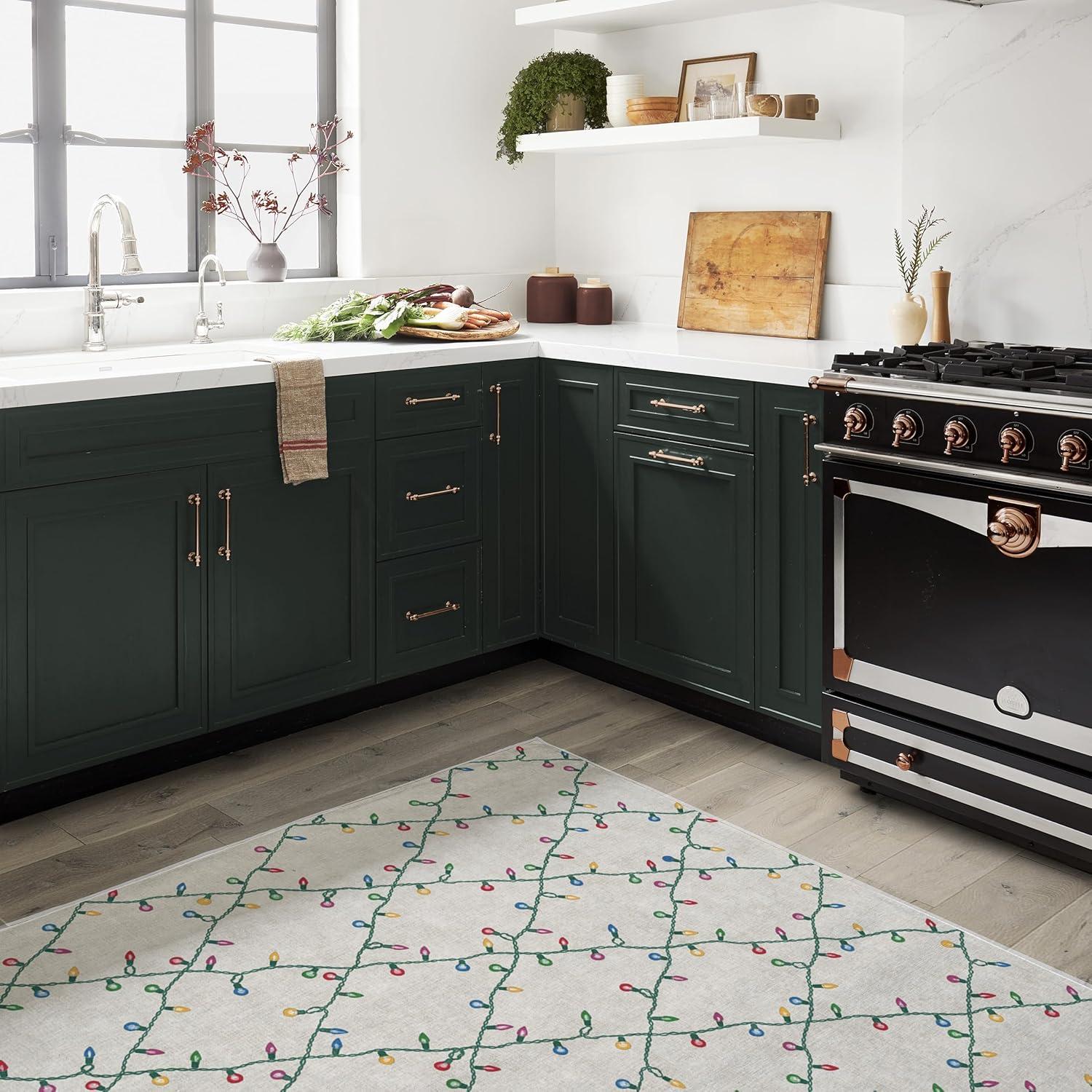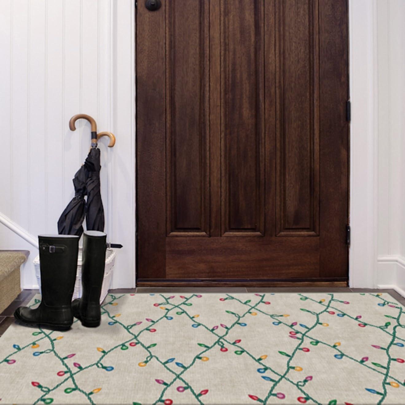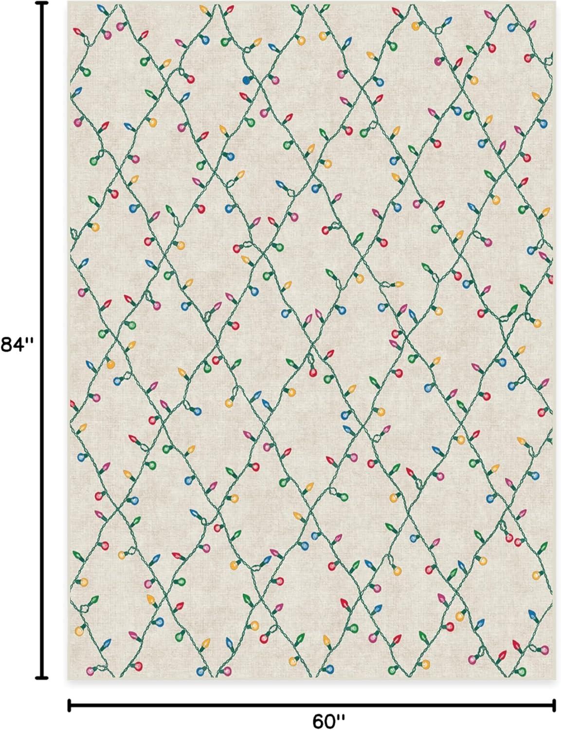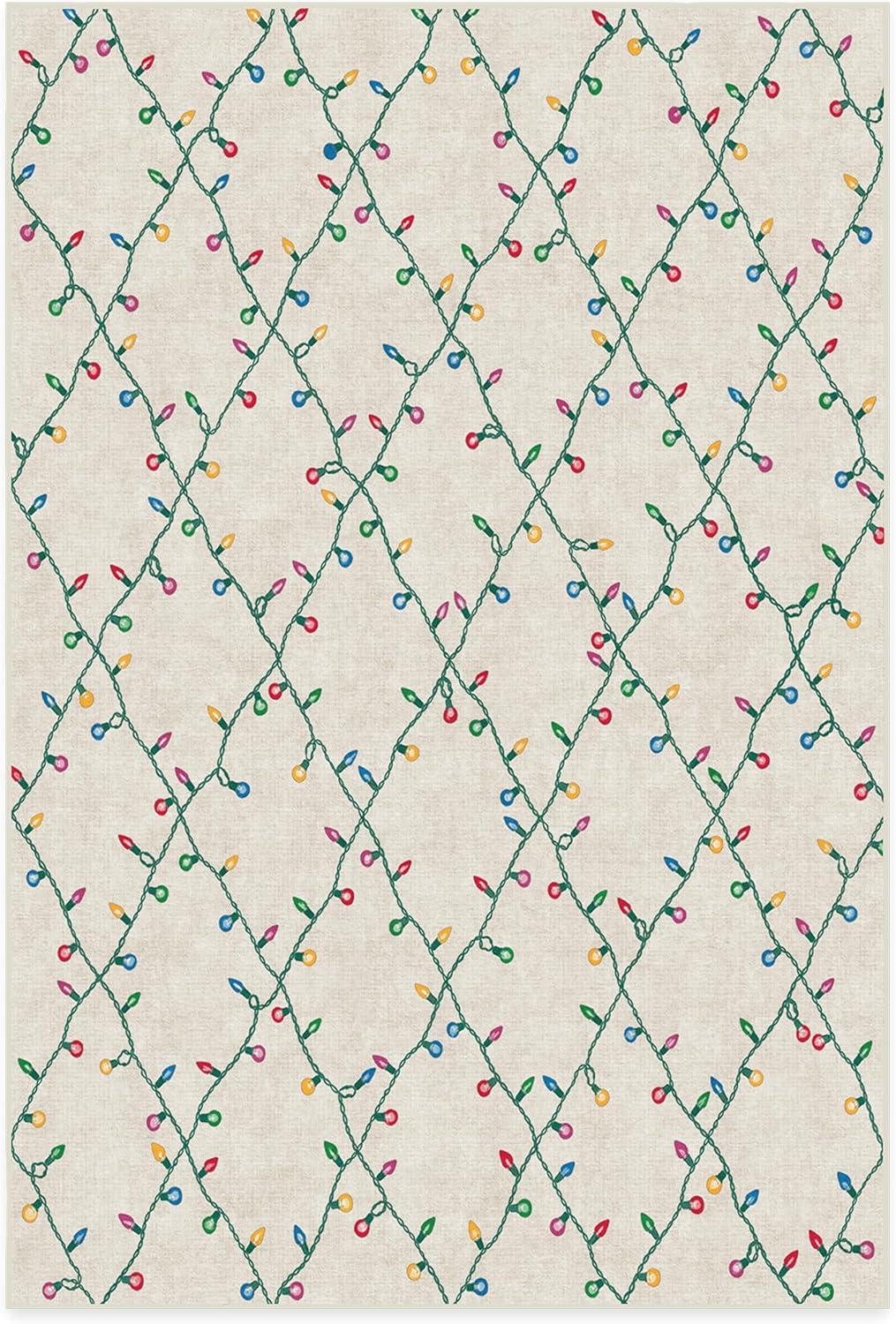 RUGGABLE Washable Plaid Area Rug – Dress Stewart Tartan White 2×3, Stain-Resistant, Non-Slip – Small Machine Washable Rugs for Living Room, Bedroom, Hallway, Entryway & Bathroom–with Standard Pad(Holiday Lights Creme – Cushioned Pad)