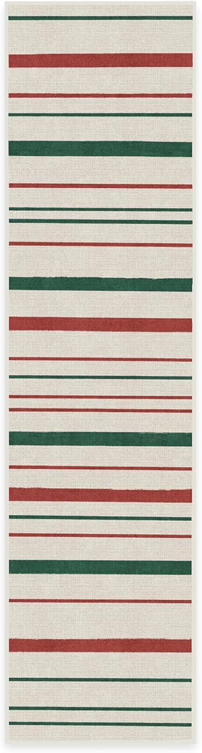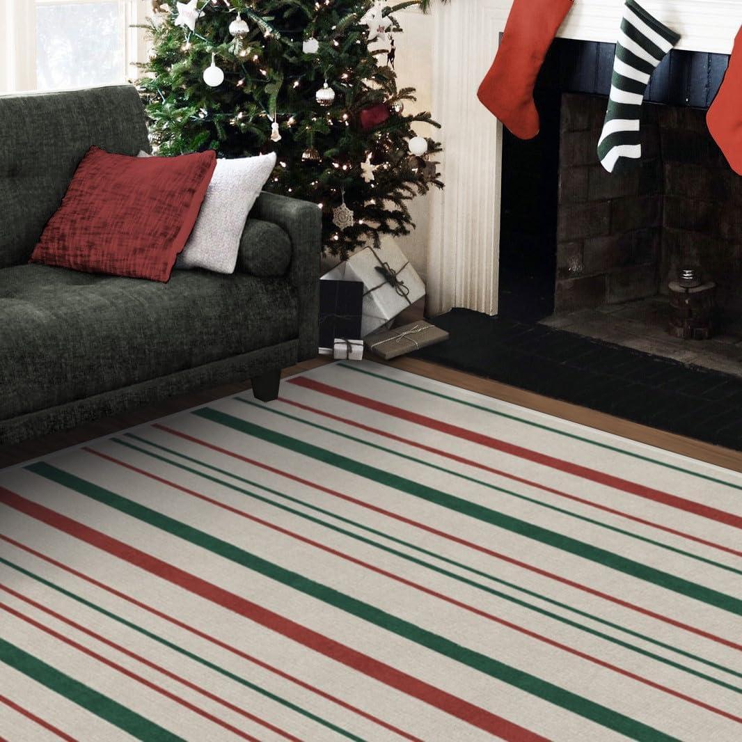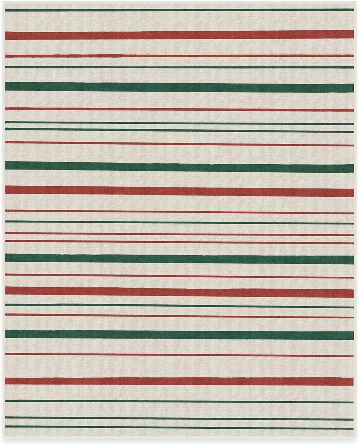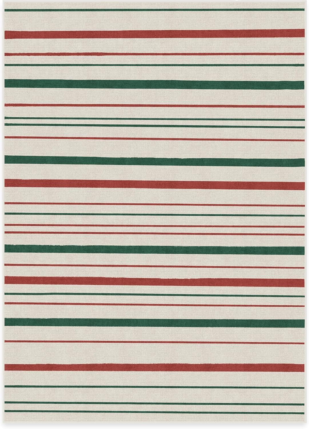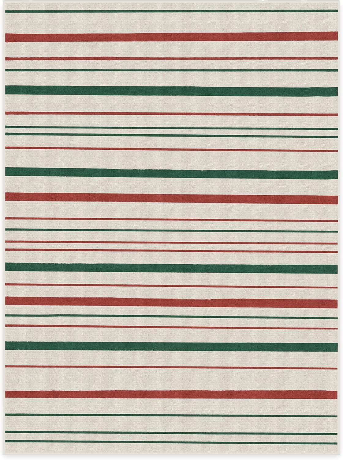 RUGGABLE Washable Plaid Area Rug – Dress Stewart Tartan White 2×3, Stain-Resistant, Non-Slip – Small Machine Washable Rugs for Living Room, Bedroom, Hallway, Entryway & Bathroom–with Standard Pad(Hudson Stripe Red & Green – Standard Pad)