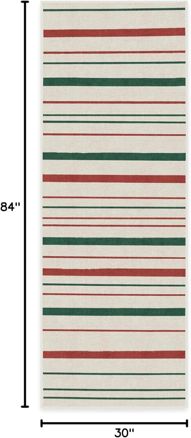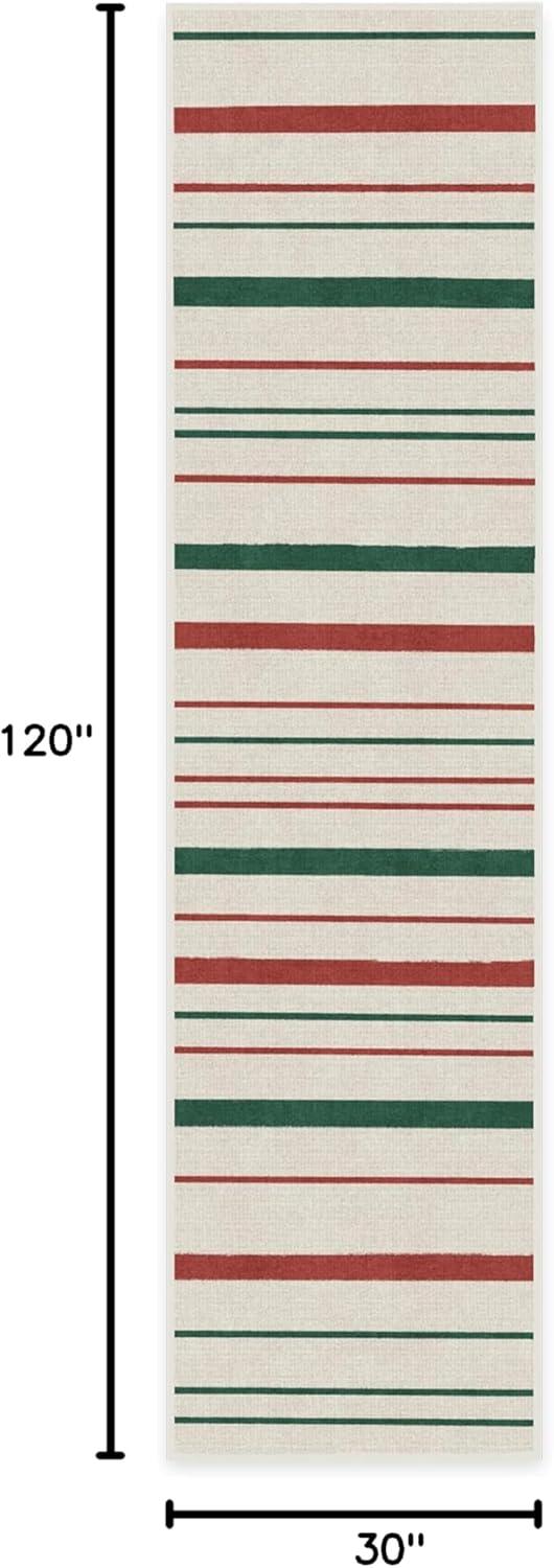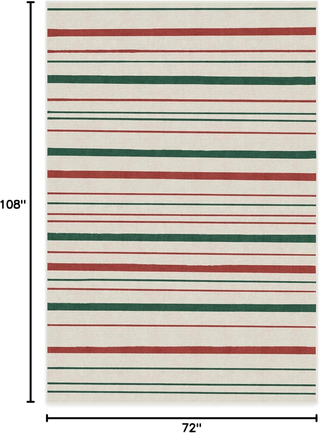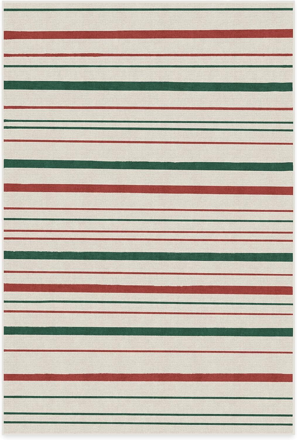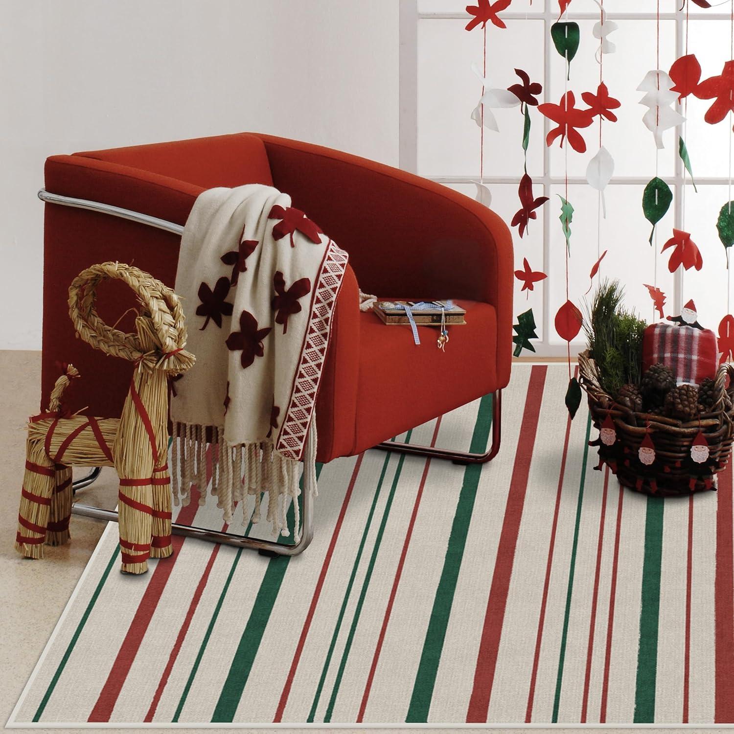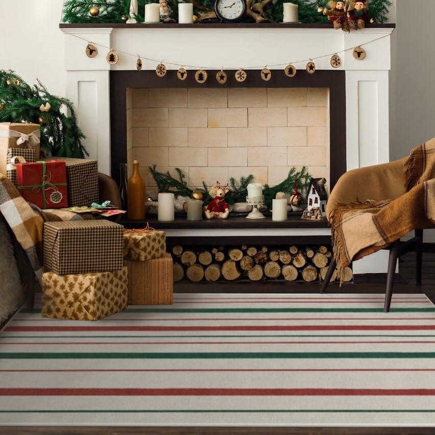RUGGABLE Washable Plaid Area Rug – Dress Stewart Tartan White 2×3, Stain-Resistant, Non-Slip – Small Machine Washable Rugs for Living Room, Bedroom, Hallway, Entryway & Bathroom–with Standard Pad(Hudson Stripe Red & Green – Standard Pad)