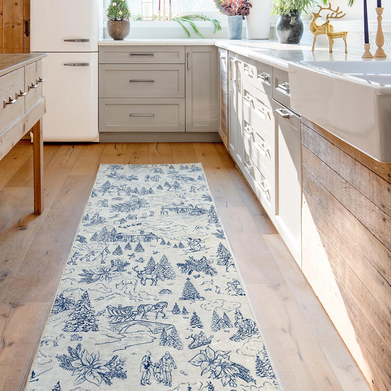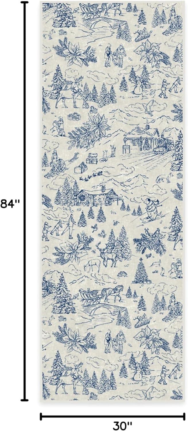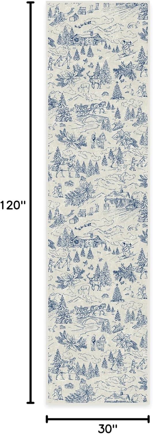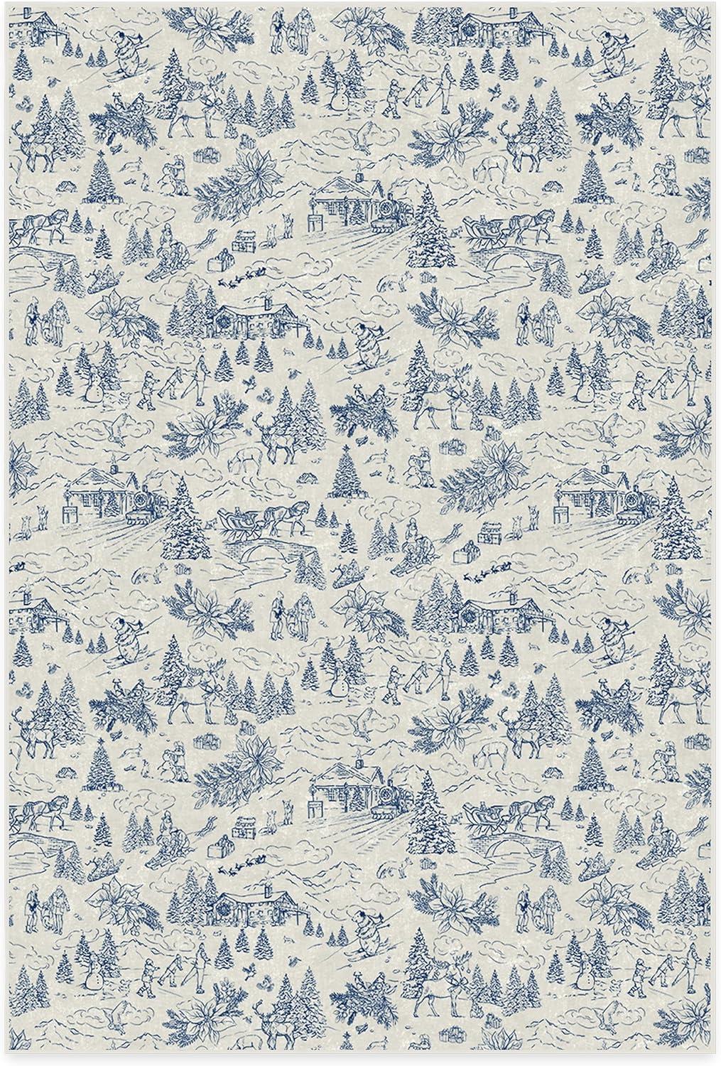 RUGGABLE Washable Plaid Area Rug – Dress Stewart Tartan White 2×3, Stain-Resistant, Non-Slip – Small Machine Washable Rugs for Living Room, Bedroom, Hallway, Entryway & Bathroom–with Standard Pad(Winter Toile Blue – Standard Pad)