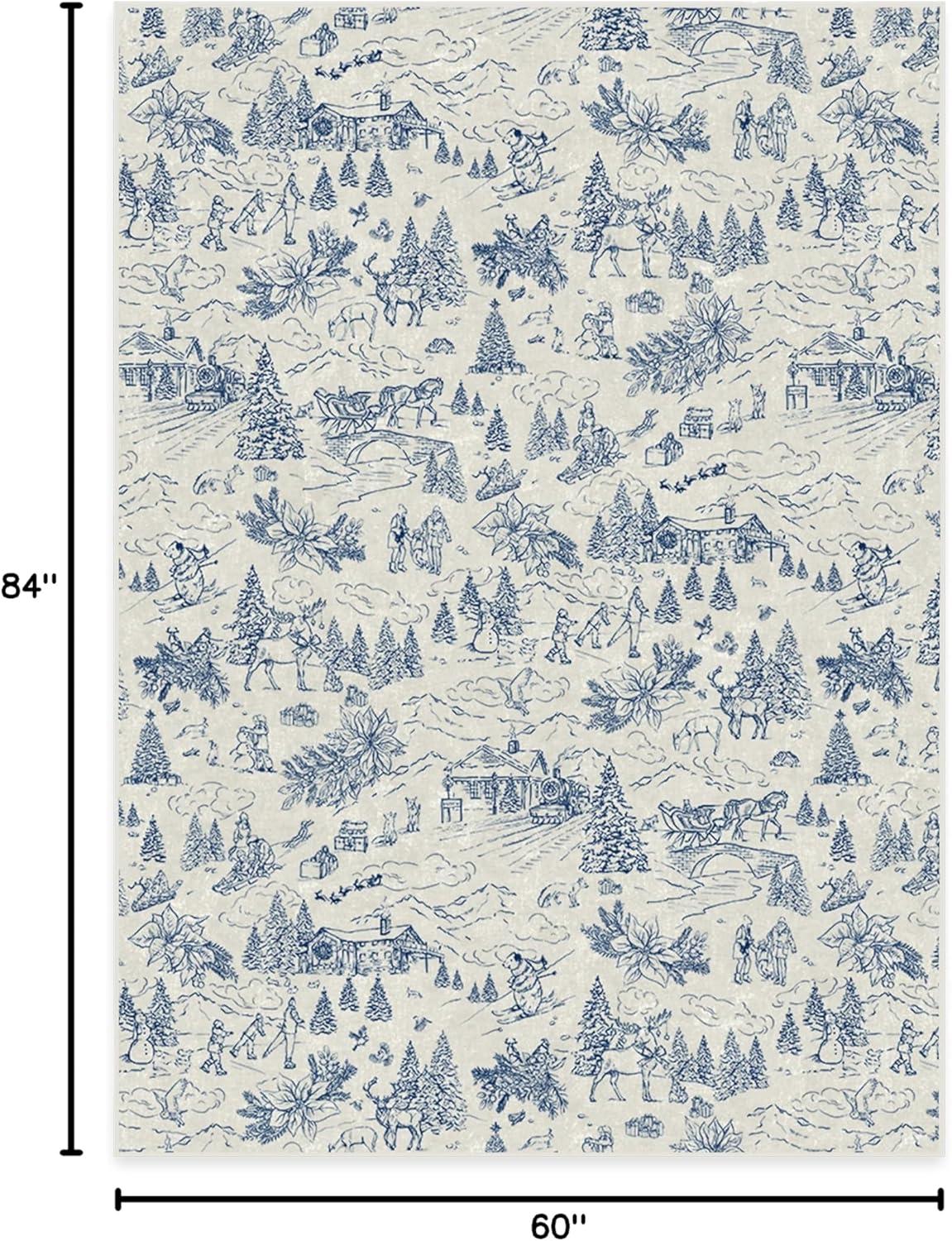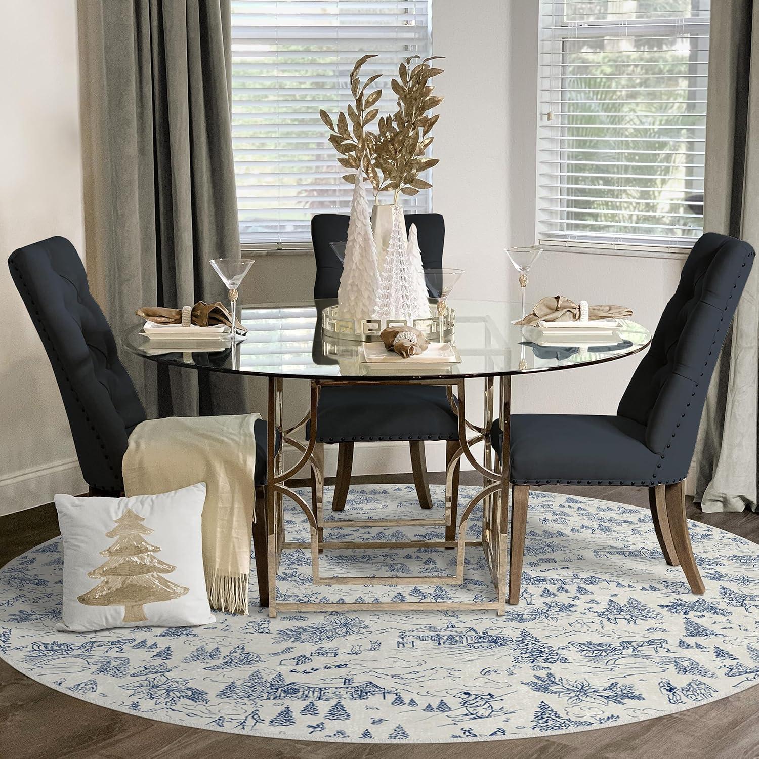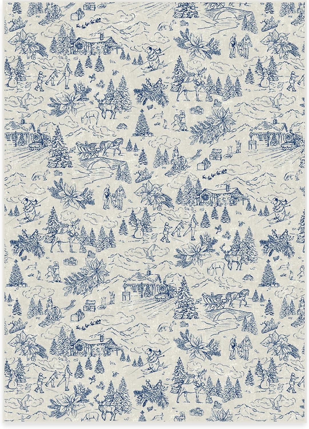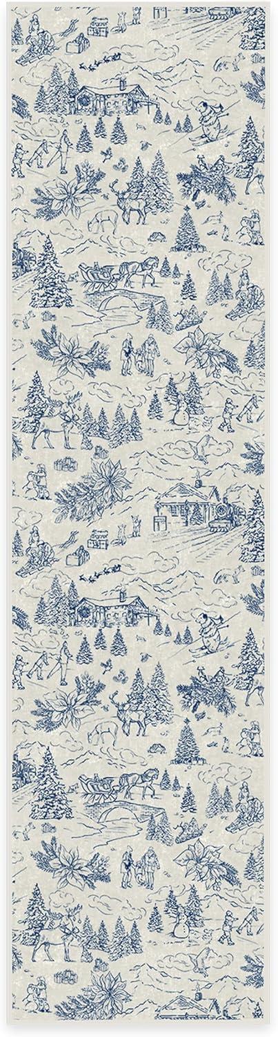 RUGGABLE Washable Plaid Area Rug – Dress Stewart Tartan White 2×3, Stain-Resistant, Non-Slip – Small Machine Washable Rugs for Living Room, Bedroom, Hallway, Entryway & Bathroom–with Standard Pad(Winter Toile Blue – Standard Pad)