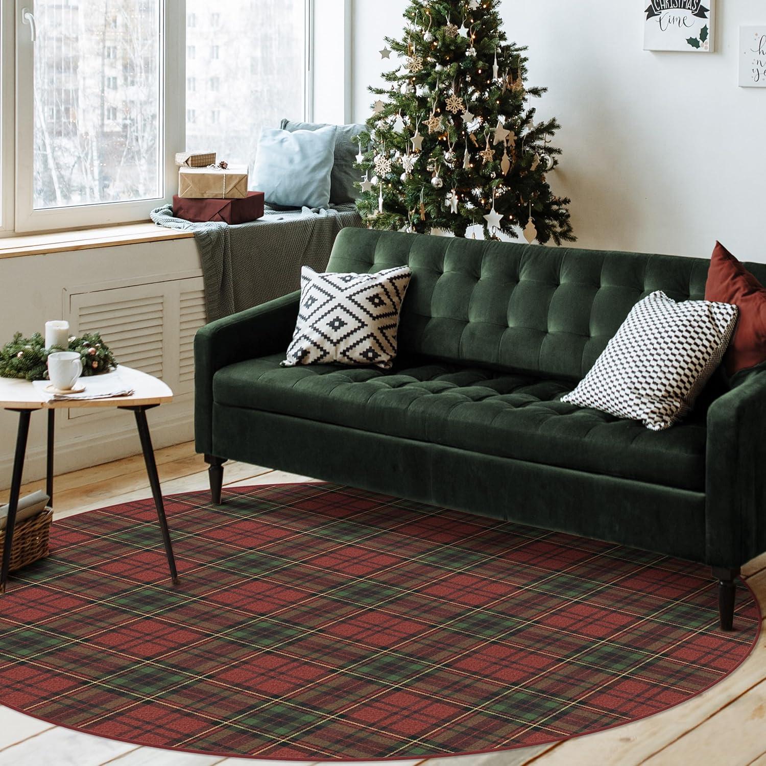 A TIMELESS ACCENT FOR YOUR HOLIDAY HOME DECOR: Our Dress Stewart Tartan Plaid Washable Area Rug showcases a classic heritage plaid pattern in poppy red, dandelion yellow, and leaf green on a background of pearl