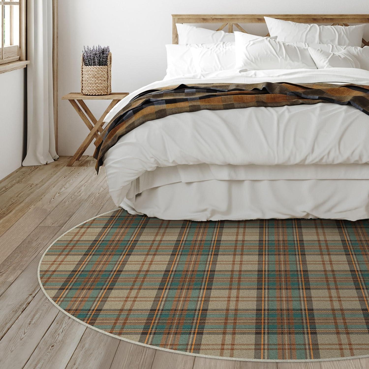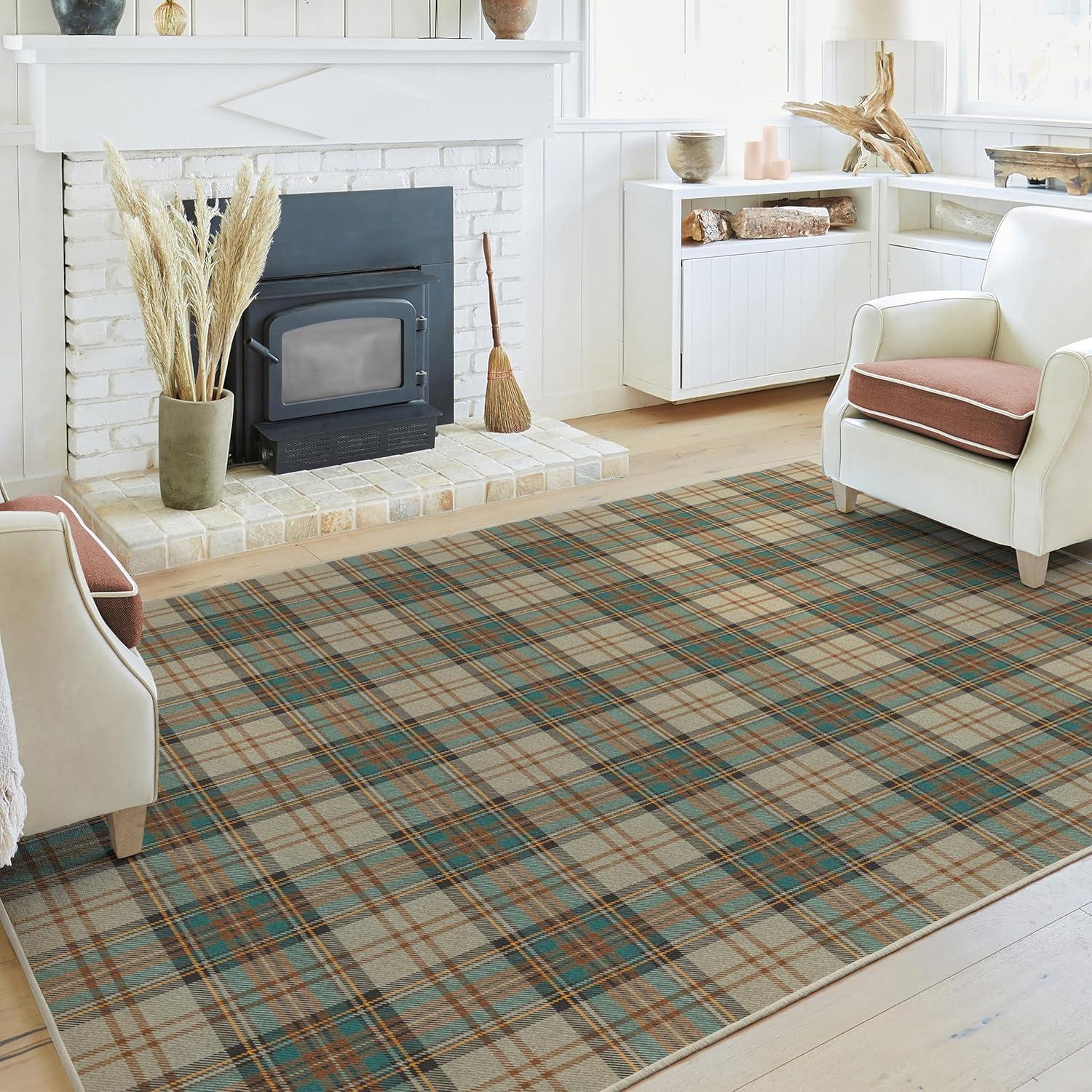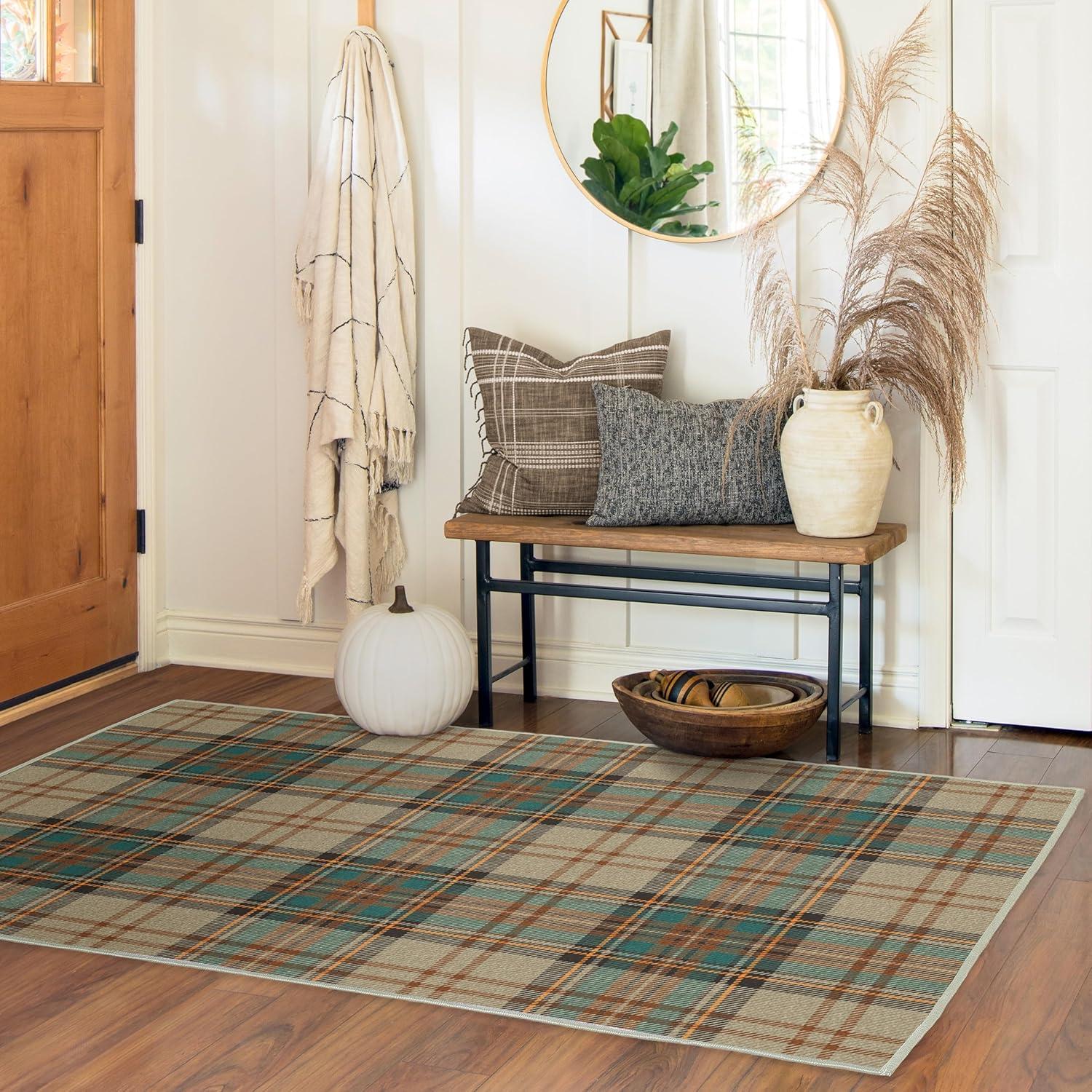 RUGGABLE Washable Plaid Area Rug – Dress Stewart Tartan White 2×3, Stain-Resistant, Non-Slip – Small Machine Washable Rugs for Living Room, Bedroom, Hallway, Entryway & Bathroom–with Standard Pad(A – Dress Stewart Tartan Khaki – Cushioned Pad)