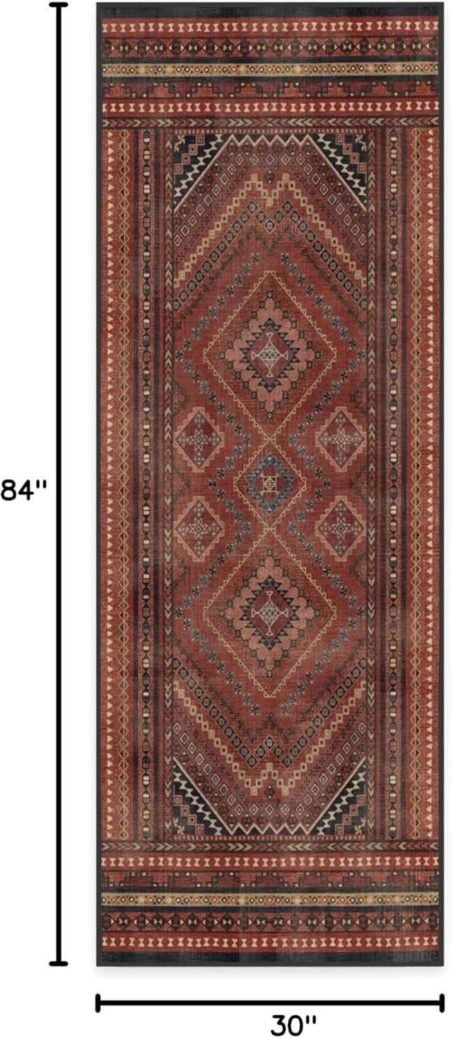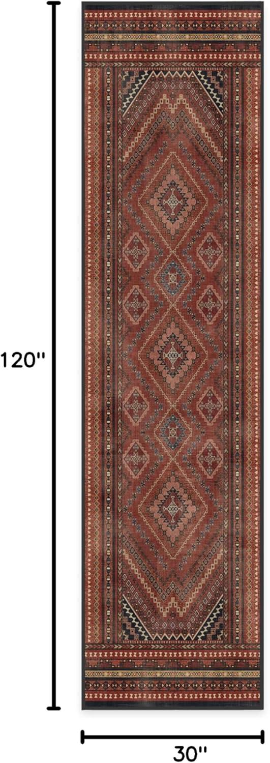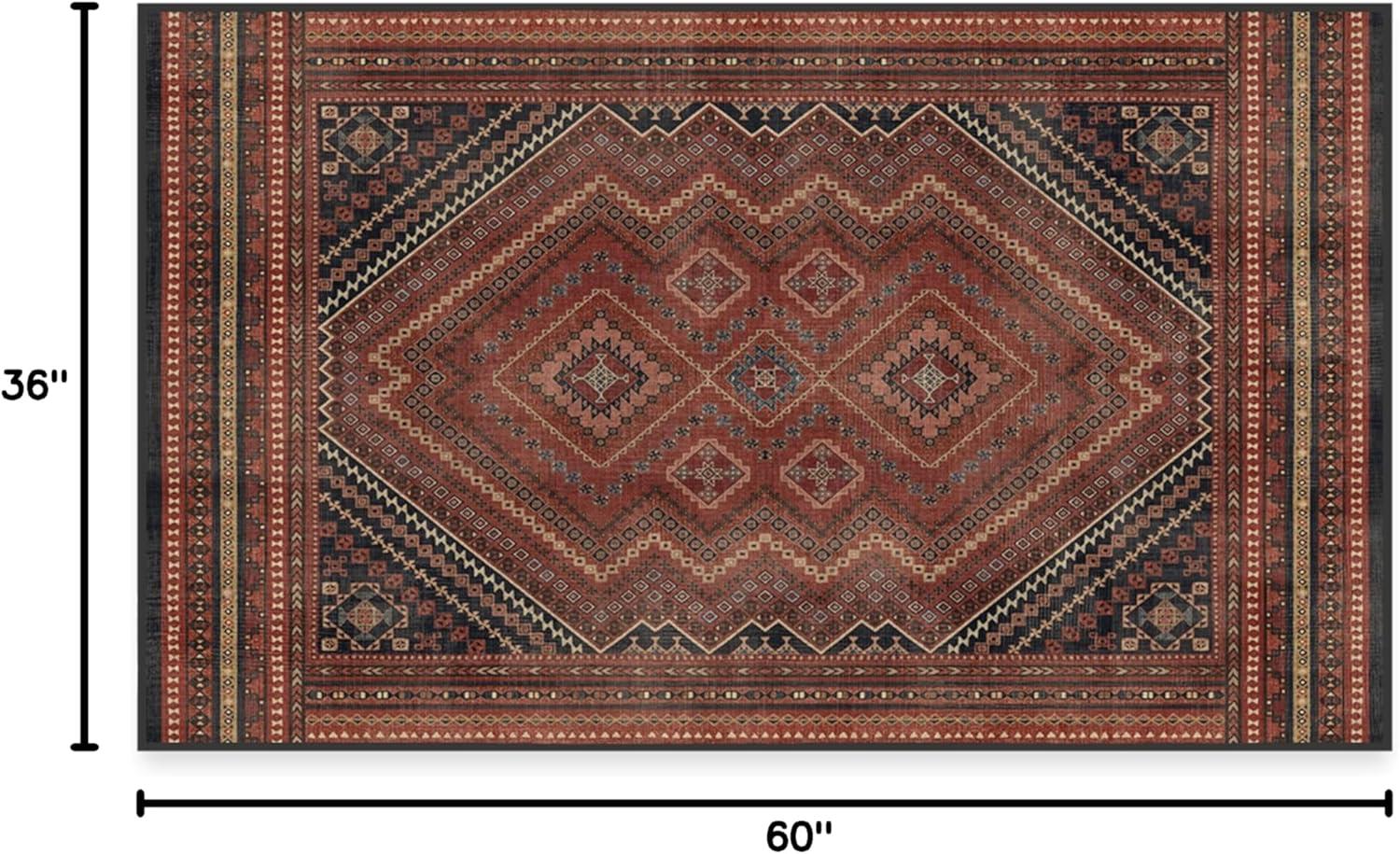 RUGGABLE Washable Vintage Area Rug – Kaden Amber Red 3×5, Stain-Resistant, Non-Slip – Small Machine Washable Rugs for Living Room, Bedroom, Hallway, Entryway & Office–with Standard Pad(Amber Red – Cushioned Pad)