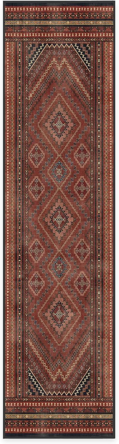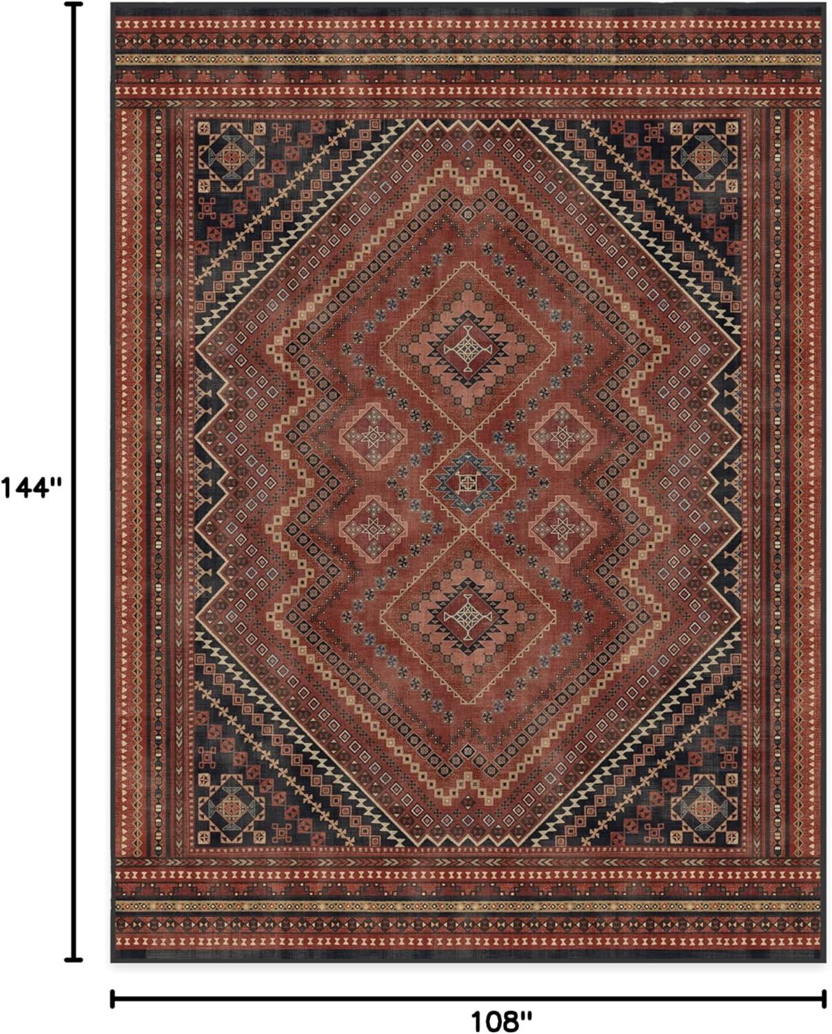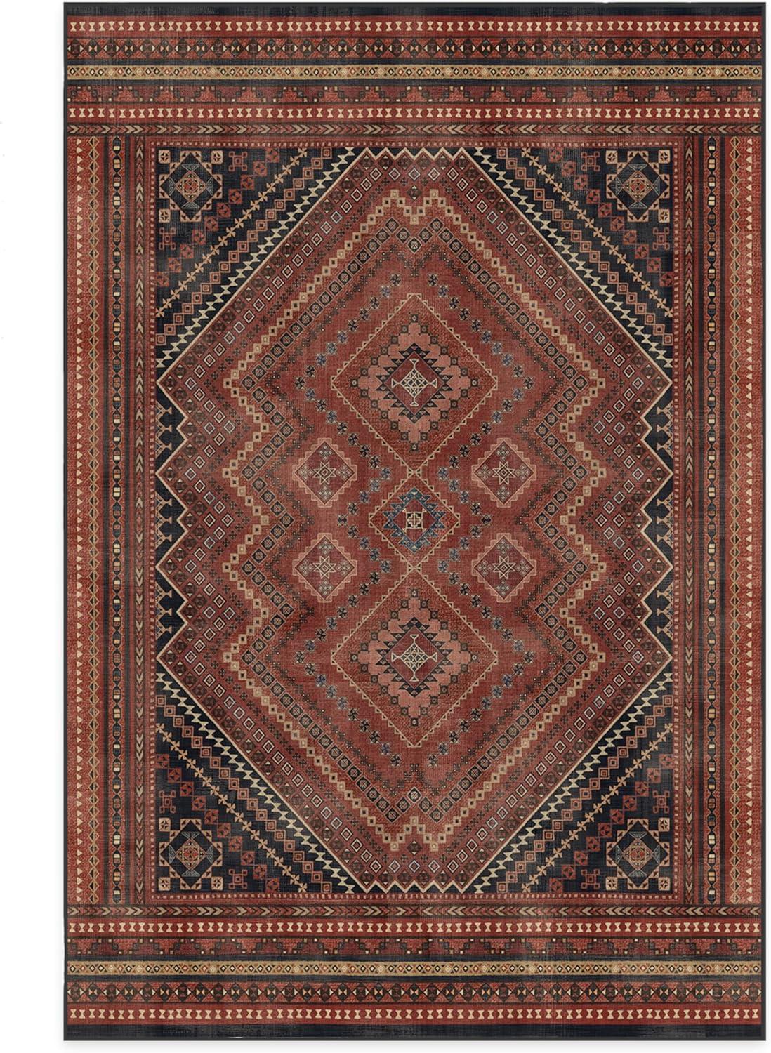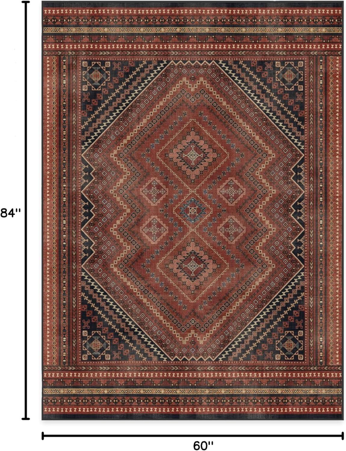 TRADITIONAL STYLE, MODERN RUG TECHNOLOGY: Our Kaden Amber Red Washable Area Rug features a geometric pattern anchored by a center diamond that’s surrounded by repeating shapes in shades of vintage red, coral, blue, and gold