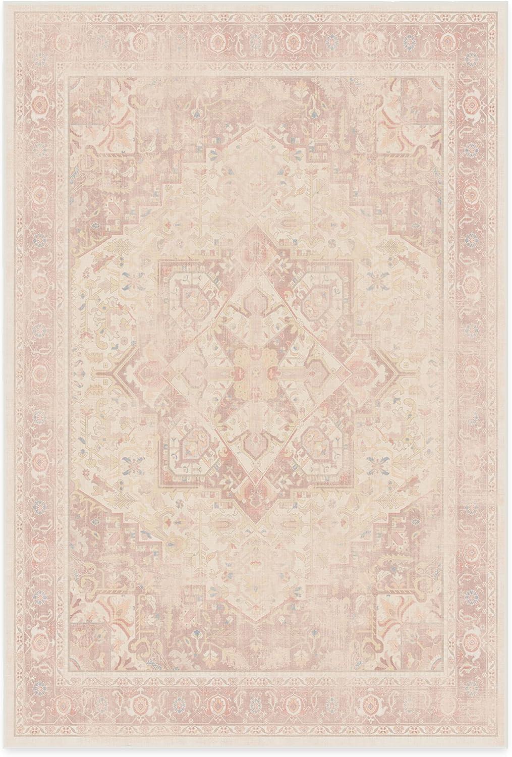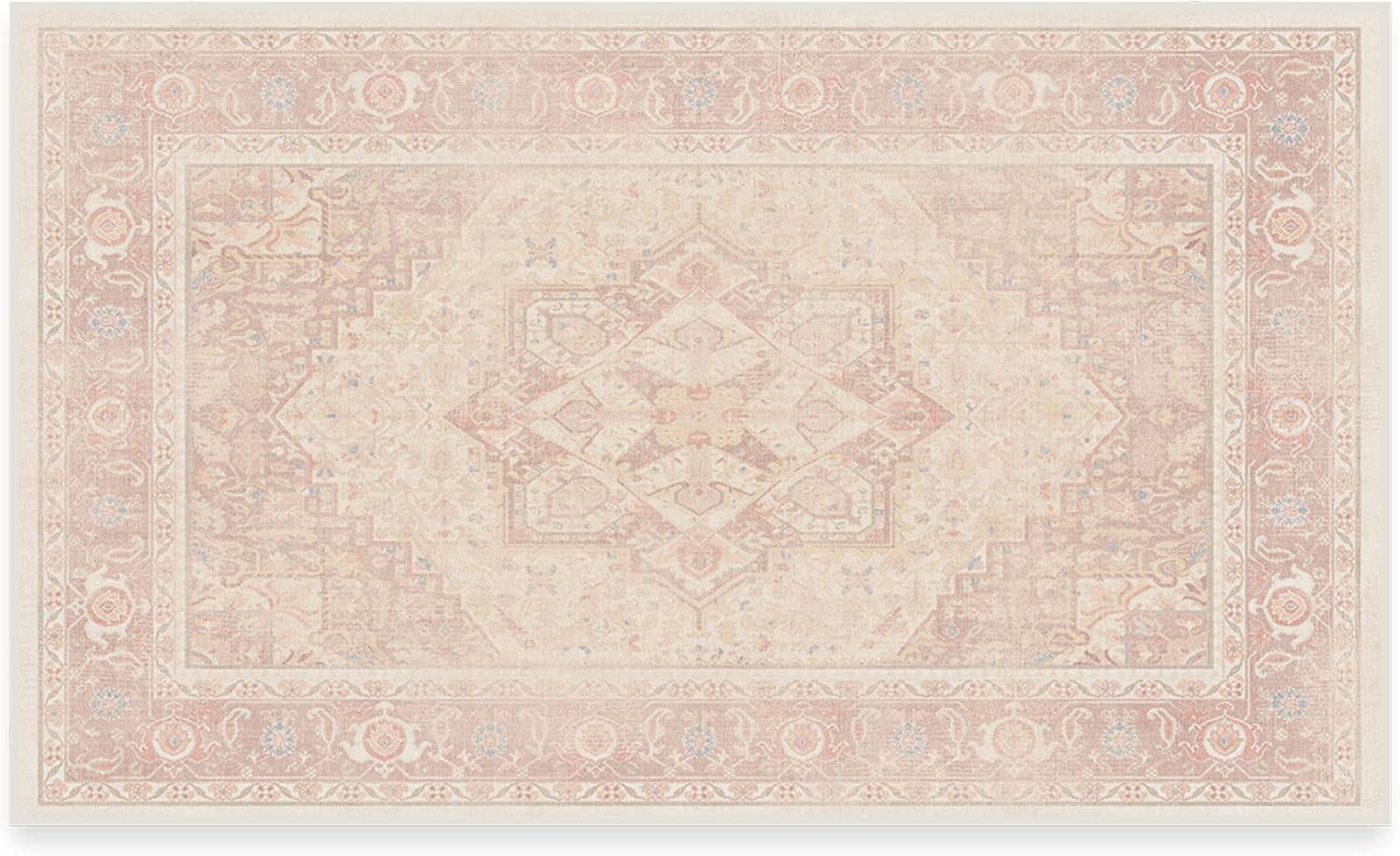 RUGGABLE Washable Vintage Area Rug – Kamran Hazel 3×5, Stain-Resistant, Non-Slip – Small Machine Washable Rugs for Living Room, Bedroom, Hallway, Entryway & Office–with Standard Pad(Pink – Kamran – Cushioned Pad)