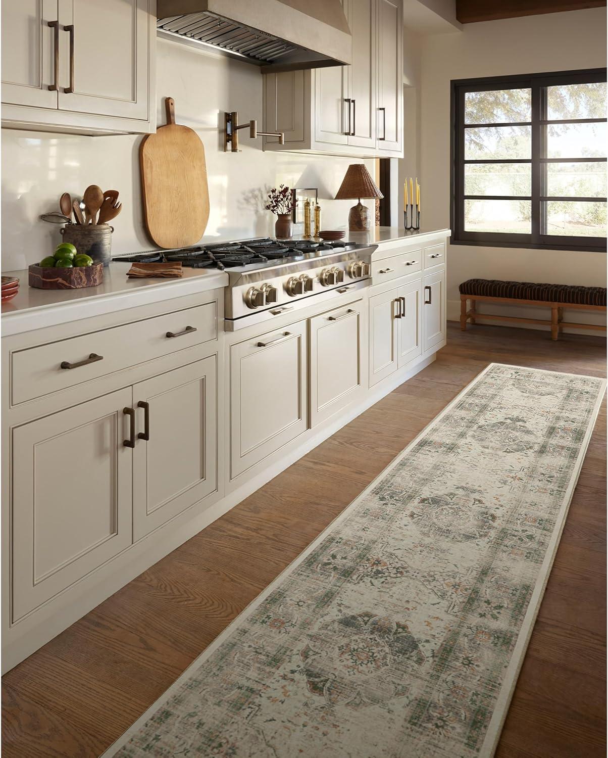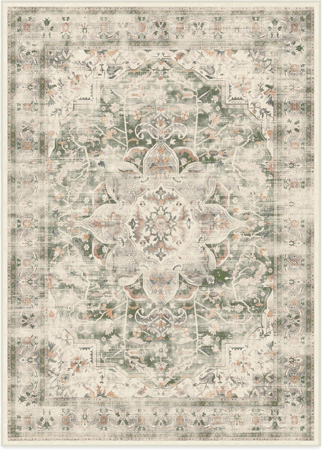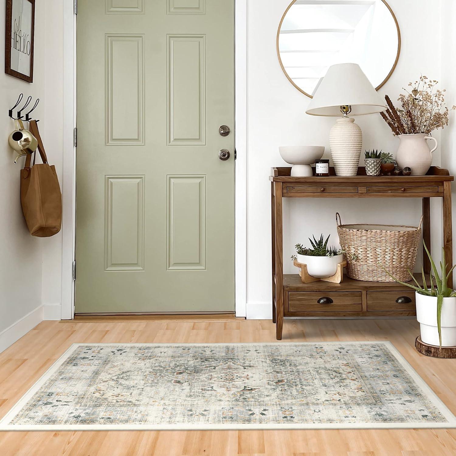 RUGGABLE Washable Vintage Area Rug – Kamran Hazel 3×5, Stain-Resistant, Non-Slip – Small Machine Washable Rugs for Living Room, Bedroom, Hallway, Entryway & Office–with Standard Pad(Sage – Sarrah – Cushioned Pad)