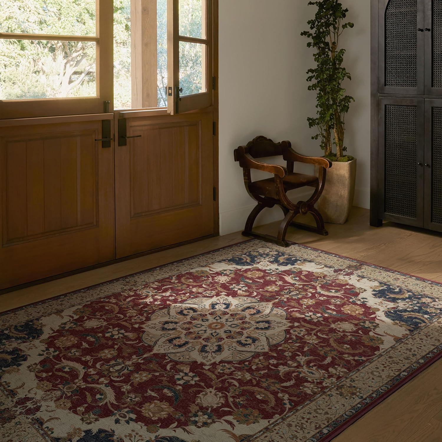 RUGGABLE Washable Vintage Area Rug – Sima Royal Blue 9×12, Stain-Resistant, Non-Slip – Large Machine Washable Rugs for Living Room, Bedroom, Hallway, Entryway & Office–with Standard Pad(Sima Currant – Cushioned Pad)