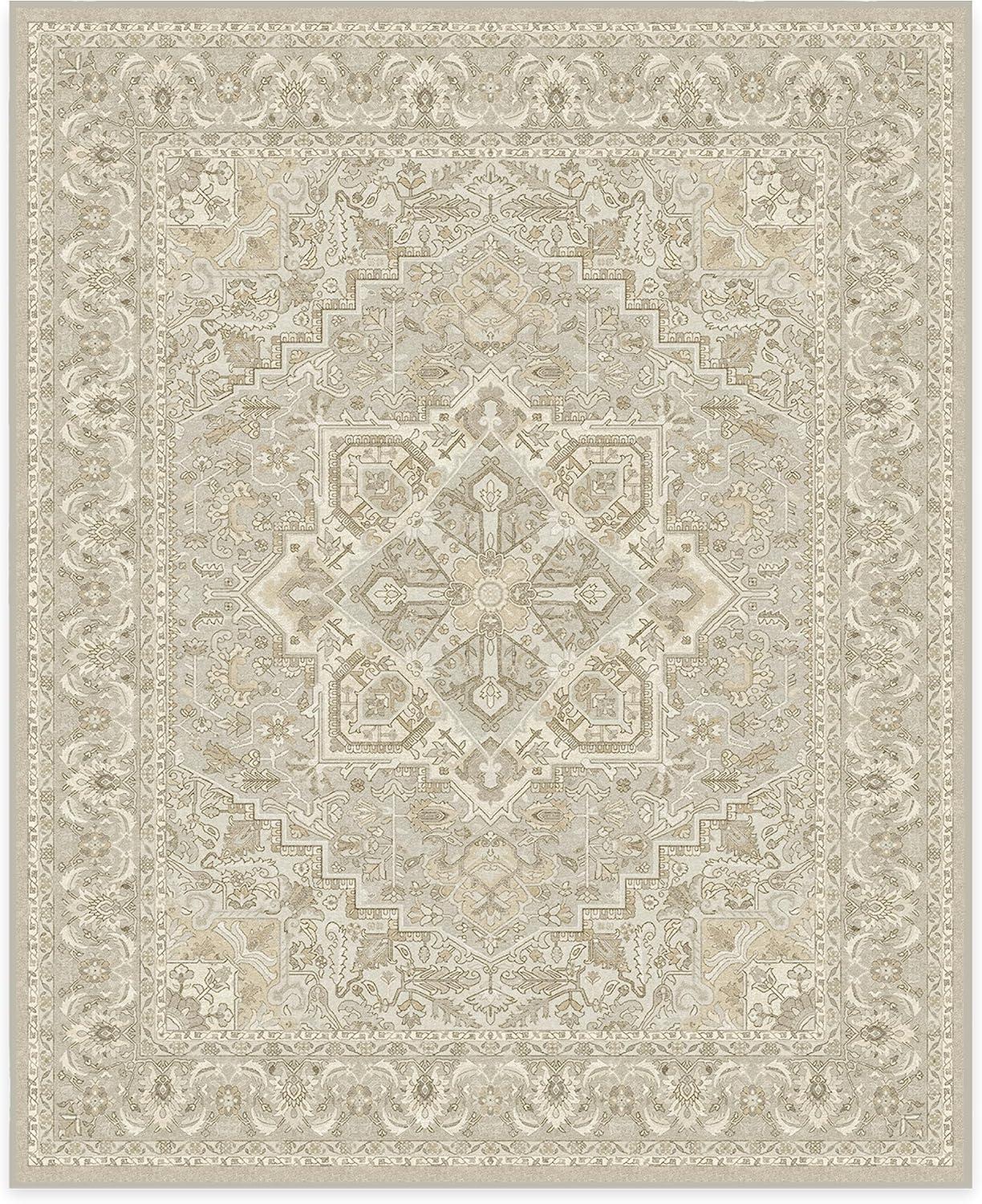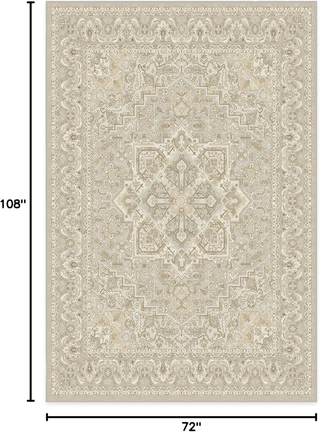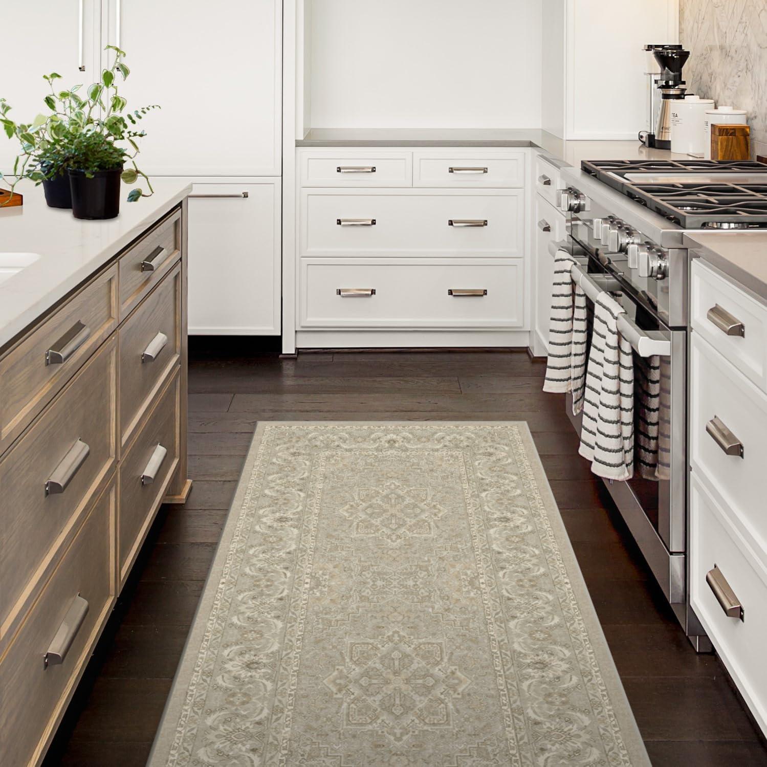 RUGGABLE Washable Vintage Runner Rug – Hendesi Heriz Abalone 2.5×7, Stain-Resistant, Non-Slip Hallway Runner – Machine Washable Rug for Hallway, Entryway, Living Room & Kitchen–with Standard Pad(Cream – Standard Pad)