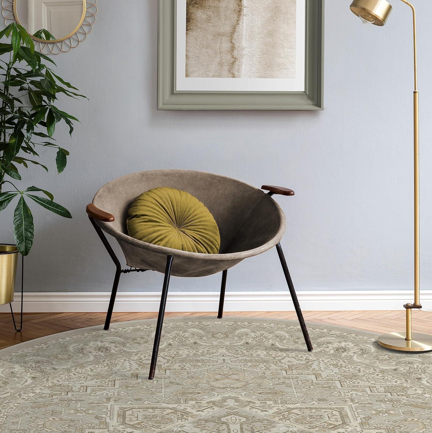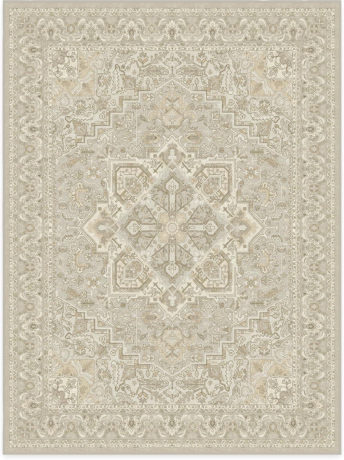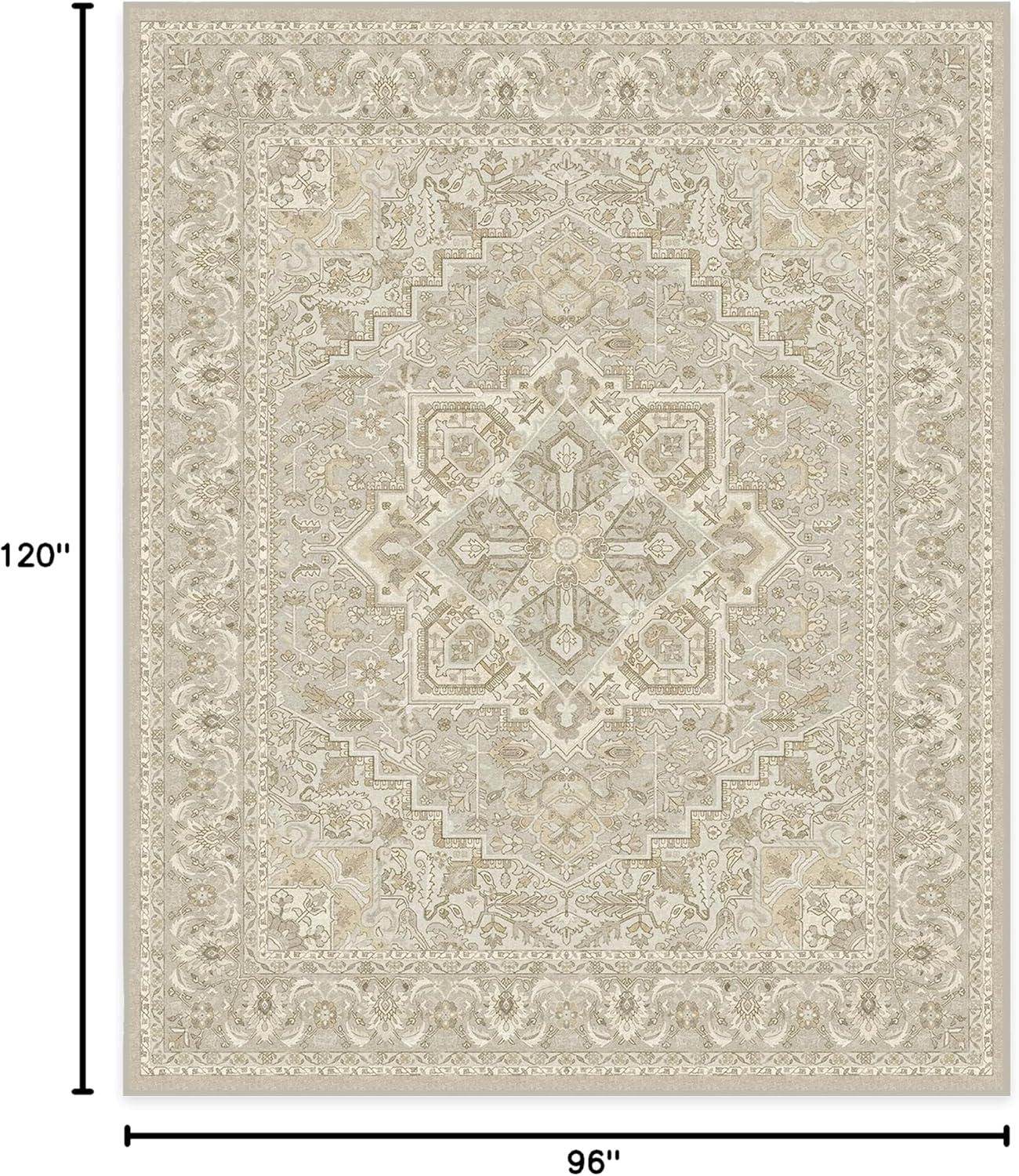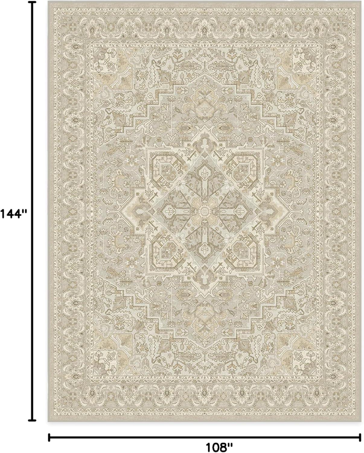 RUGGABLE Washable Vintage Runner Rug – Hendesi Heriz Abalone 2.5×7, Stain-Resistant, Non-Slip Hallway Runner – Machine Washable Rug for Hallway, Entryway, Living Room & Kitchen–with Standard Pad(Cream – Standard Pad)