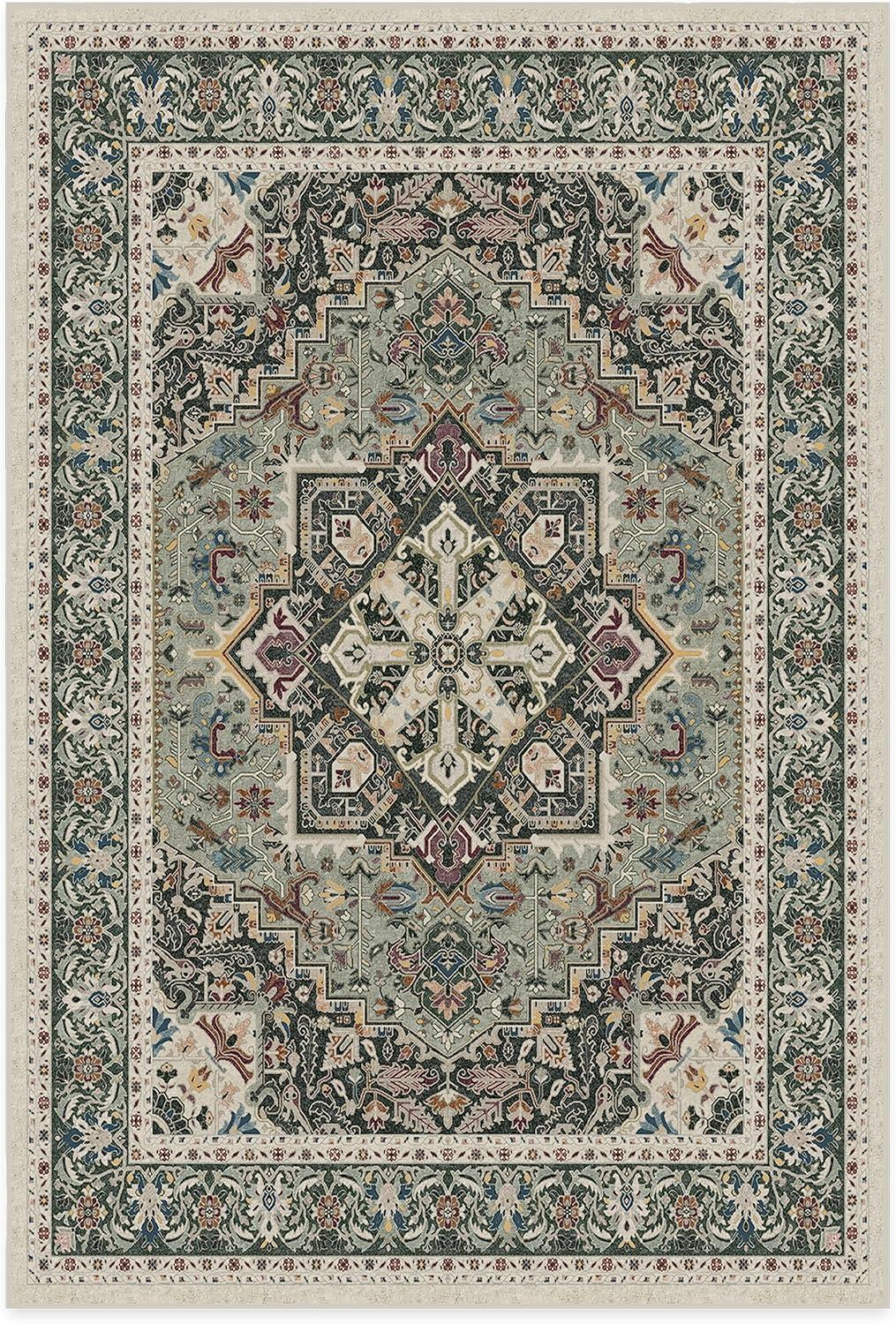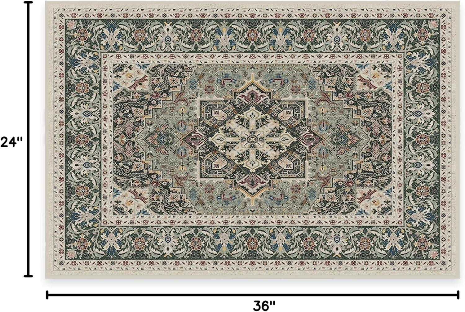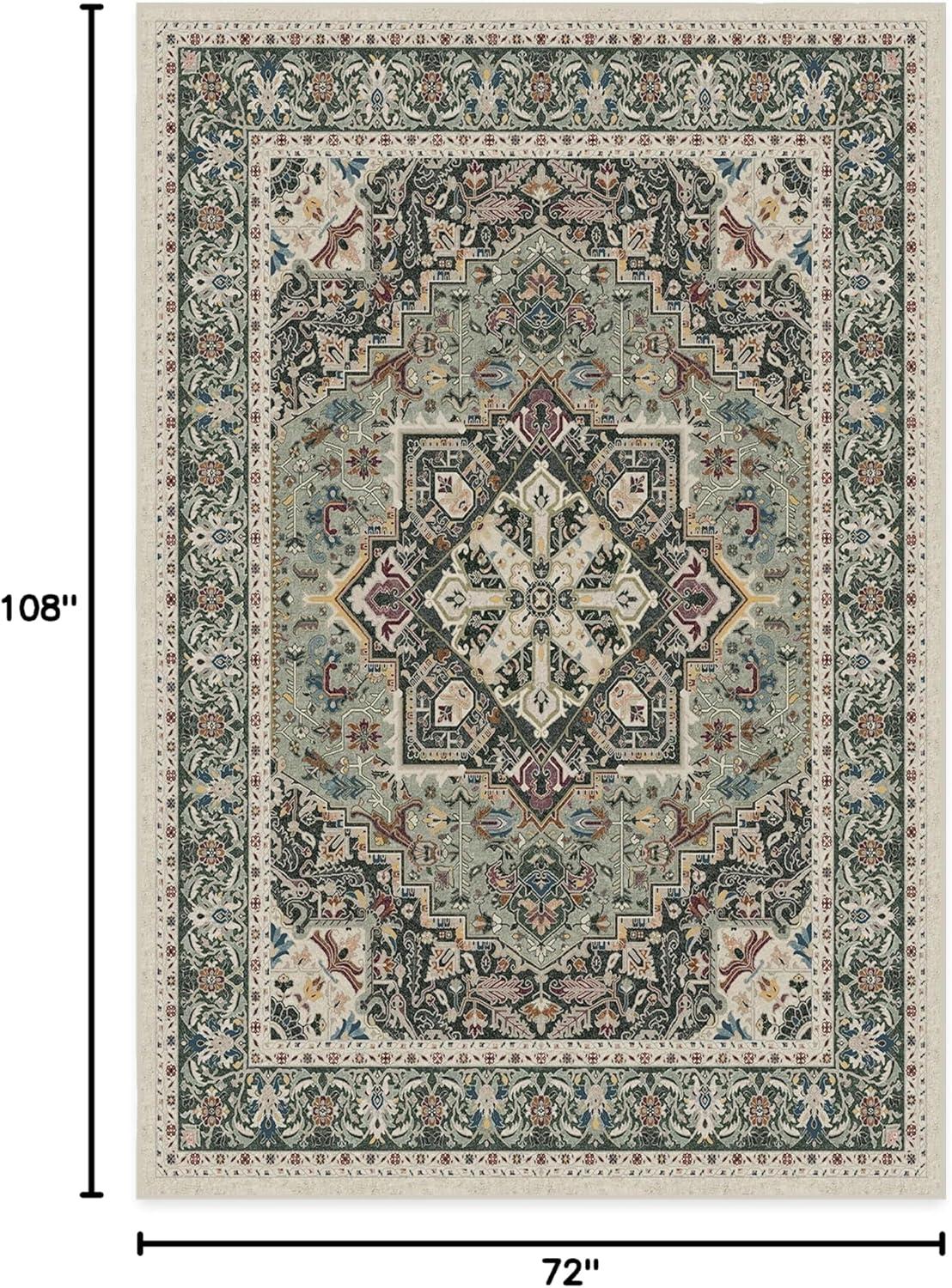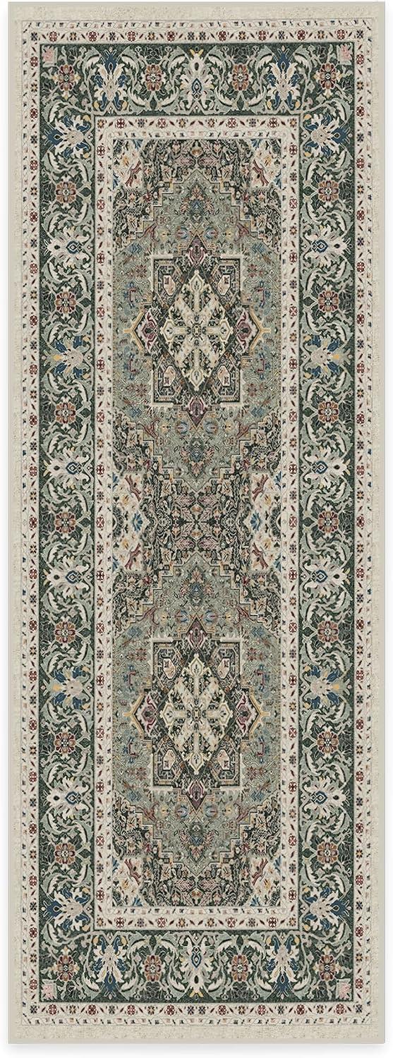 RUGGABLE Washable Vintage Runner Rug – Hendesi Heriz Abalone 2.5×7, Stain-Resistant, Non-Slip Hallway Runner – Machine Washable Rug for Hallway, Entryway, Living Room & Kitchen–with Standard Pad(Sage – Standard Pad)