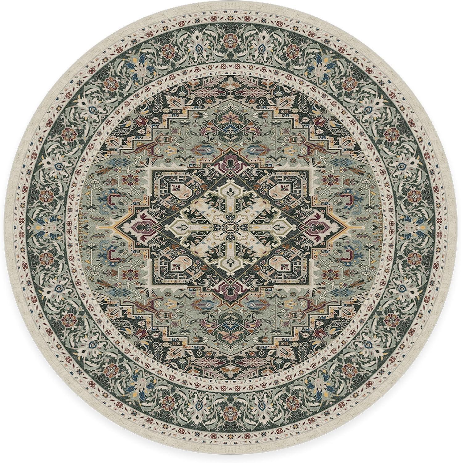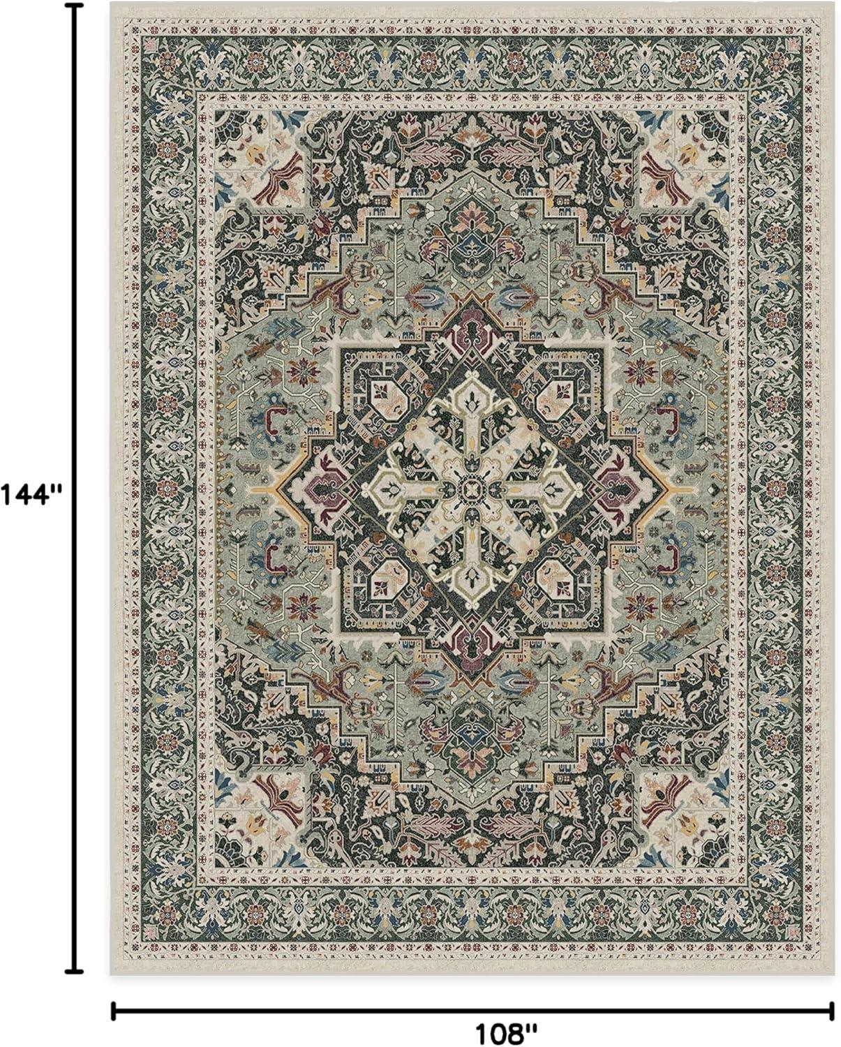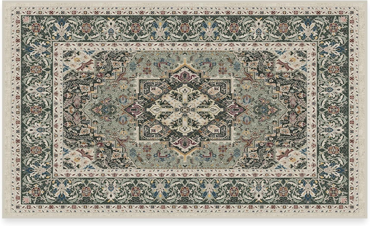 RUGGABLE Washable Vintage Runner Rug – Hendesi Heriz Abalone 2.5×7, Stain-Resistant, Non-Slip Hallway Runner – Machine Washable Rug for Hallway, Entryway, Living Room & Kitchen–with Standard Pad(Sage – Standard Pad)
