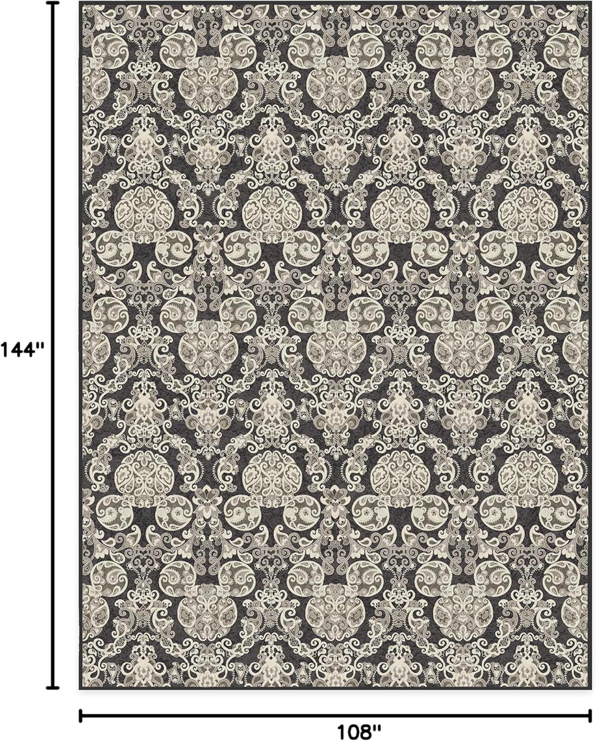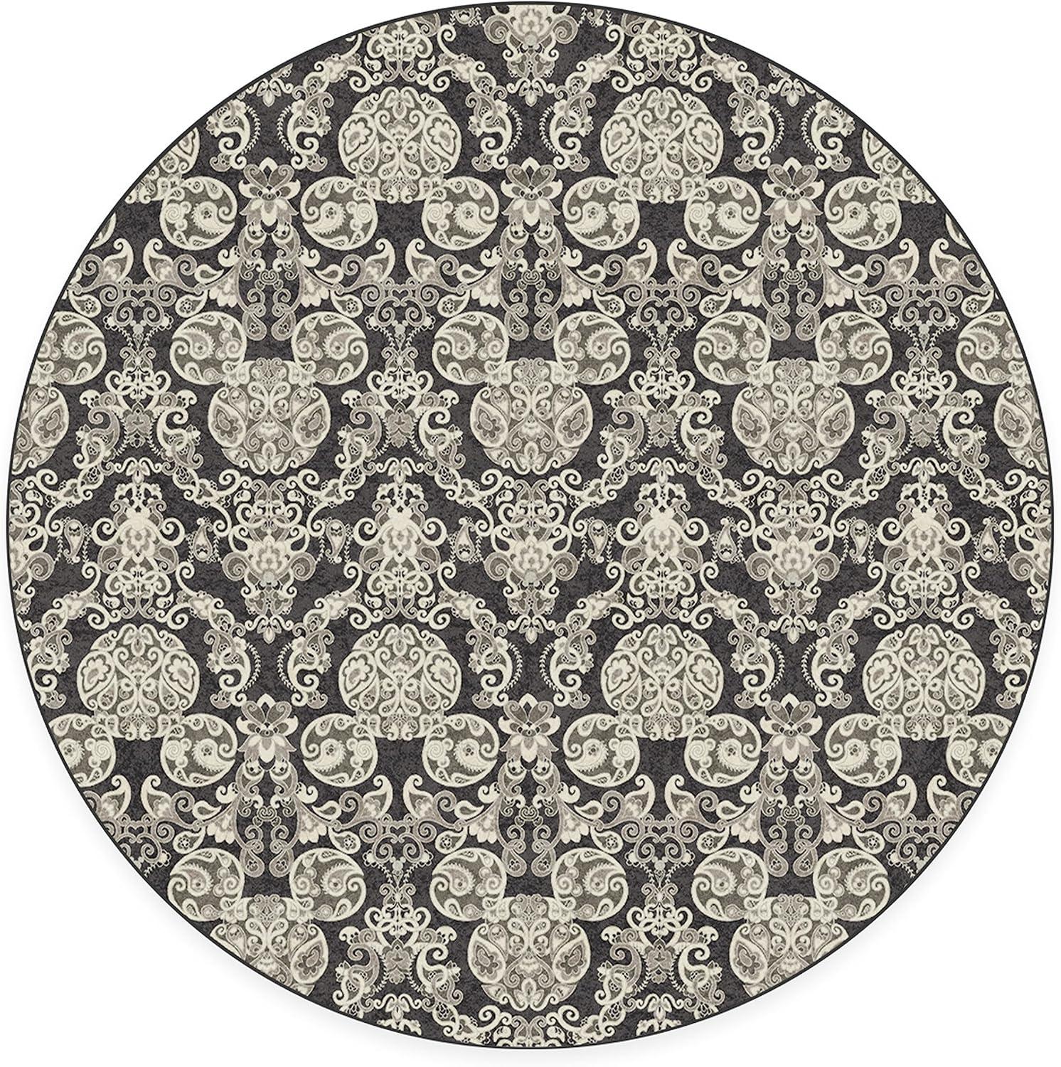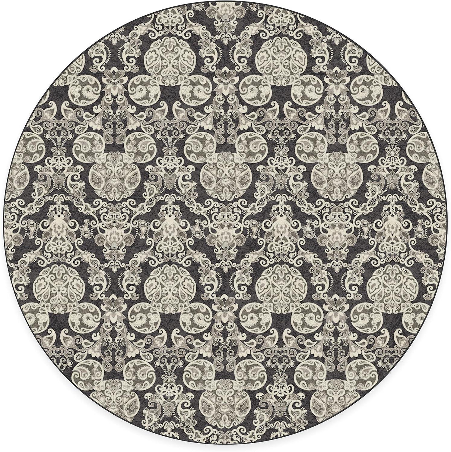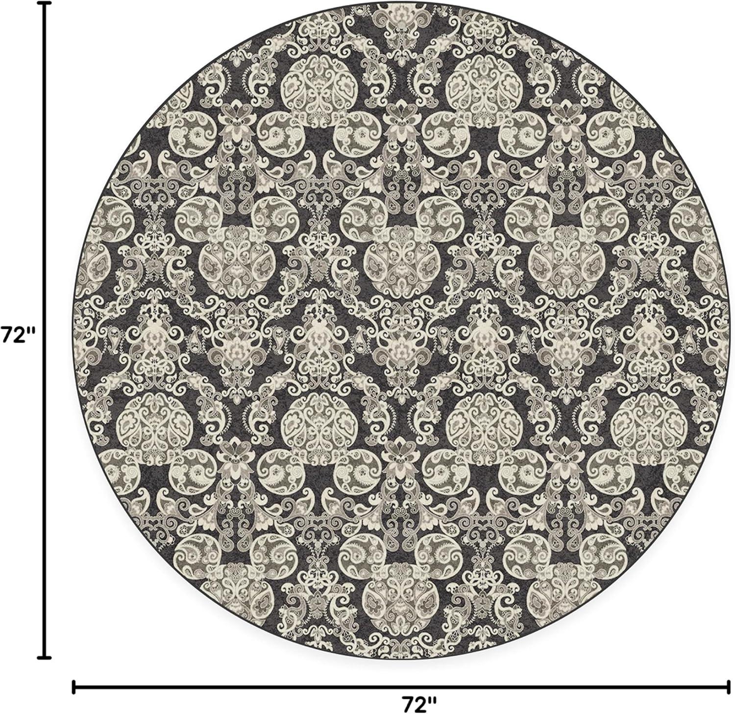 RUGGABLE x Disney Washable Area Rug – Damask Charcoal 6 ft Round, Stain-Resistant, Non-Slip – Medium Machine Washable Rugs for Living Room, Bedroom, Hallway, Entryway & Office–with Standard Pad(Mickey Damask Charcoal – Cushioned Pad)