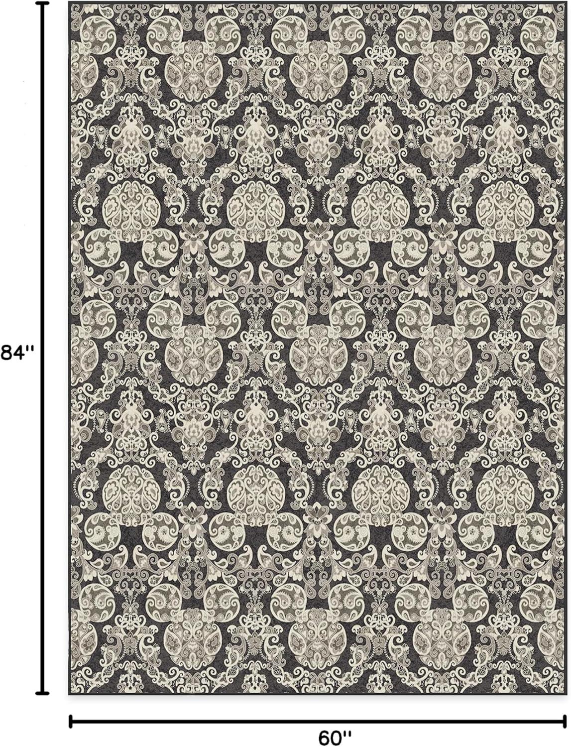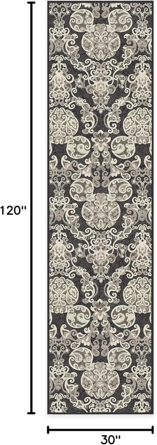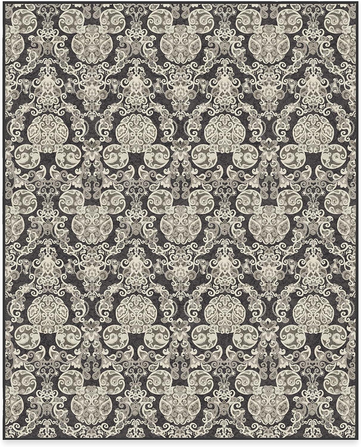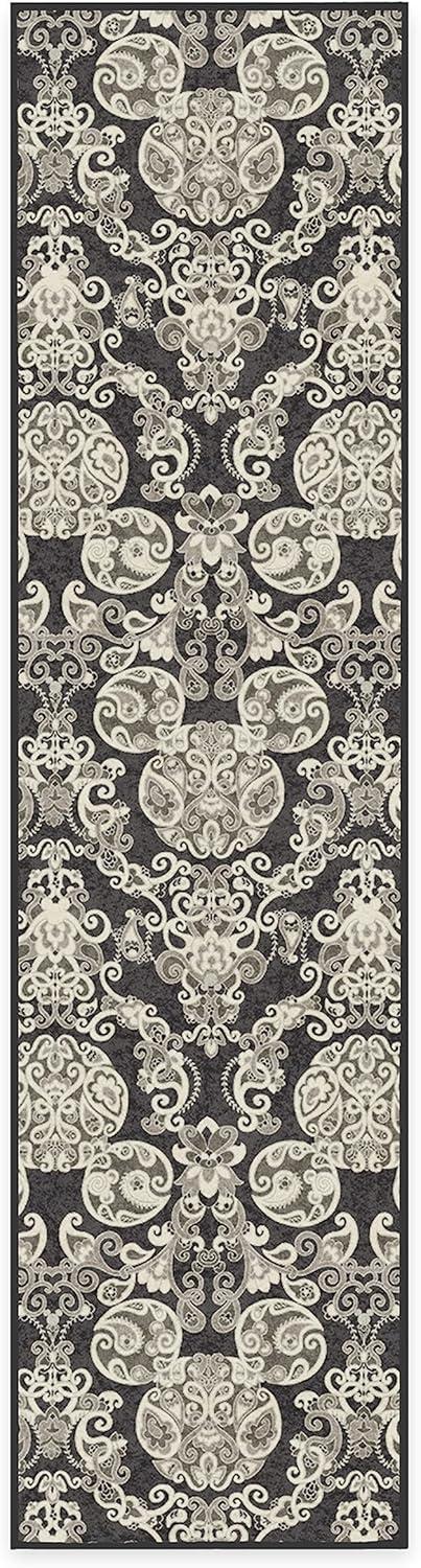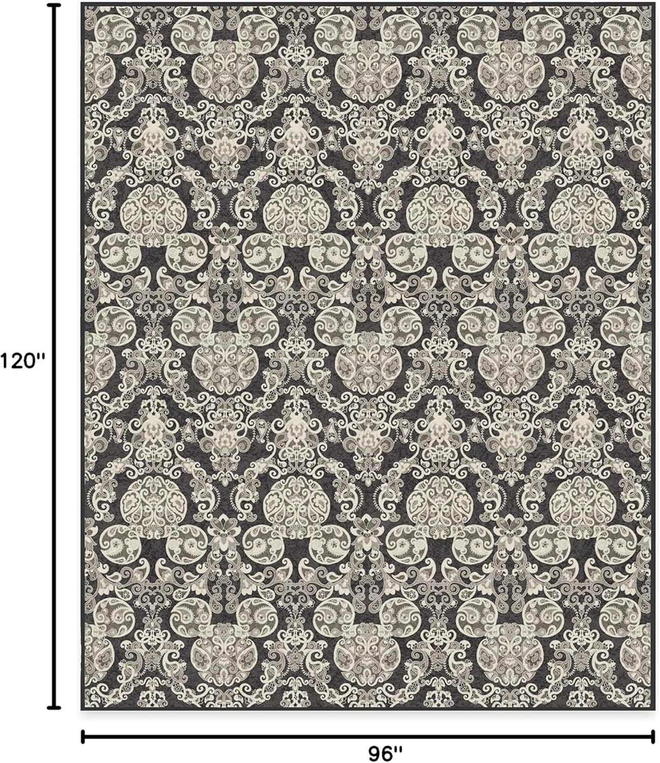 RUGGABLE x Disney Washable Area Rug – Damask Charcoal 6 ft Round, Stain-Resistant, Non-Slip – Medium Machine Washable Rugs for Living Room, Bedroom, Hallway, Entryway & Office–with Standard Pad(Mickey Damask Charcoal – Cushioned Pad)
