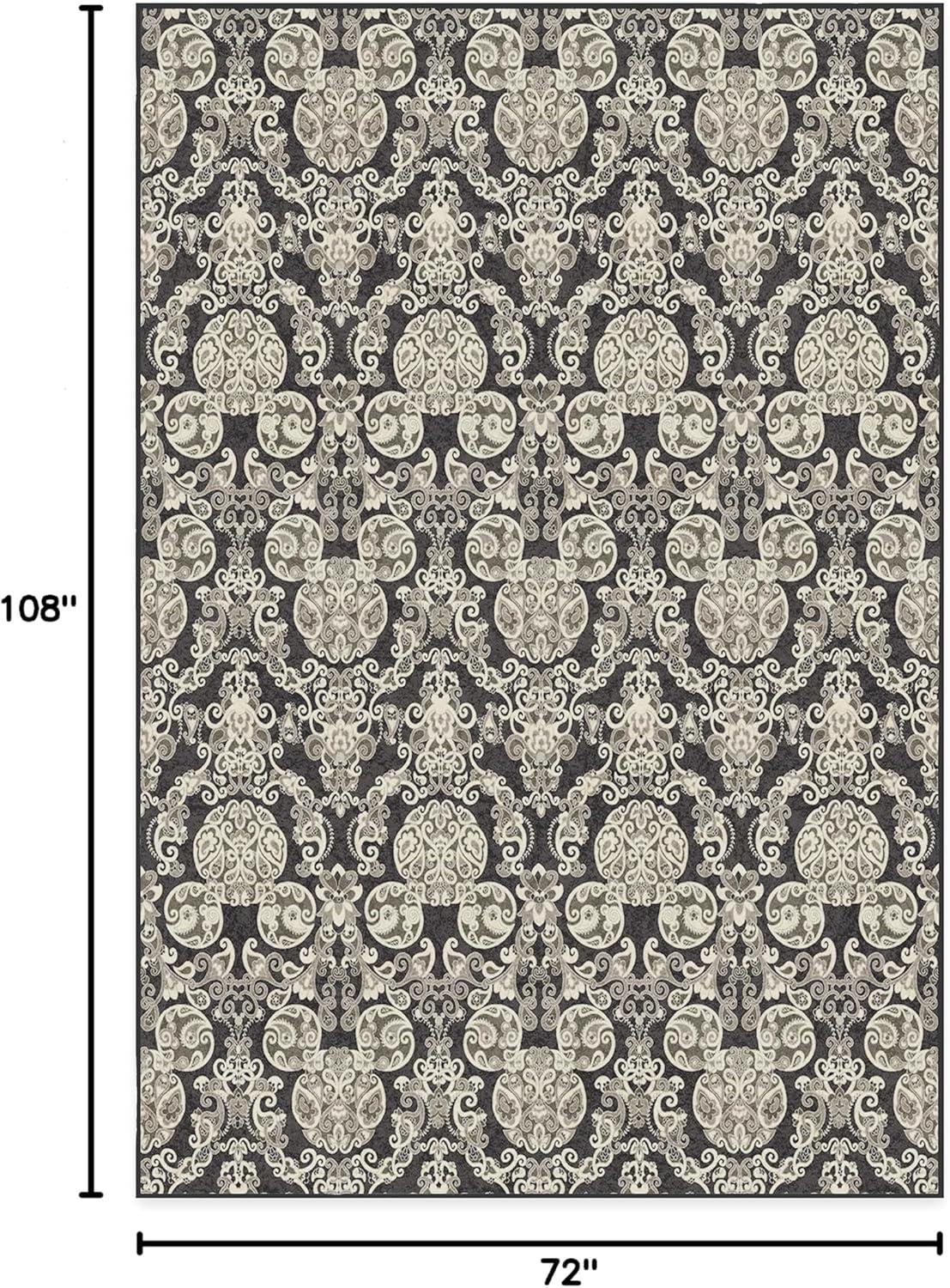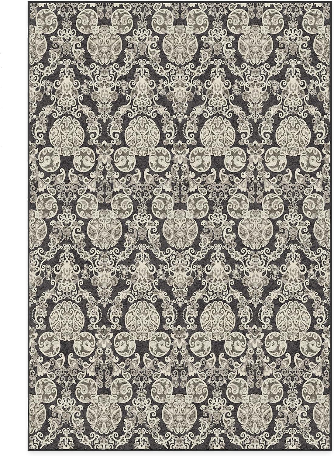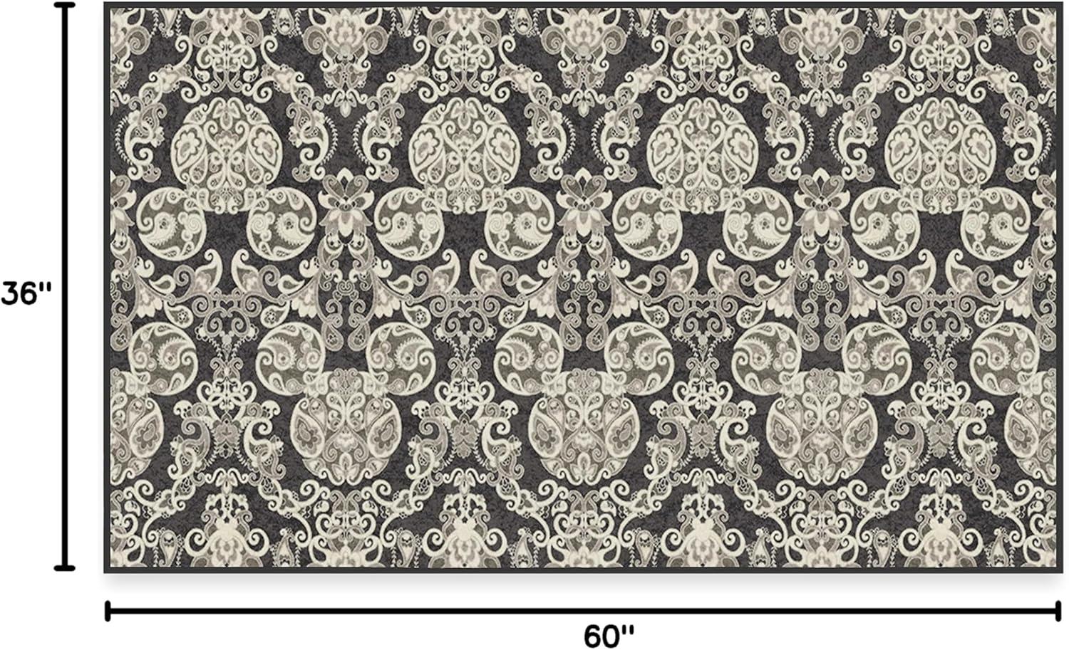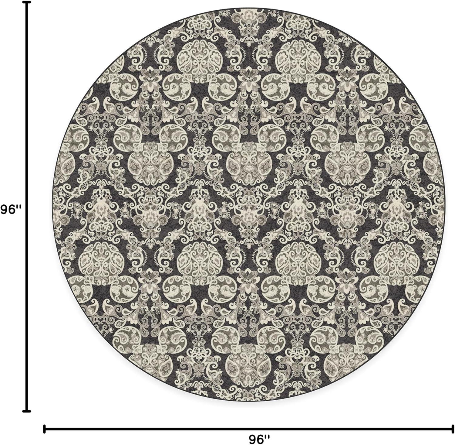RUGGABLE x Disney Washable Area Rug – Damask Charcoal 6 ft Round, Stain-Resistant, Non-Slip – Medium Machine Washable Rugs for Living Room, Bedroom, Hallway, Entryway & Office–with Standard Pad(Mickey Damask Charcoal – Standard Pad)