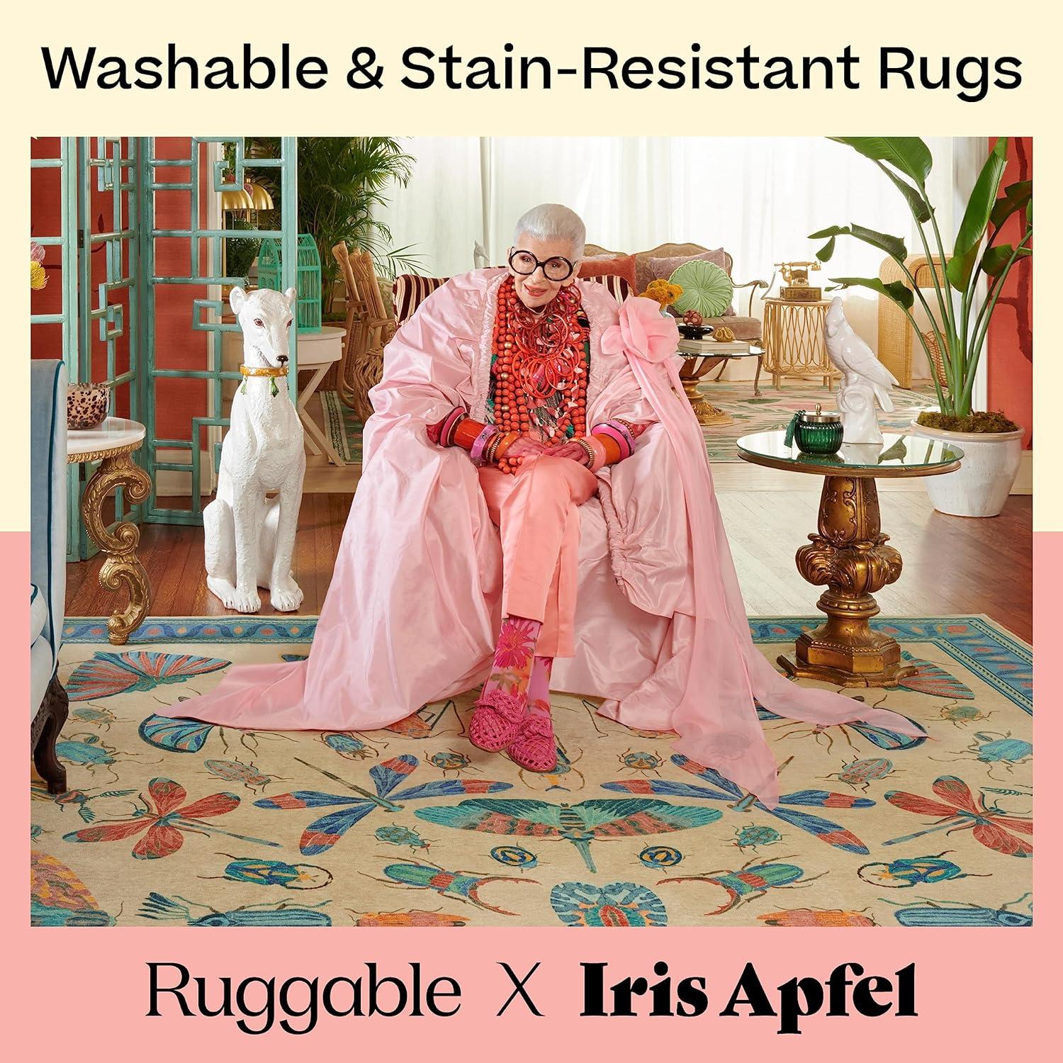 RUGGABLE x Iris Apfel Machine Washable Modern Area Rug – Birds of A Feather Neutral 3×5, Stain-Resistant, Non-Slip – Small Rugs for Living Room, Bedroom, Hallway, Entryway & Office–with Cushioned Pad(Birds of a Feather Neutral – Cushioned Pad)