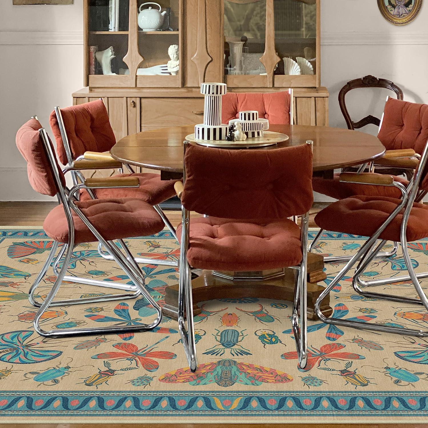 RUGGABLE x Iris Apfel Machine Washable Modern Area Rug – Birds of A Feather Neutral 3×5, Stain-Resistant, Non-Slip – Small Rugs for Living Room, Bedroom, Hallway, Entryway & Office–with Cushioned Pad(A – Flutterby Multicolor – Standard Pad)