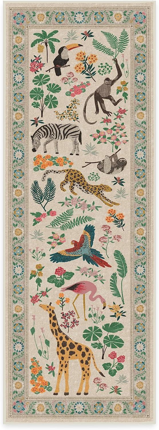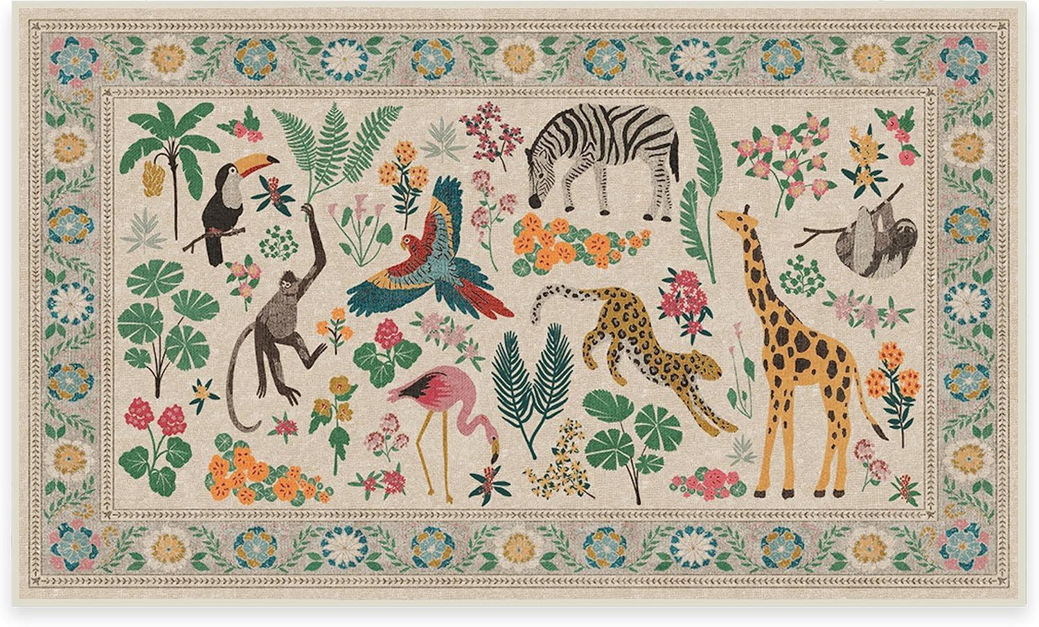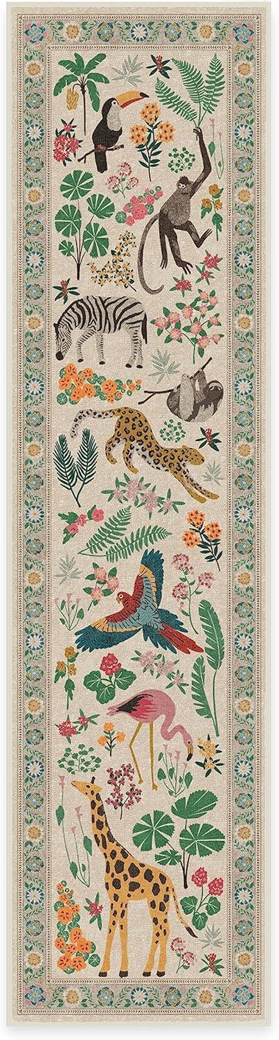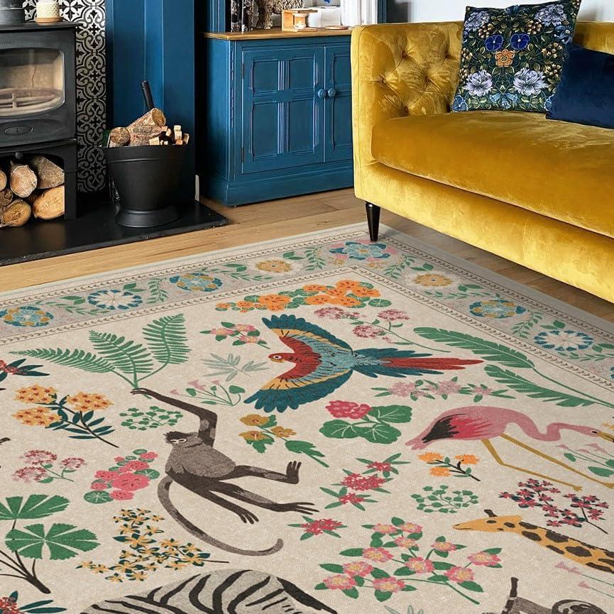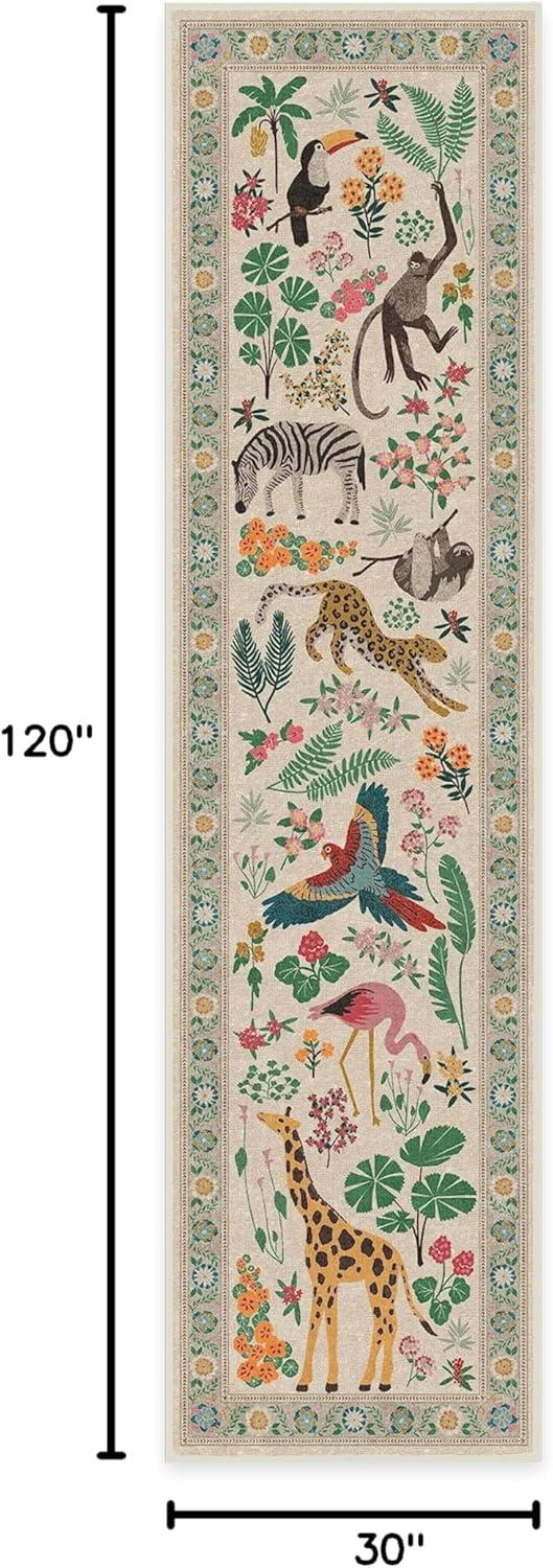 RUGGABLE x Iris Apfel Machine Washable Modern Area Rug – Birds of A Feather Neutral 3×5, Stain-Resistant, Non-Slip – Small Rugs for Living Room, Bedroom, Hallway, Entryway & Office–with Cushioned Pad(B – Jingle Jungle – Cushioned Pad)