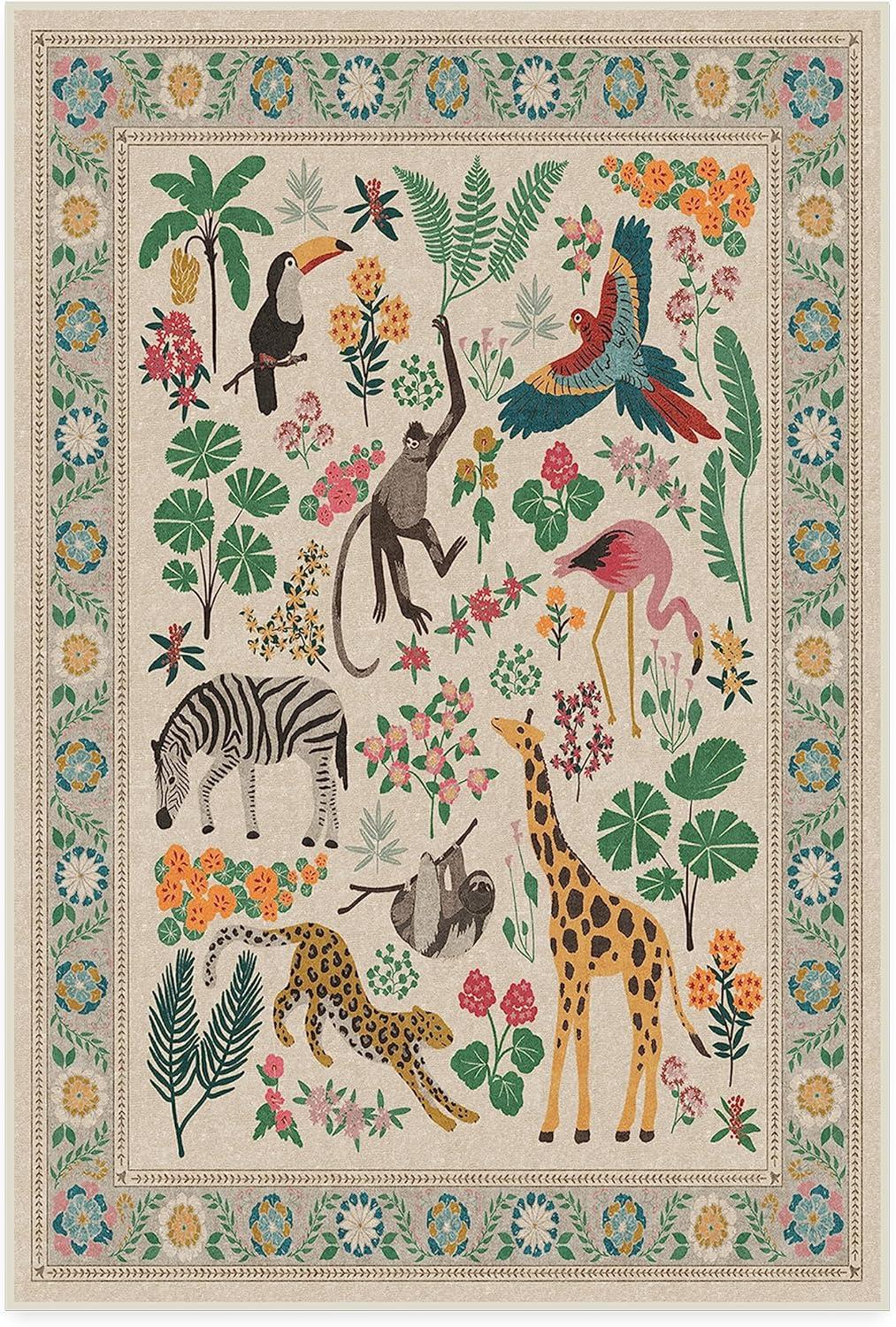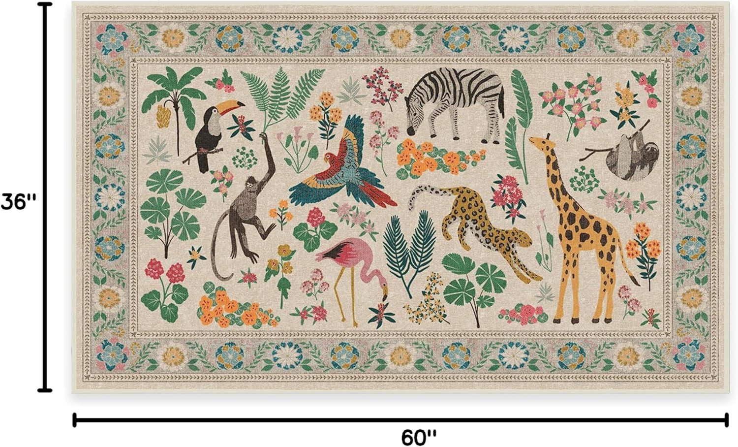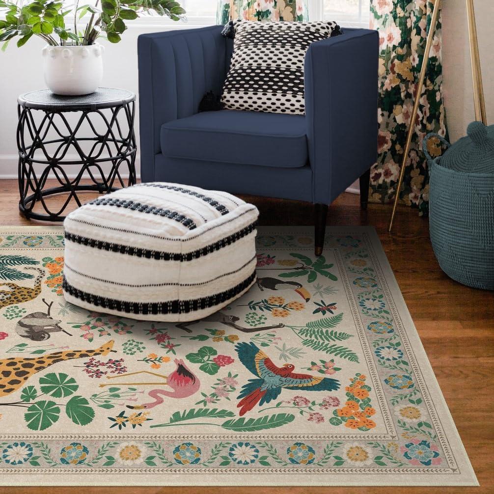 RUGGABLE x Iris Apfel Machine Washable Modern Area Rug – Birds of A Feather Neutral 3×5, Stain-Resistant, Non-Slip – Small Rugs for Living Room, Bedroom, Hallway, Entryway & Office–with Cushioned Pad(B – Jingle Jungle – Standard Pad)