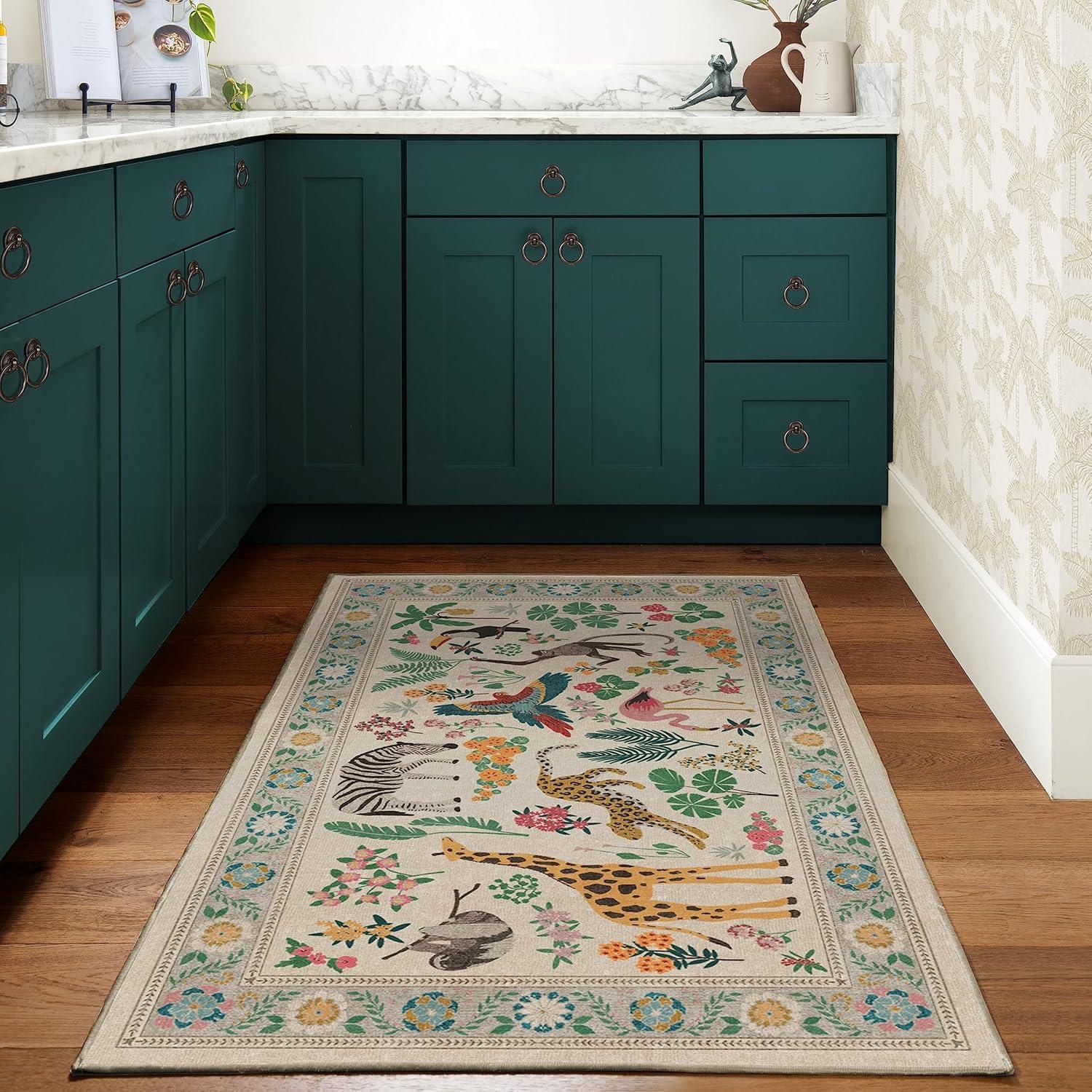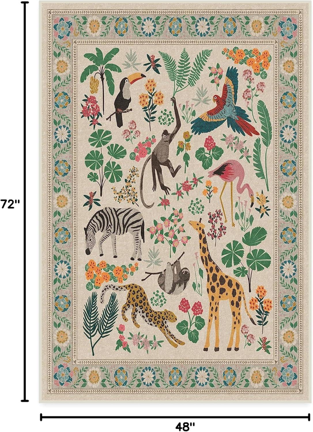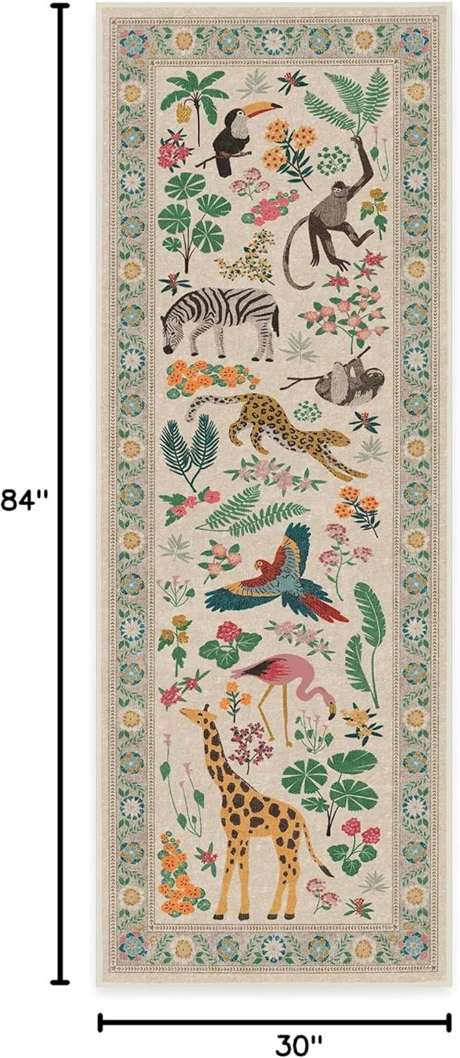 RUGGABLE x Iris Apfel Machine Washable Modern Area Rug – Birds of A Feather Neutral 3×5, Stain-Resistant, Non-Slip – Small Rugs for Living Room, Bedroom, Hallway, Entryway & Office–with Cushioned Pad(B – Jingle Jungle – Standard Pad)