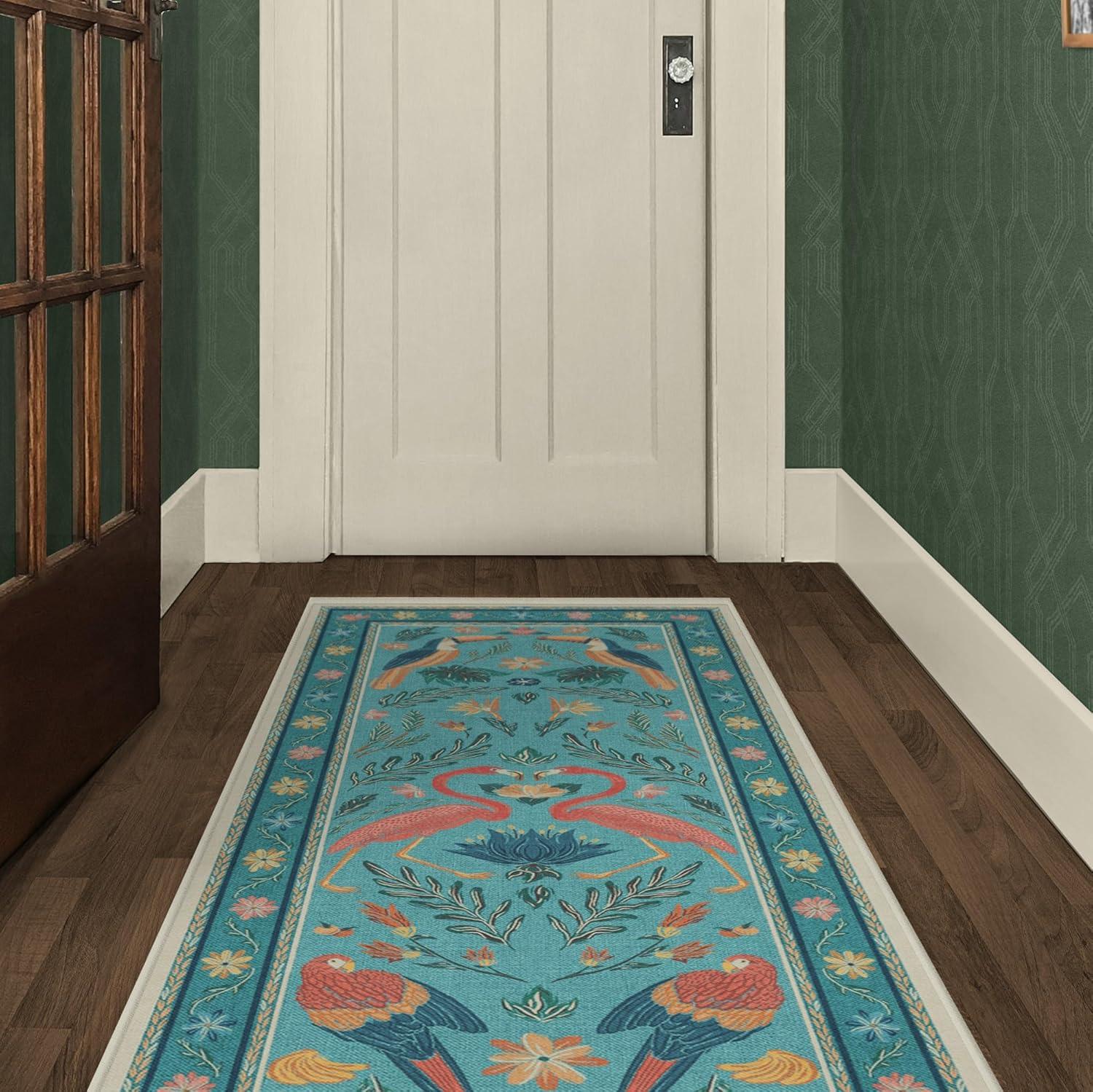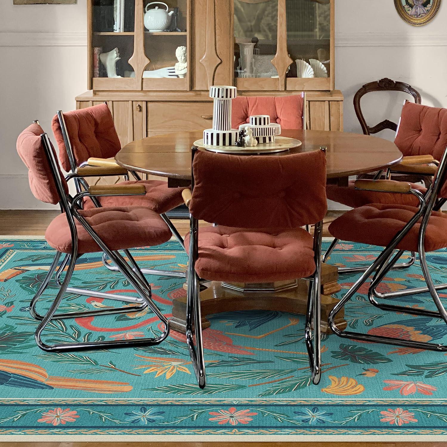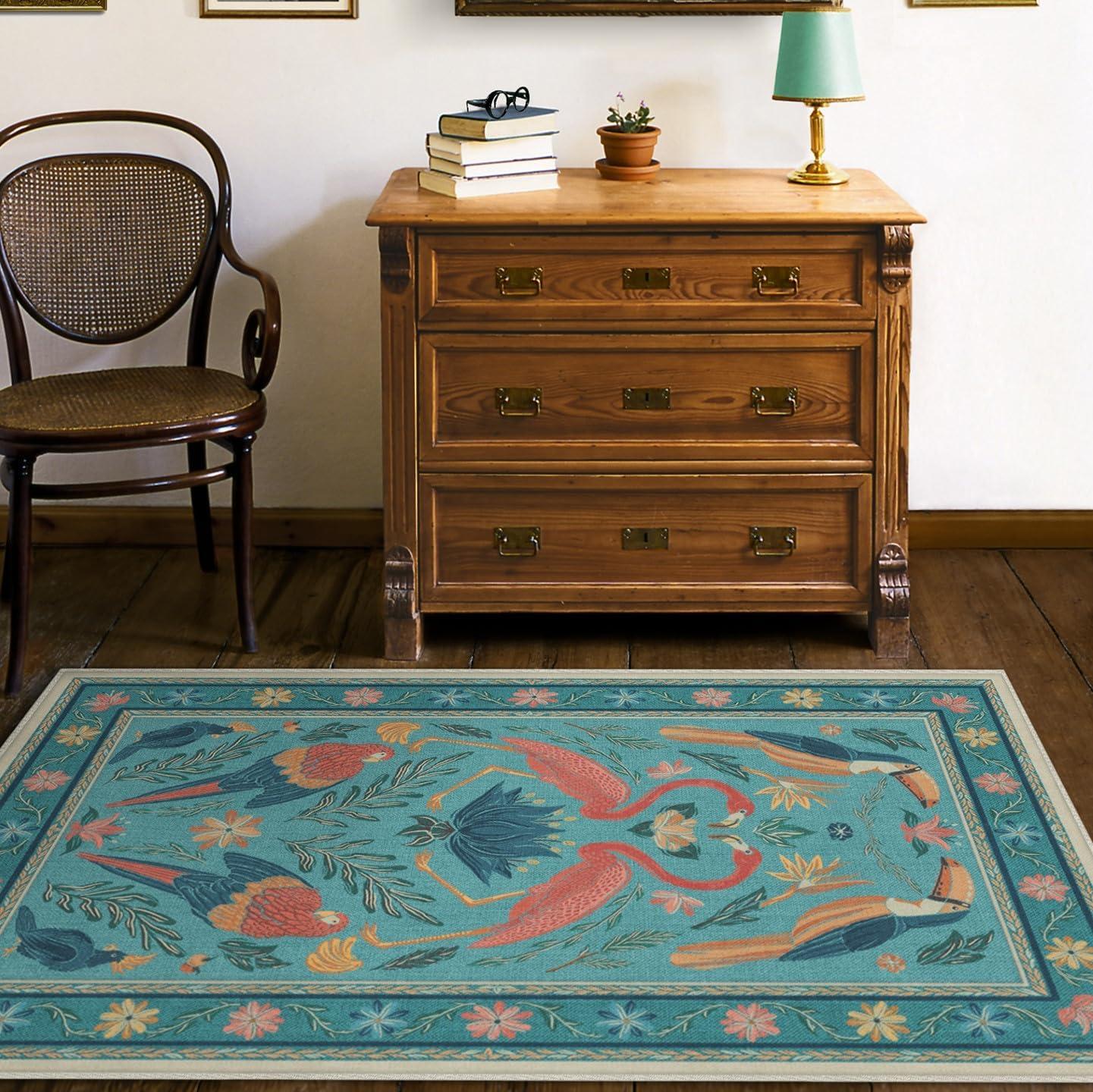 RUGGABLE x Iris Apfel Machine Washable Modern Area Rug – Birds of A Feather Neutral 3×5, Stain-Resistant, Non-Slip – Small Rugs for Living Room, Bedroom, Hallway, Entryway & Office–with Cushioned Pad(Birds of a Feather Aqua – Cushioned Pad)