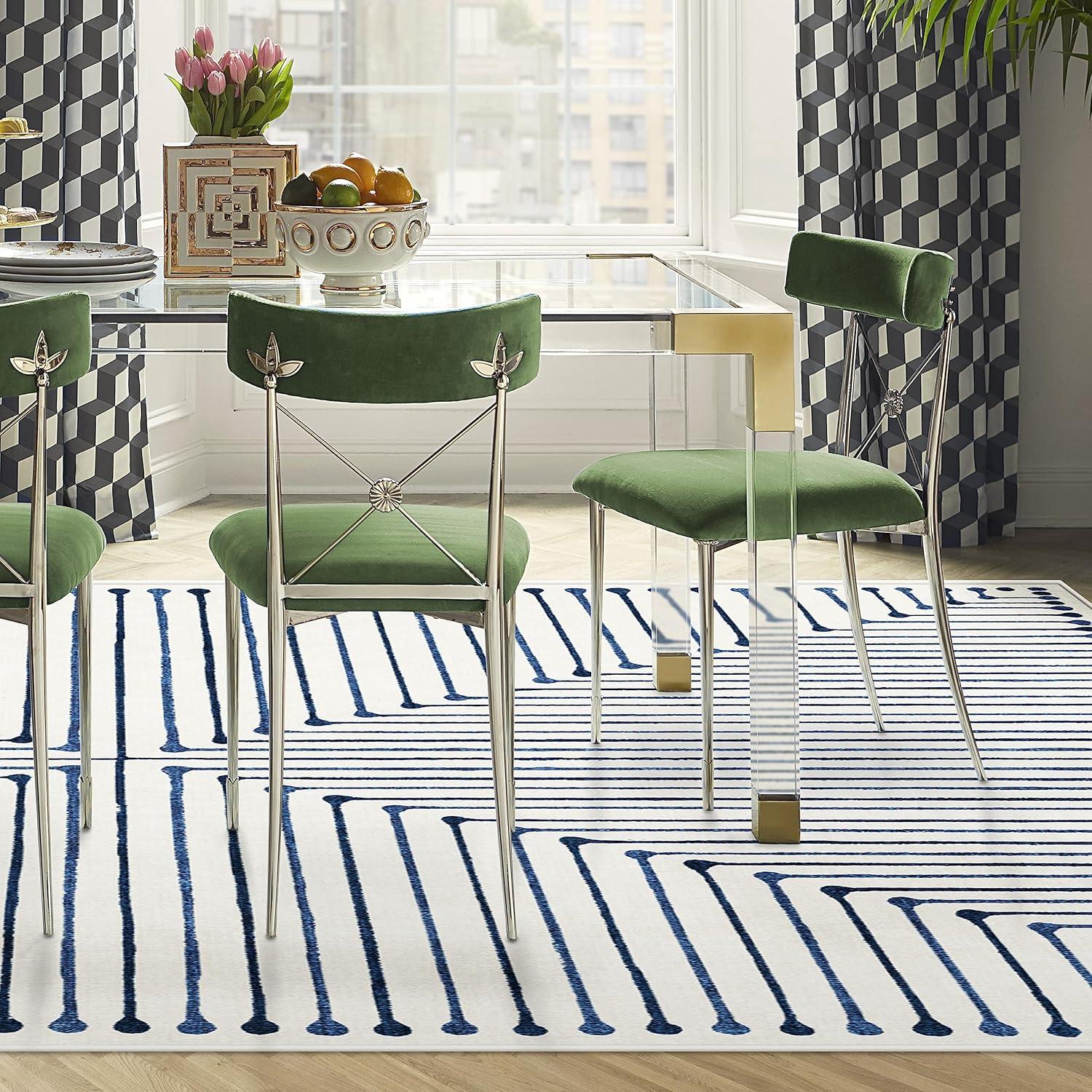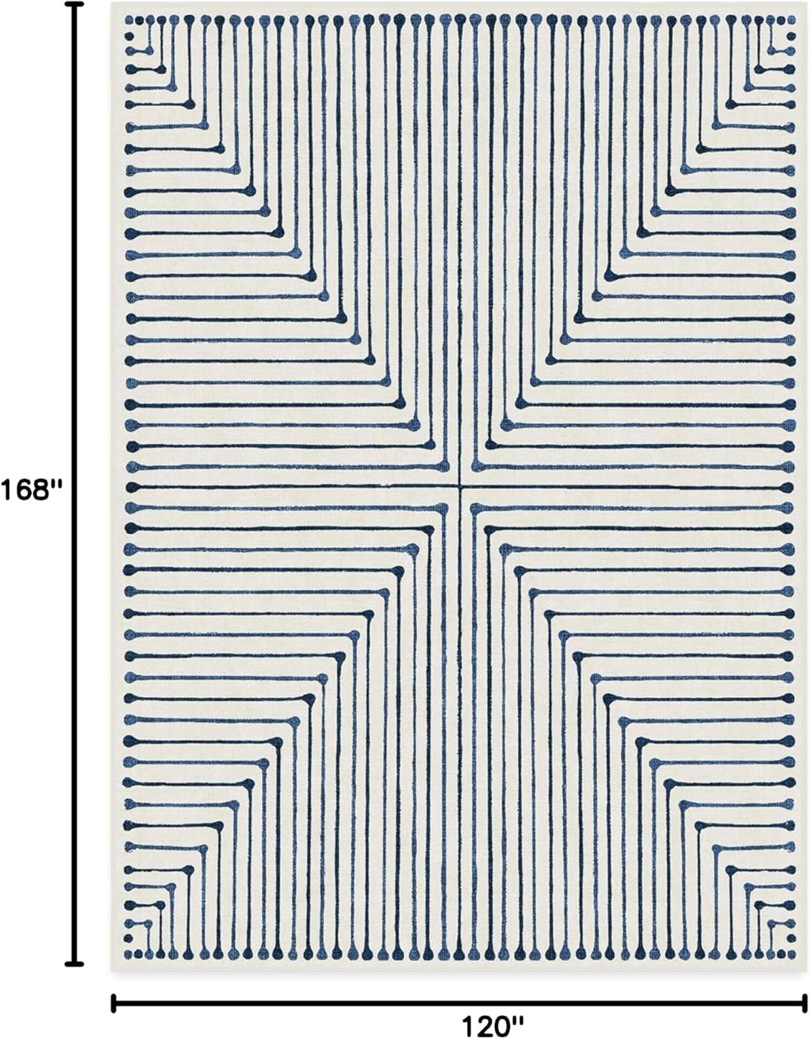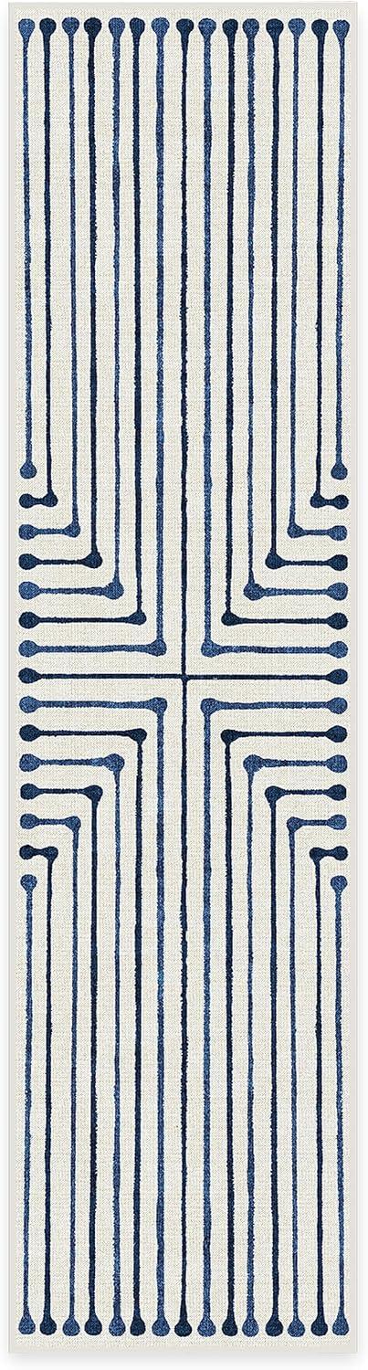 RUGGABLE x Jonathan Adler Machine Washable Modern Runner Rug – Inkdrop Camel & Ivory 2.5×7, Stain-Resistant, Non-Slip – Washable Rug for Hallway, Entryway, Living Room & Kitchen–with Standard Pad(Inkdrop Slate Blue – Standard Pad)