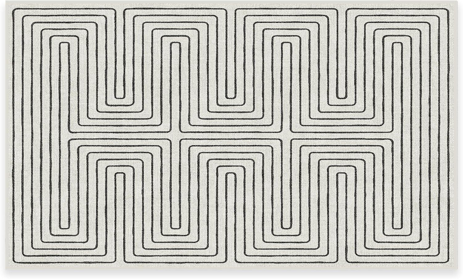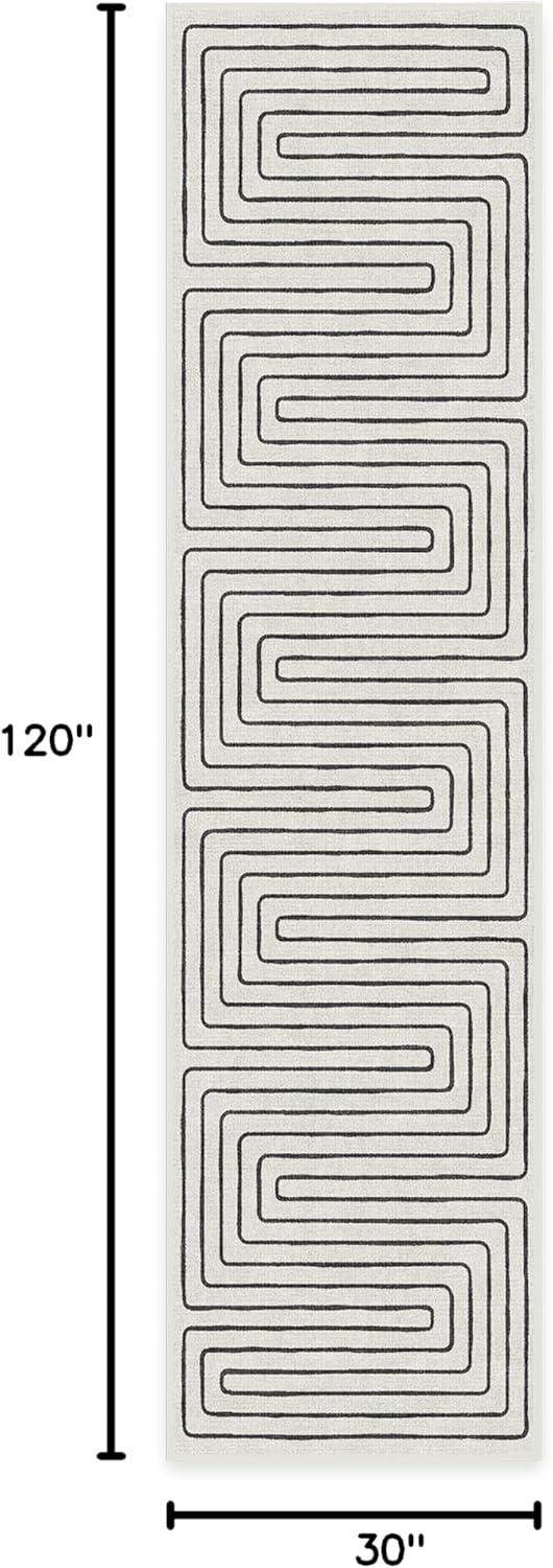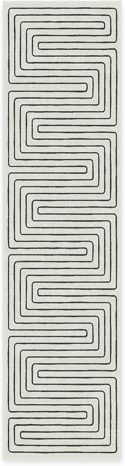 RUGGABLE x Jonathan Adler Machine Washable Modern Runner Rug – Inkdrop Camel & Ivory 2.5×7, Stain-Resistant, Non-Slip – Washable Rug for Hallway, Entryway, Living Room & Kitchen–with Standard Pad(Labyrinth Black/Ivory – Cushioned Pad)