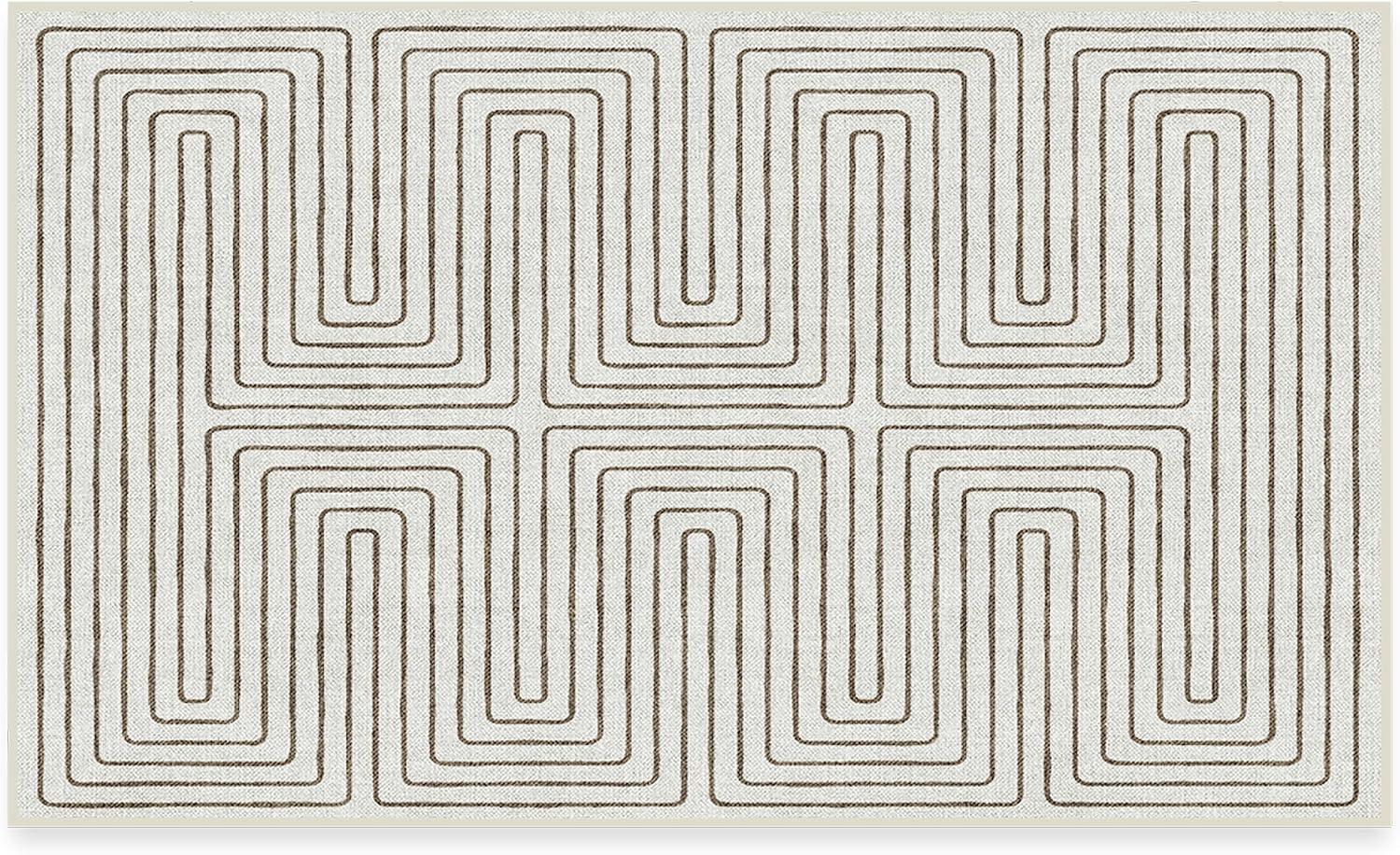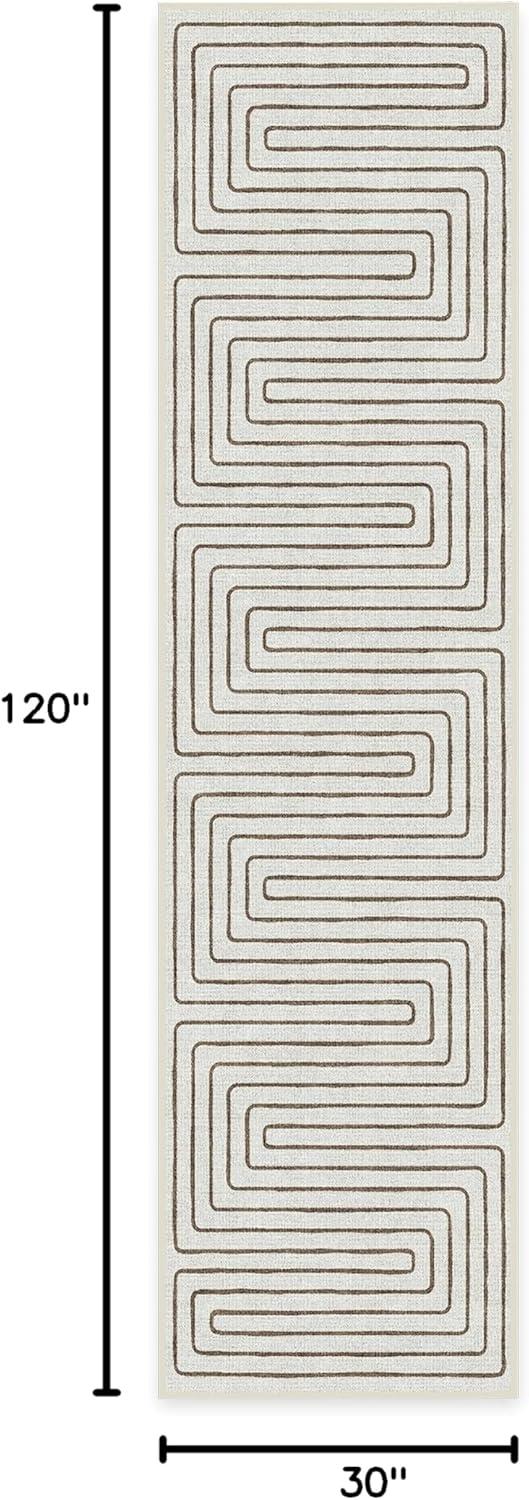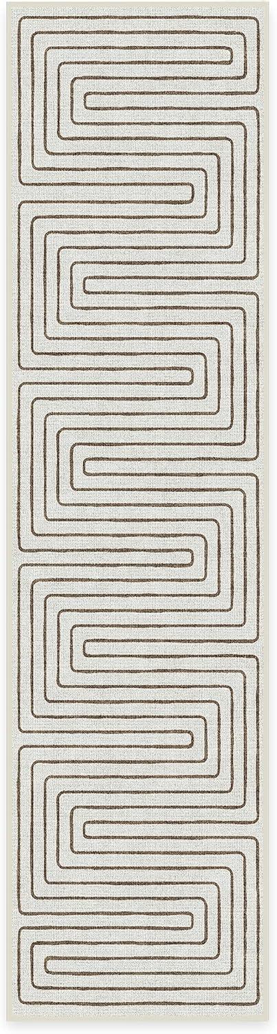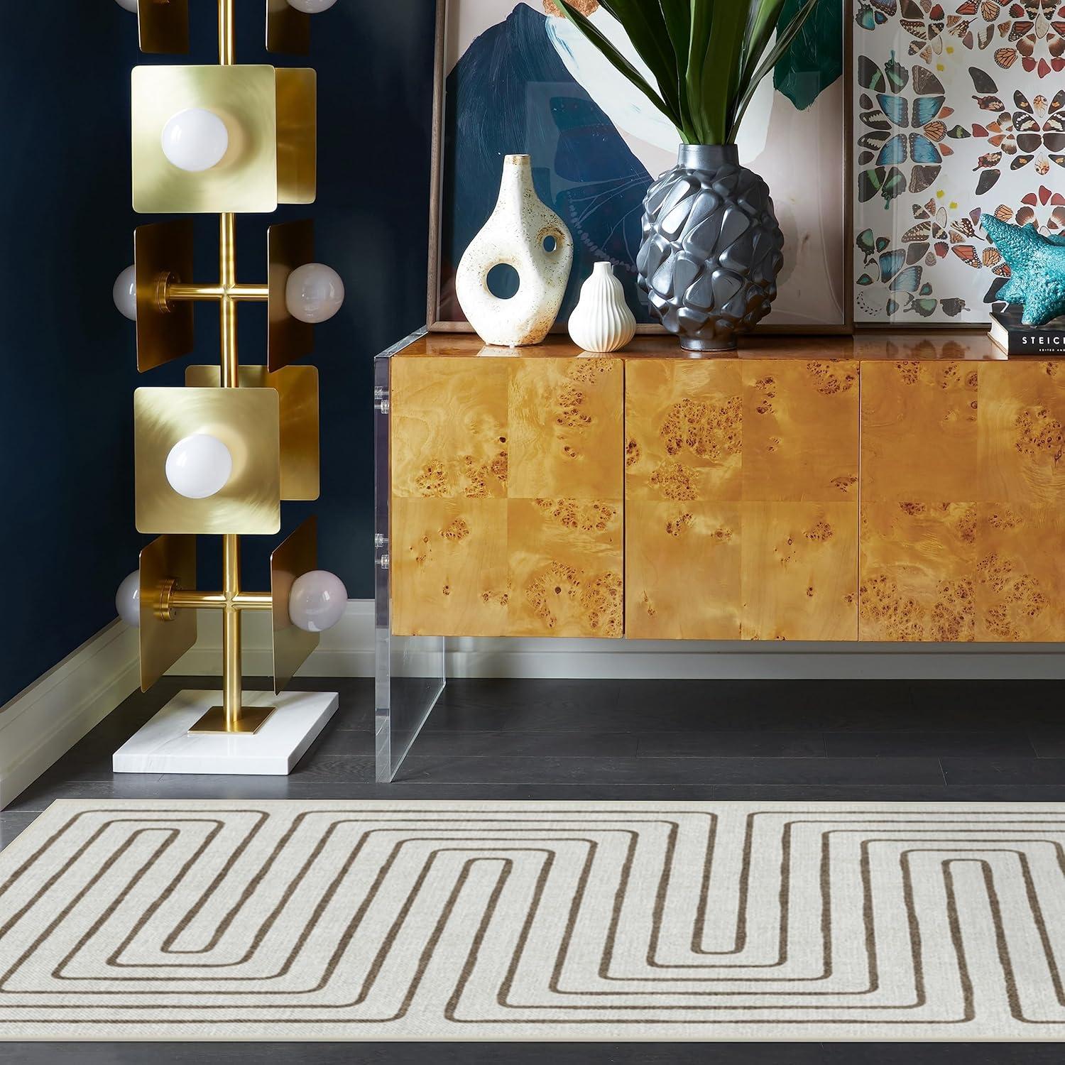 RUGGABLE x Jonathan Adler Machine Washable Modern Runner Rug – Inkdrop Camel & Ivory 2.5×7, Stain-Resistant, Non-Slip – Washable Rug for Hallway, Entryway, Living Room & Kitchen–with Standard Pad(Labyrinth Camel/Ivory – Standard Pad)