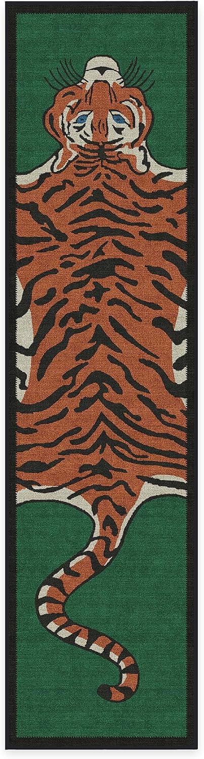 RUGGABLE x Jonathan Adler Machine Washable Modern Runner Rug – Inkdrop Camel & Ivory 2.5×7, Stain-Resistant, Non-Slip – Washable Rug for Hallway, Entryway, Living Room & Kitchen–with Standard Pad(Tiger Emerald – Cushioned Pad)