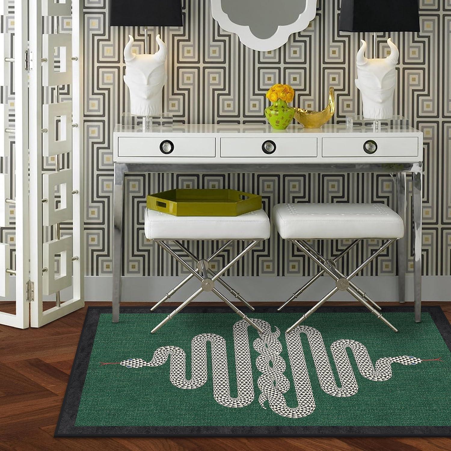 RUGGABLE x Jonathan Adler Machine Washable Modern Runner Rug – Inkdrop Camel & Ivory 2.5×7, Stain-Resistant, Non-Slip – Washable Rug for Hallway, Entryway, Living Room & Kitchen–with Standard Pad(Venom Emerald – Standard Pad)
