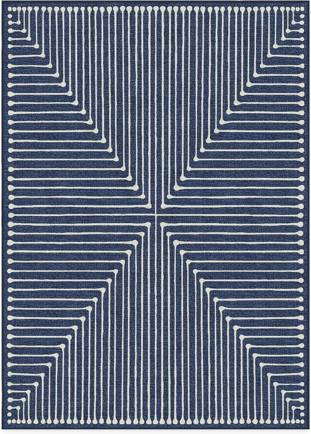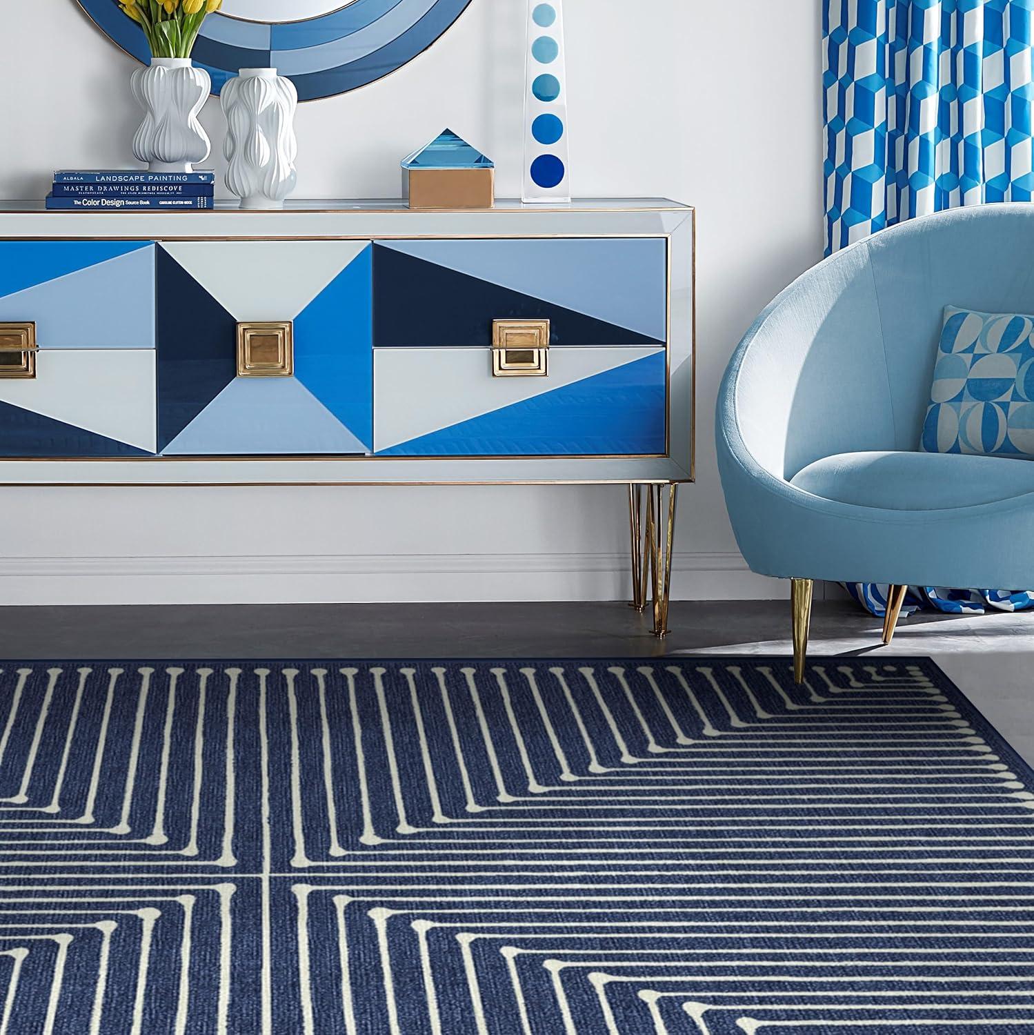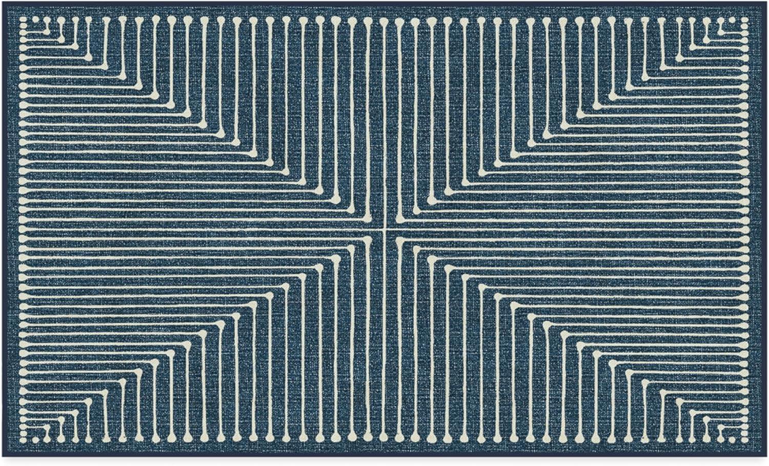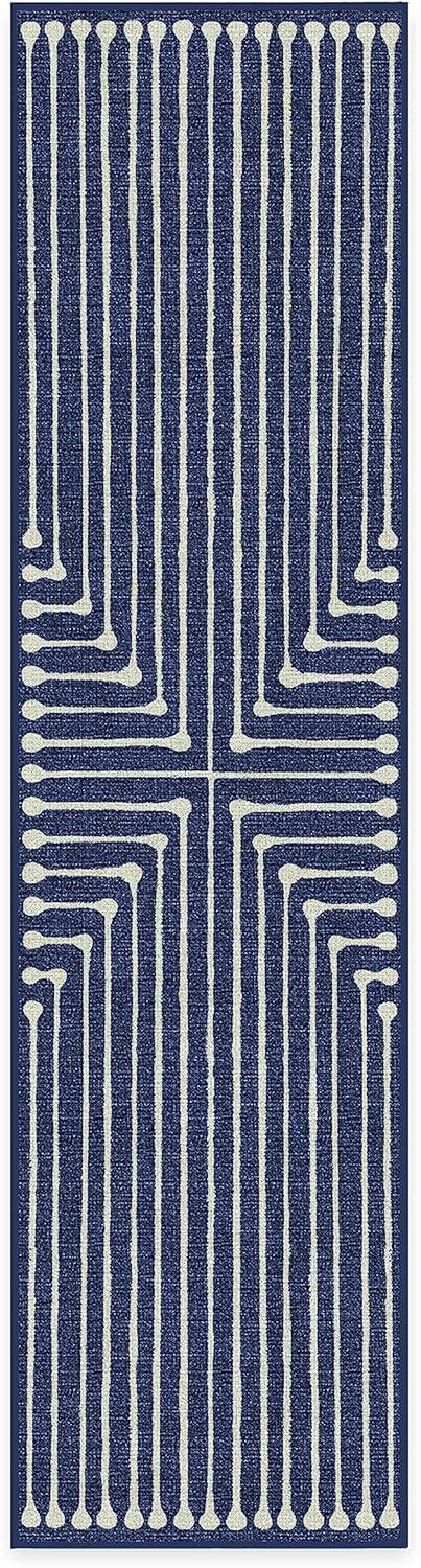 RUGGABLE x Jonathan Adler Machine Washable Modern Runner Rug – Inkdrop Camel & Ivory 2.5×7, Stain-Resistant, Non-Slip – Washable Rug for Hallway, Entryway, Living Room & Kitchen–with Standard Pad(Inkdrop Lapis Blue – Standard Pad)