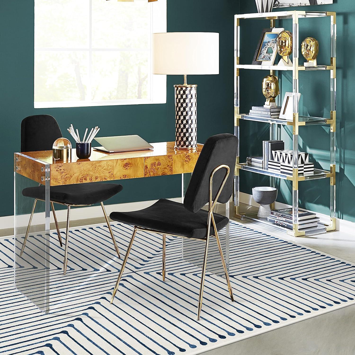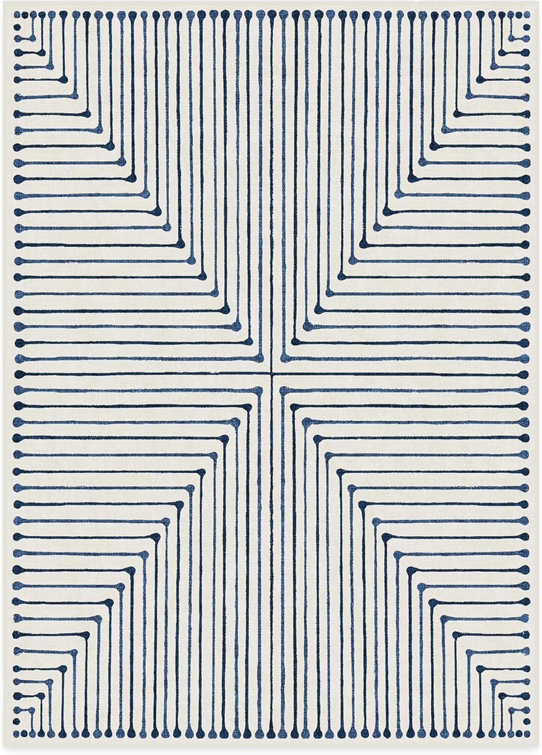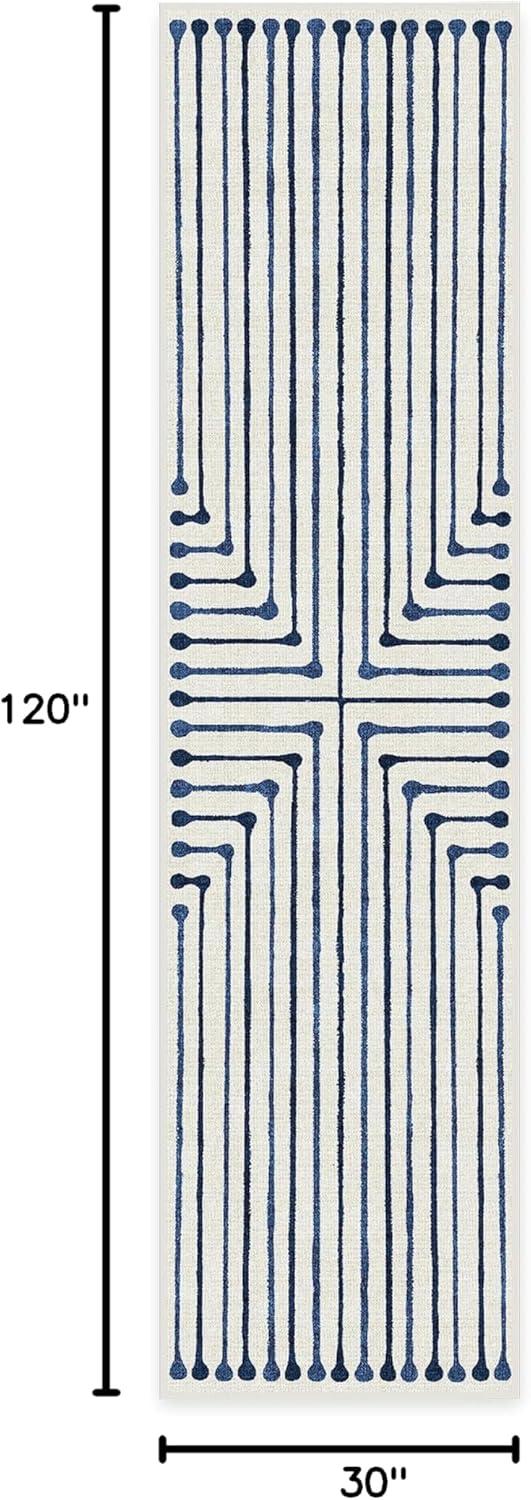 RUGGABLE x Jonathan Adler Machine Washable Modern Runner Rug – Inkdrop Camel & Ivory 2.5×7, Stain-Resistant, Non-Slip – Washable Rug for Hallway, Entryway, Living Room & Kitchen–with Standard Pad(Inkdrop Slate Blue – Cushioned Pad)