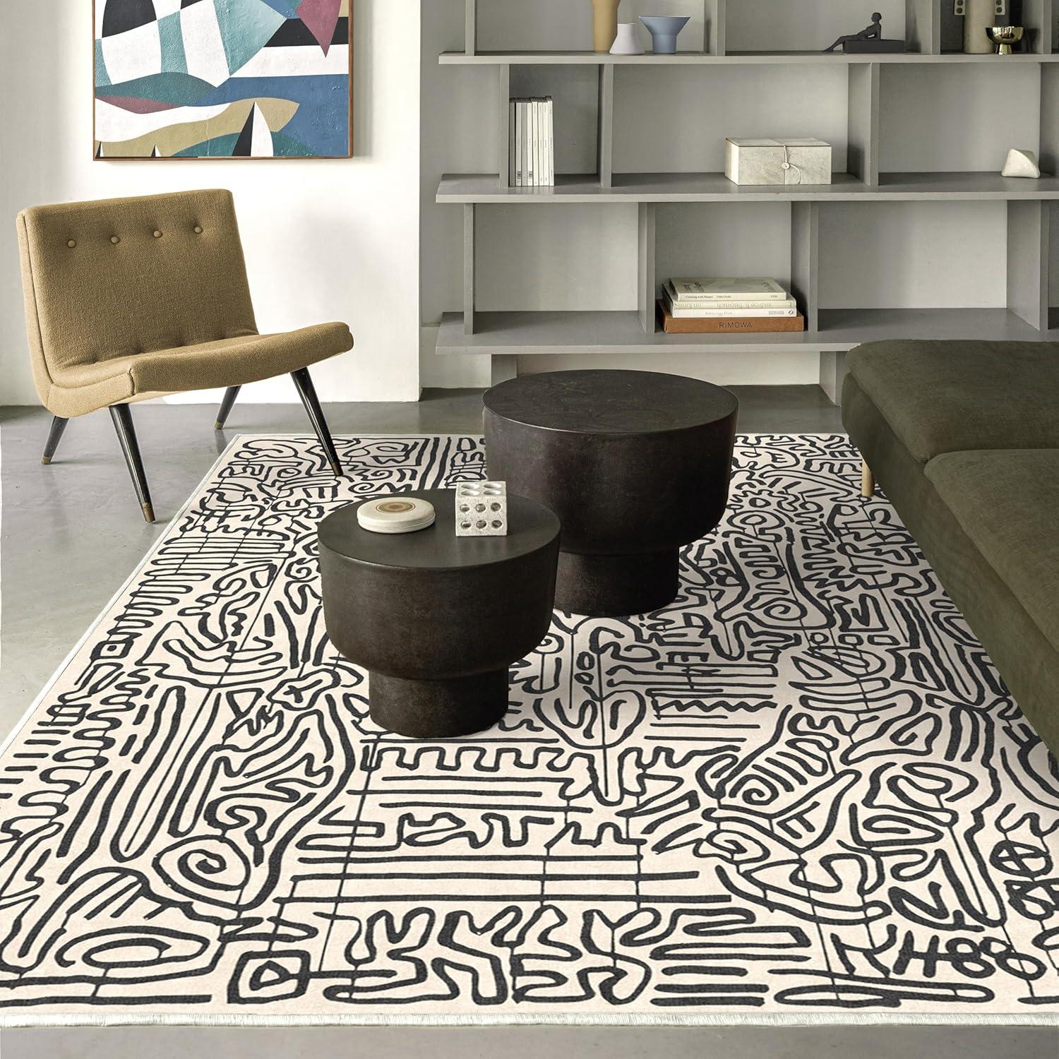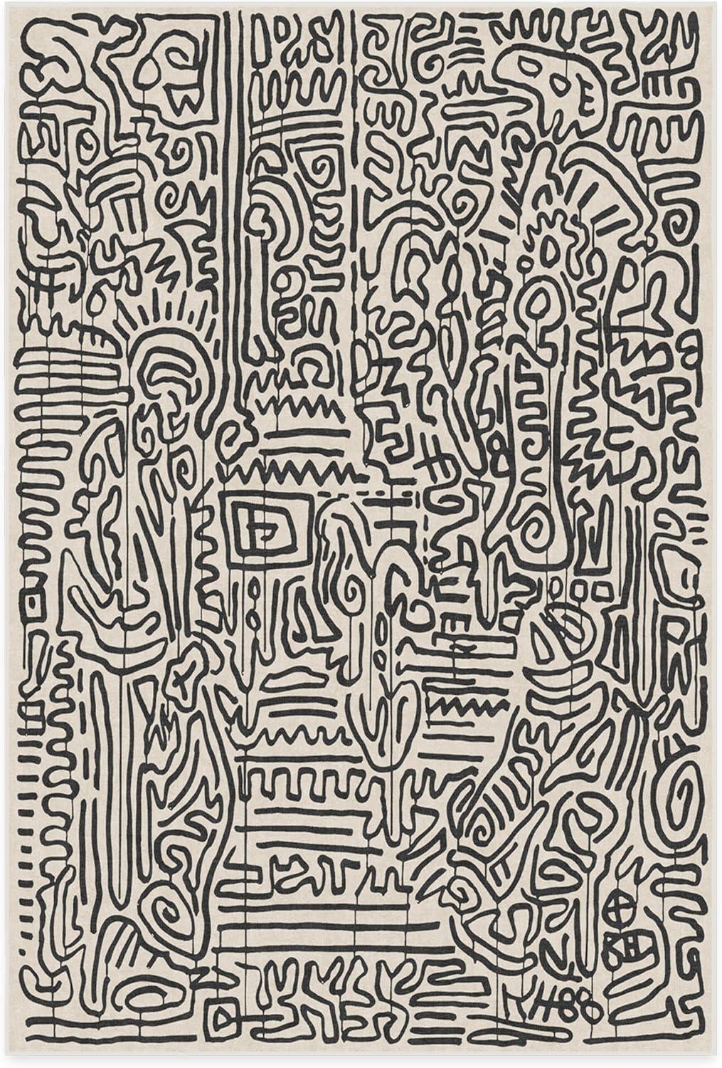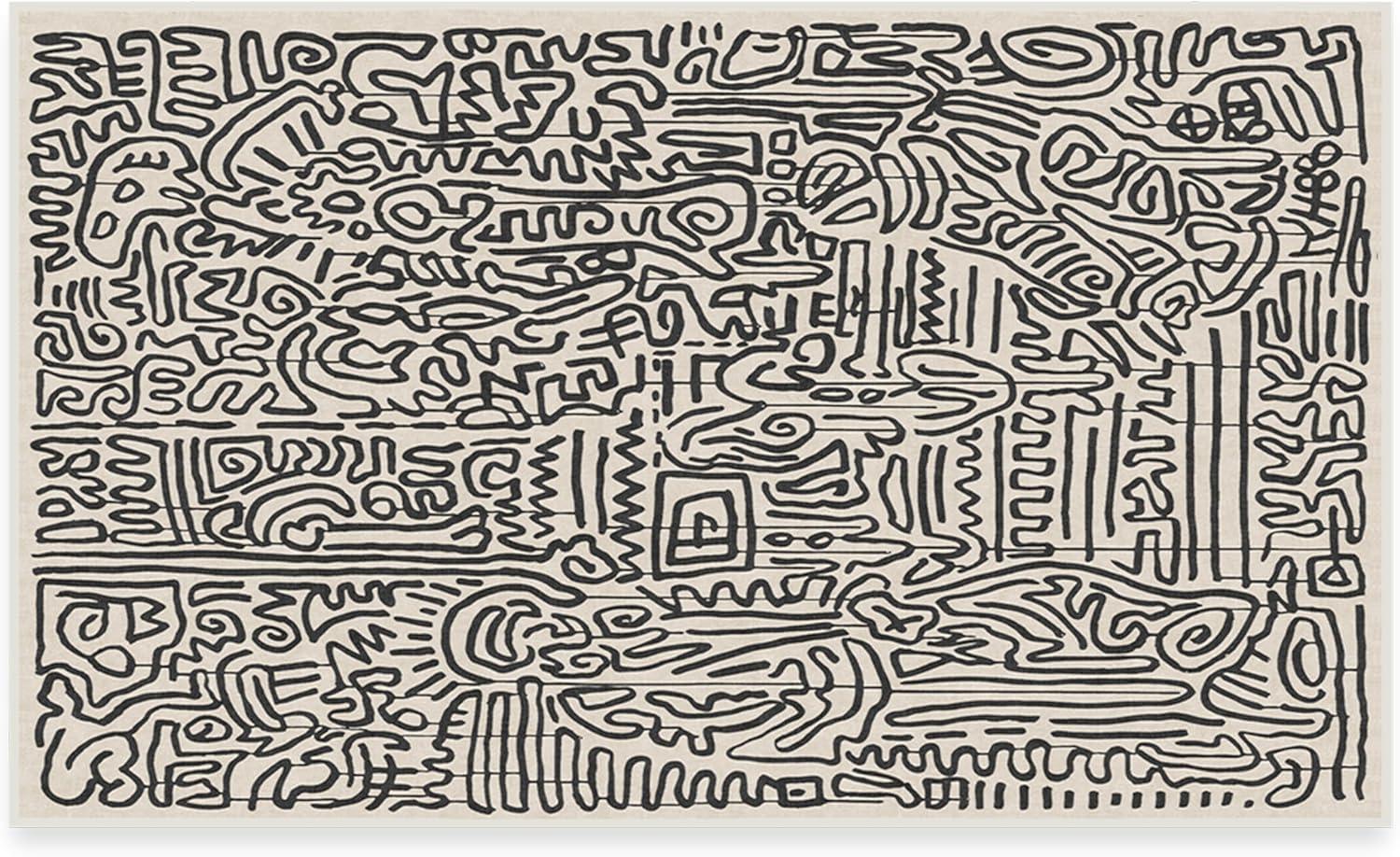 RUGGABLE x Keith Haring Washable Area Rug – Block Party Multicolor 3×5, Stain-Resistant, Non-Slip – Small Machine Washable Rugs for Living Room, Bedroom, Hallway, Entryway & Office–with Standard Pad(Freestyle Black & Ivory – Cushioned Pad)