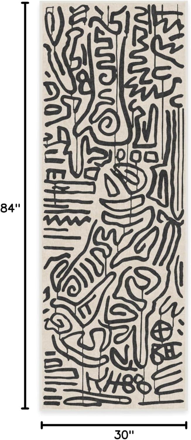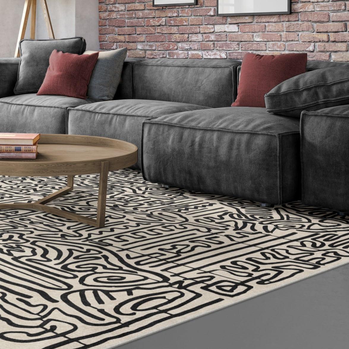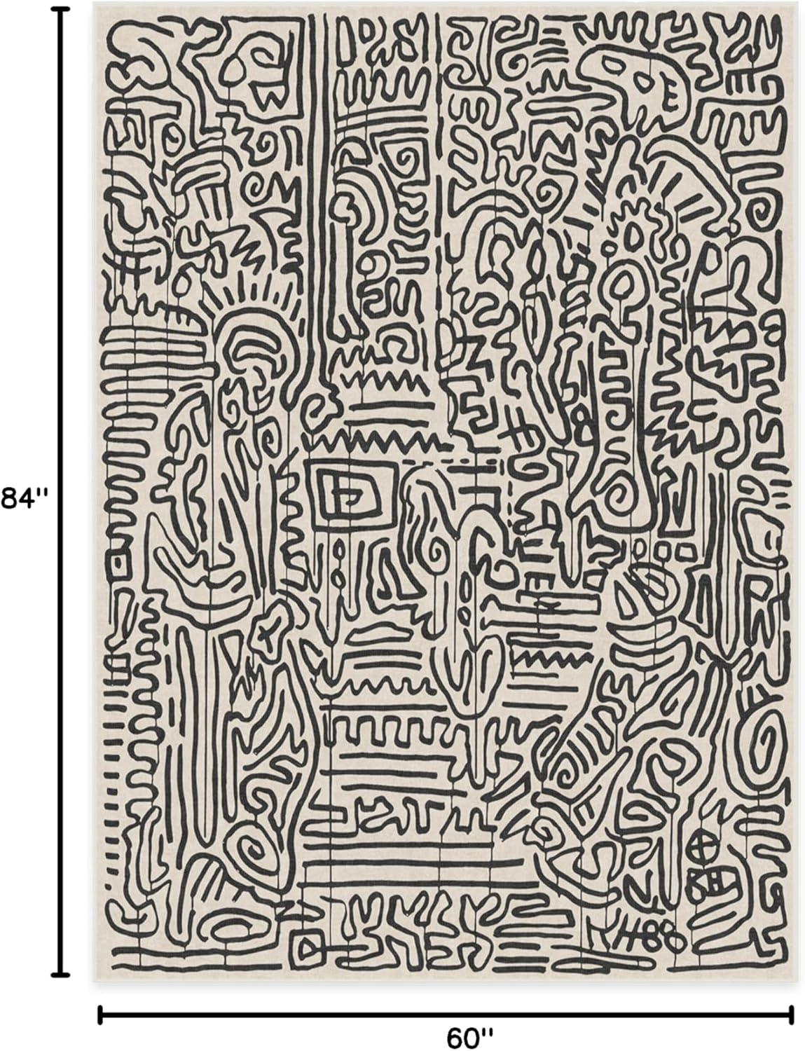 RUGGABLE x Keith Haring Washable Area Rug – Block Party Multicolor 3×5, Stain-Resistant, Non-Slip – Small Machine Washable Rugs for Living Room, Bedroom, Hallway, Entryway & Office–with Standard Pad(Freestyle Black & Ivory – Cushioned Pad)