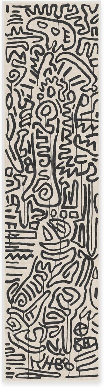 RUGGABLE x Keith Haring Washable Area Rug – Block Party Multicolor 3×5, Stain-Resistant, Non-Slip – Small Machine Washable Rugs for Living Room, Bedroom, Hallway, Entryway & Office–with Standard Pad(Freestyle Black & Ivory – Standard Pad)