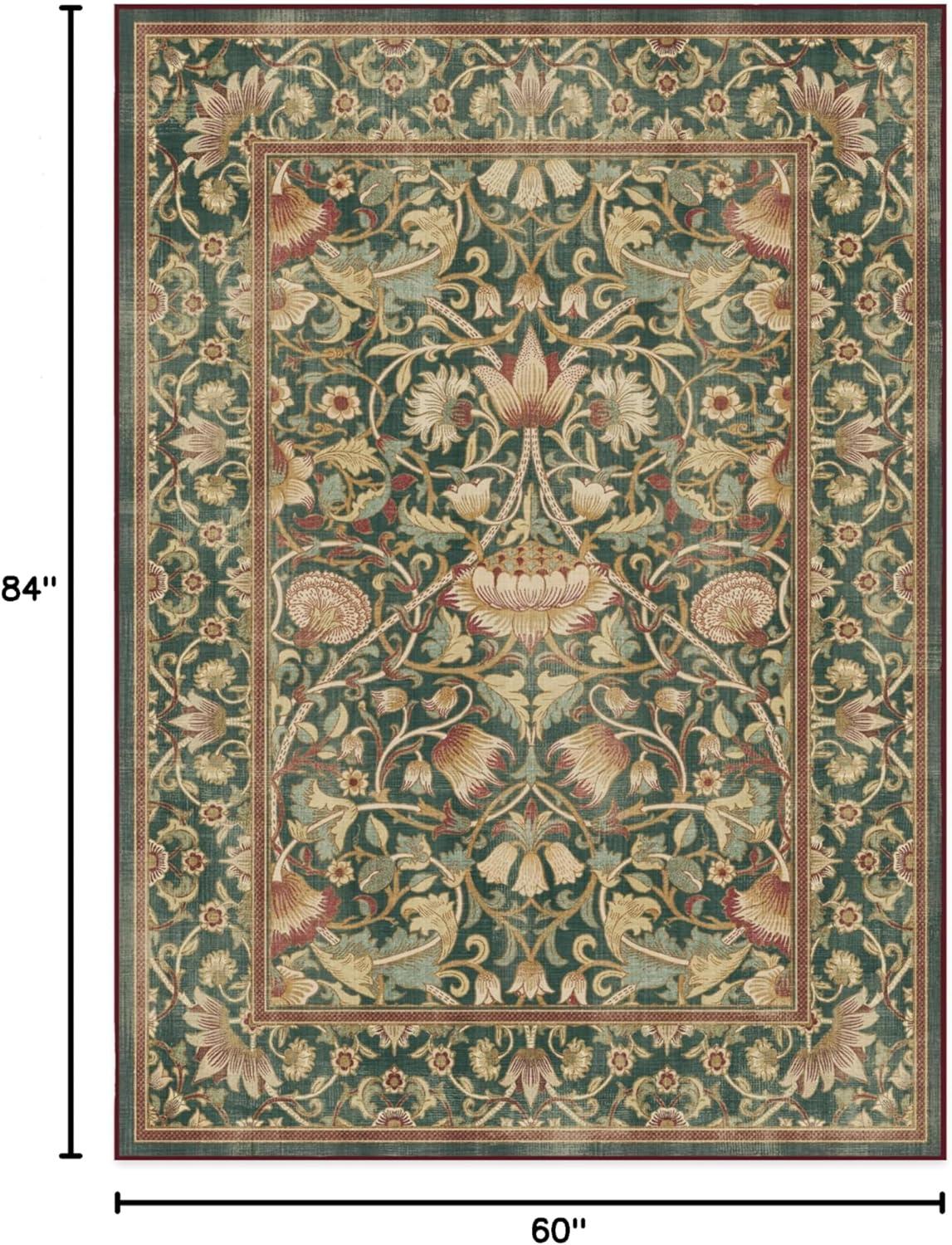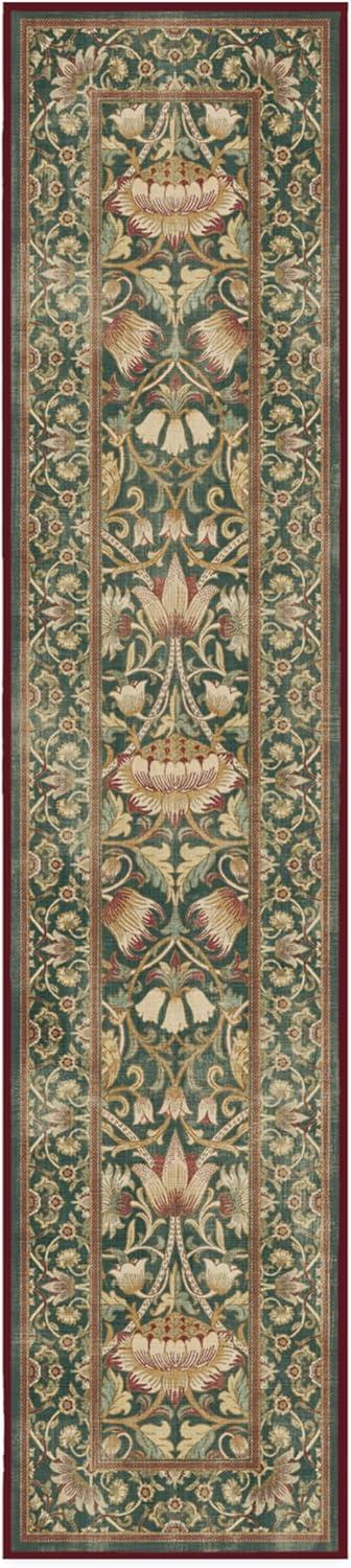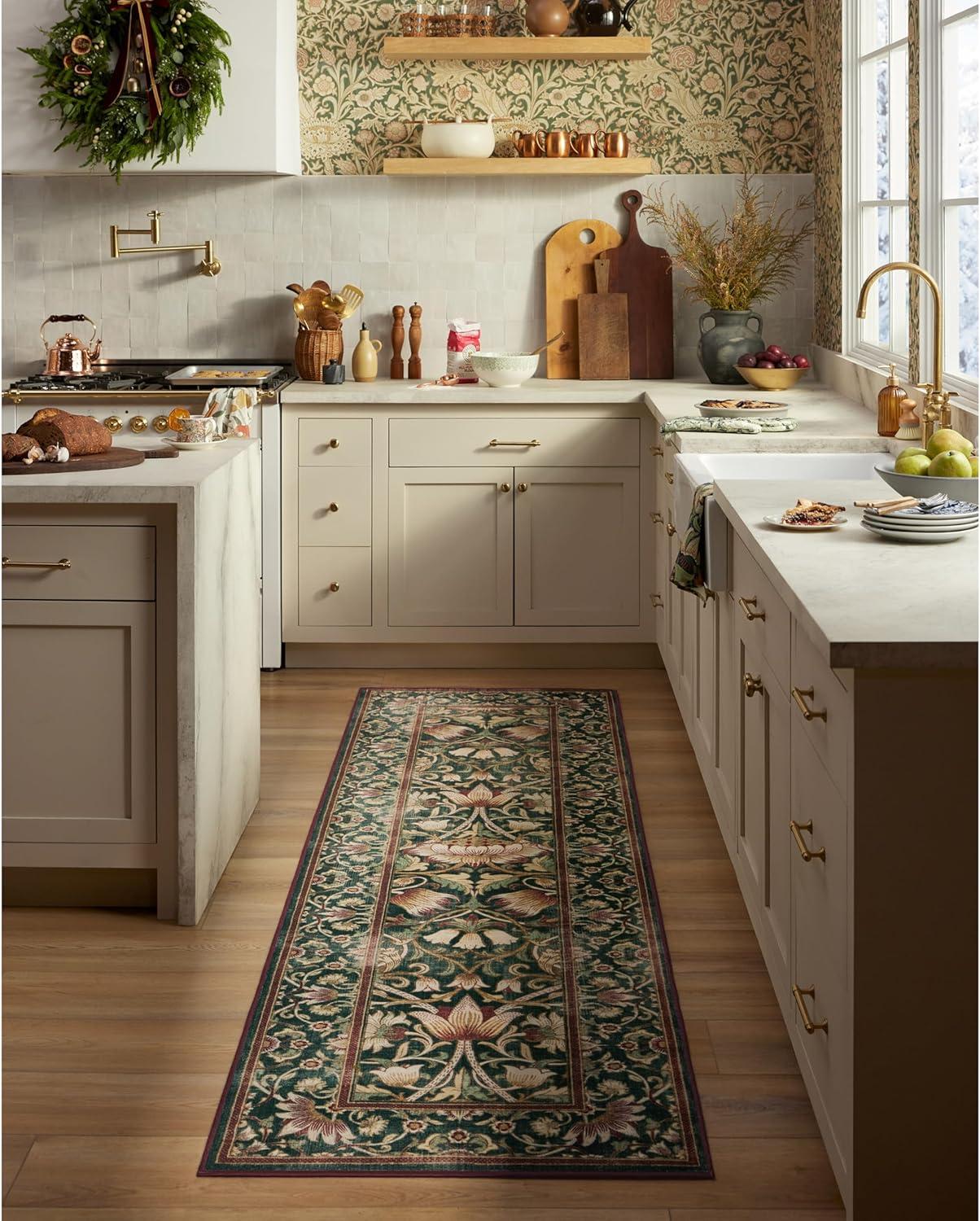 RUGGABLE x Morris & Co Washable Runner Rug – Mallow Rust Red 2.5×7, Stain-Resistant, Non-Slip Hallway Runner – Machine Washable Rug for Hallway, Entryway, Living Room & Kitchen–with Standard Pad(Lodden Soft Evergreen & Gold – Standard Pad)
