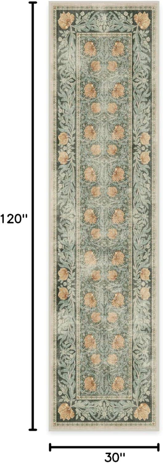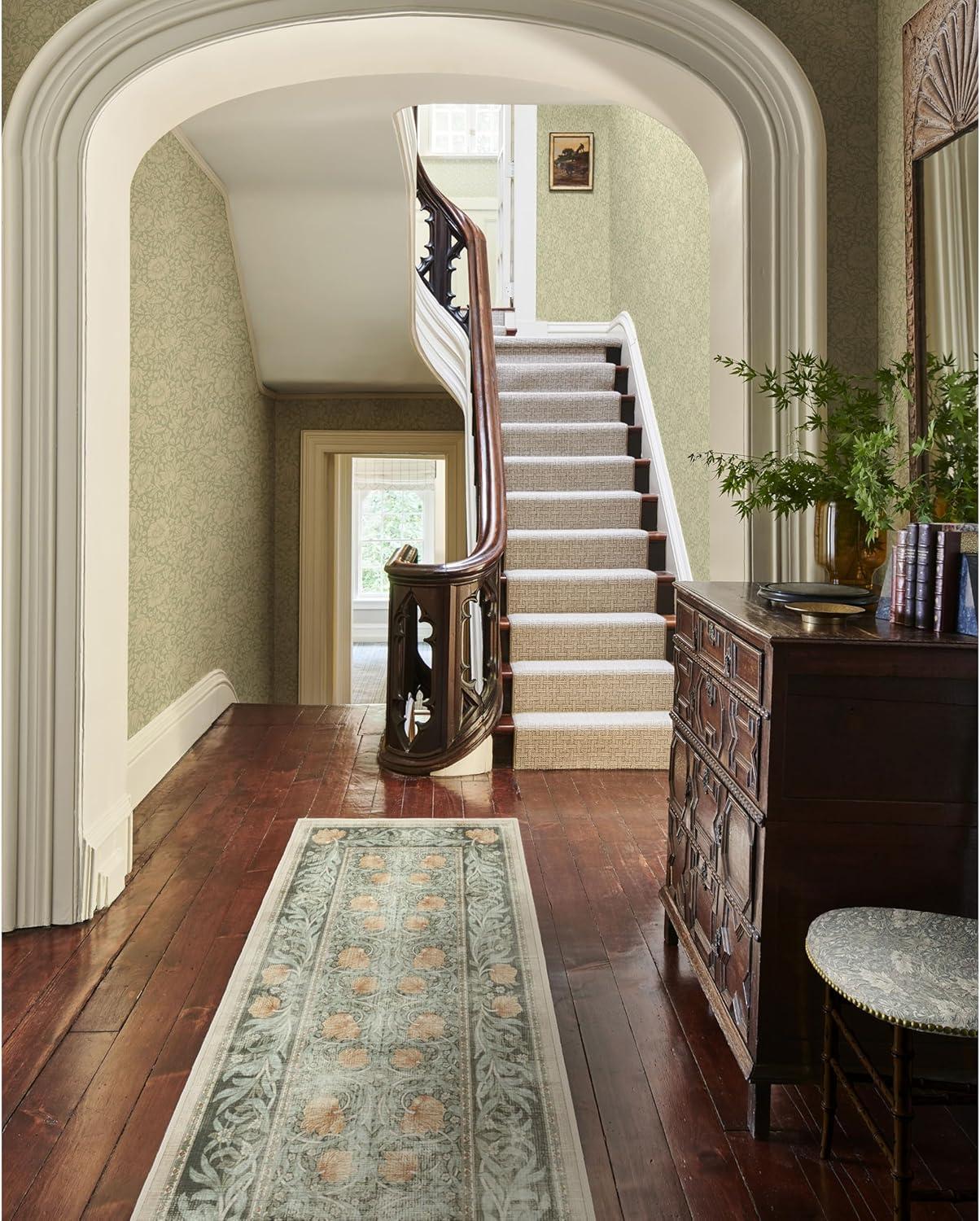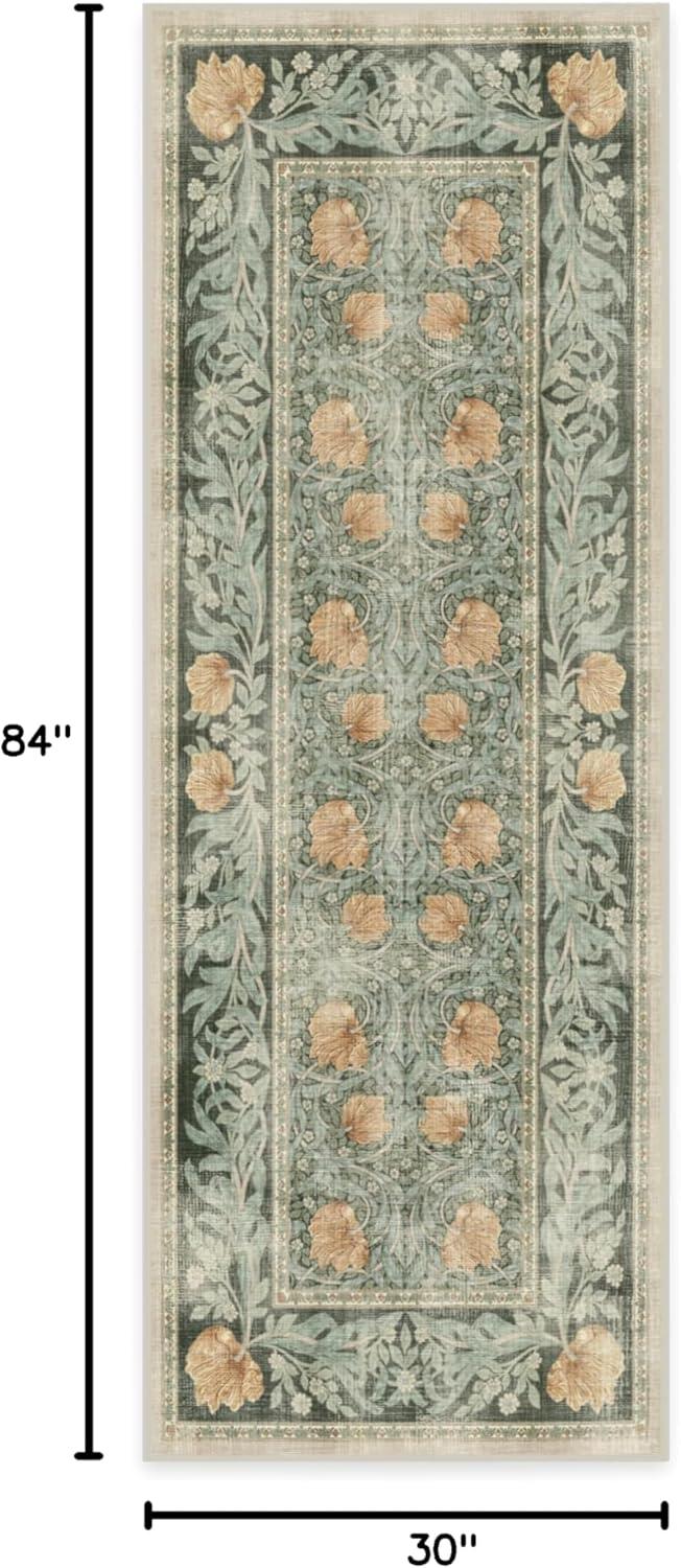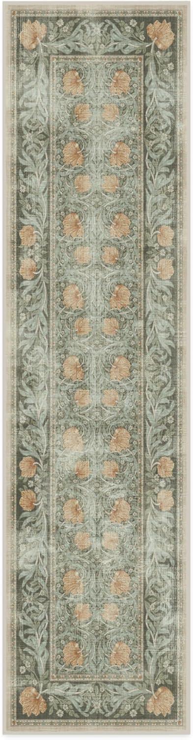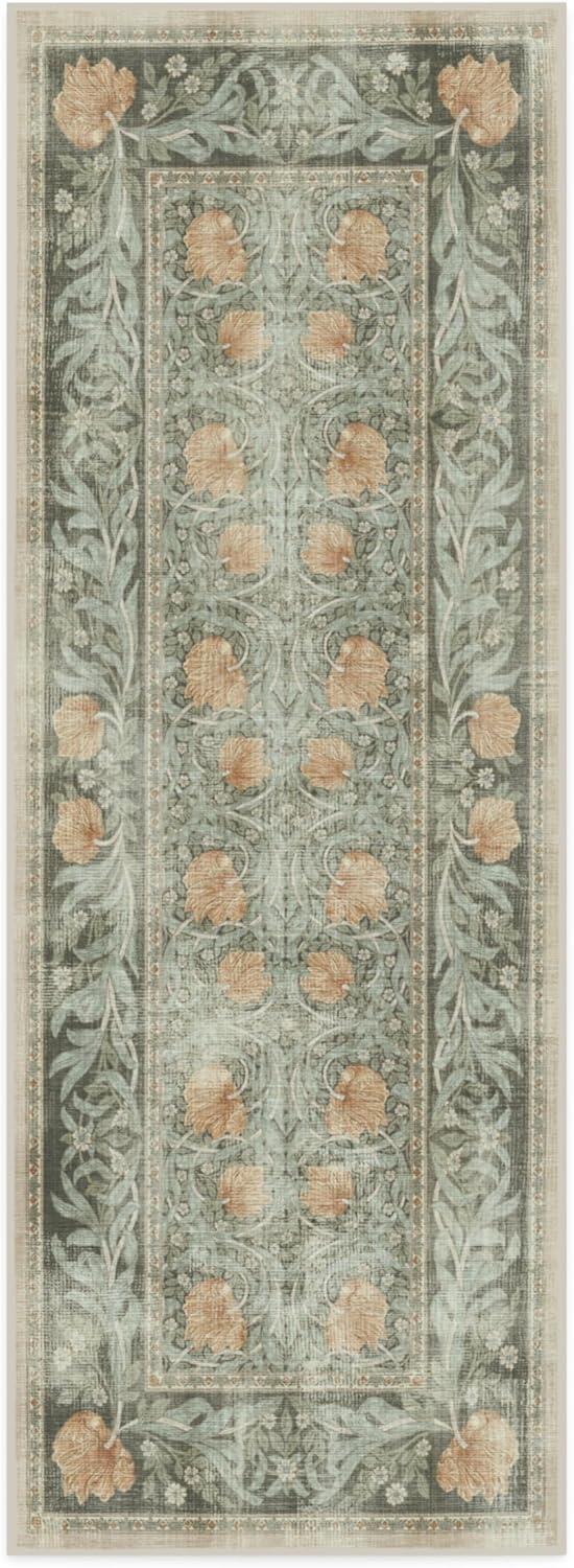 RUGGABLE x Morris & Co Washable Runner Rug – Mallow Rust Red 2.5×7, Stain-Resistant, Non-Slip Hallway Runner – Machine Washable Rug for Hallway, Entryway, Living Room & Kitchen–with Standard Pad(Pimpernel Vintage Green – Standard Pad)