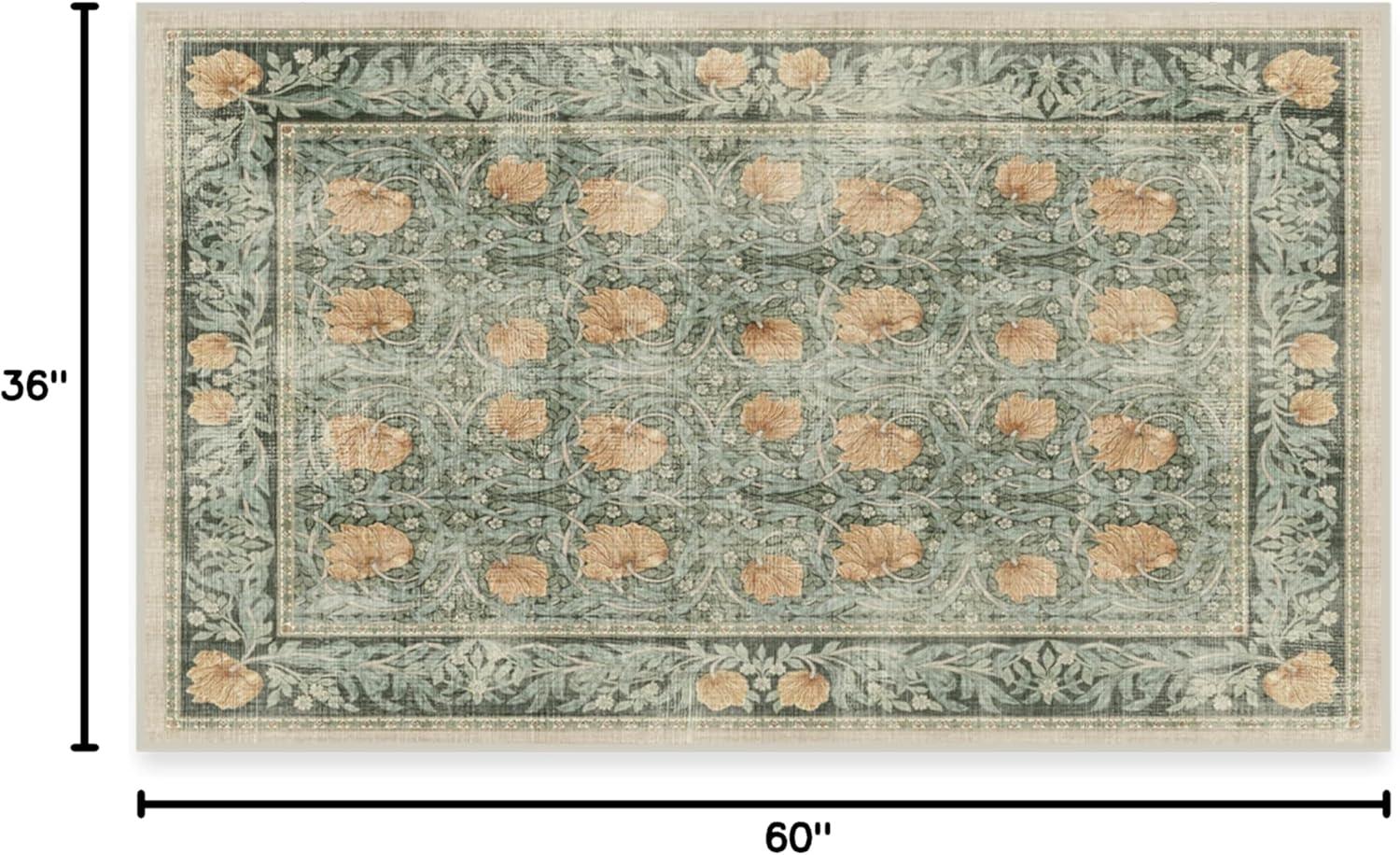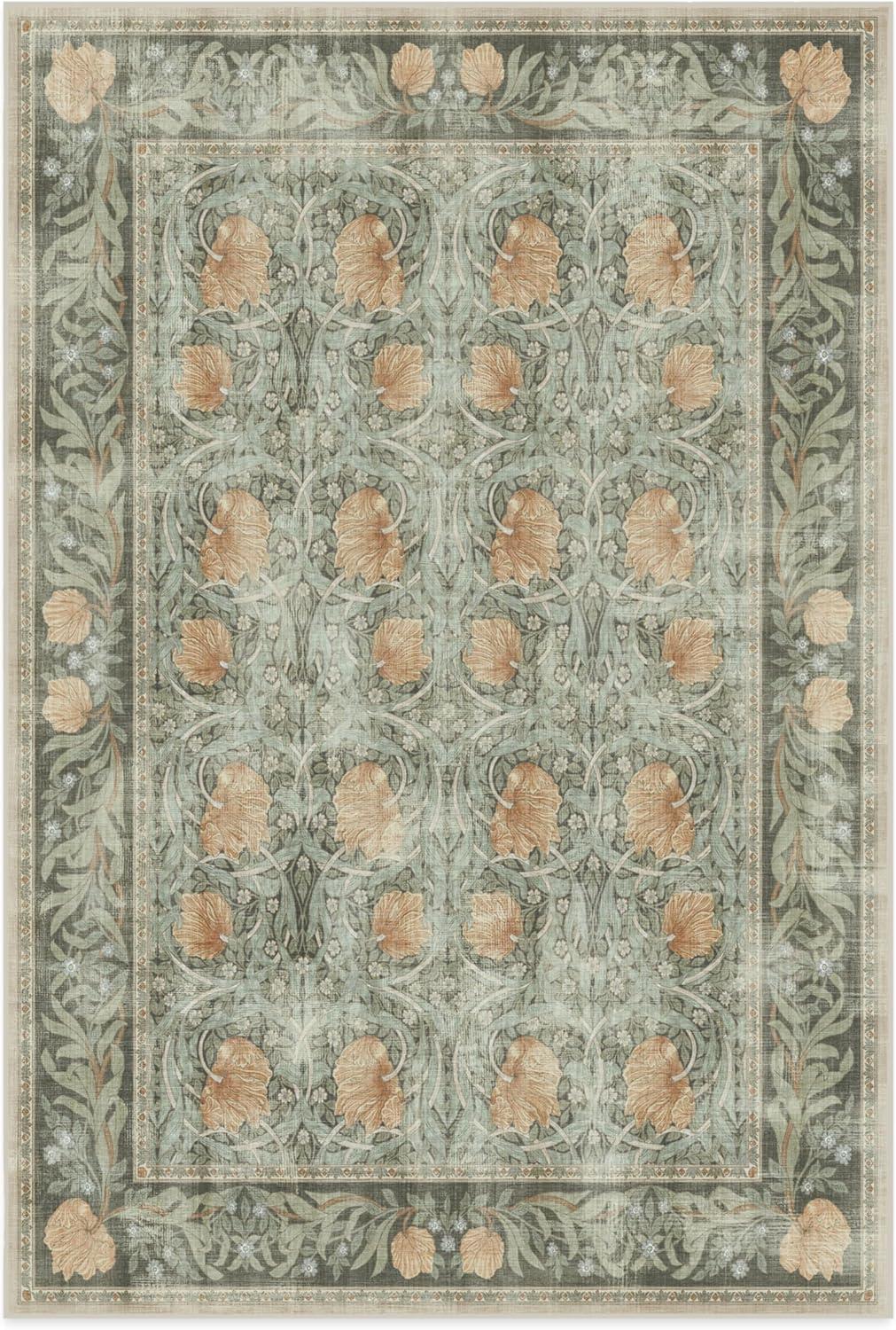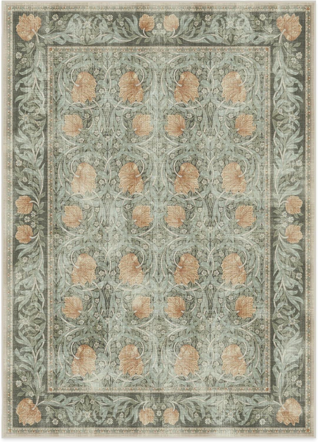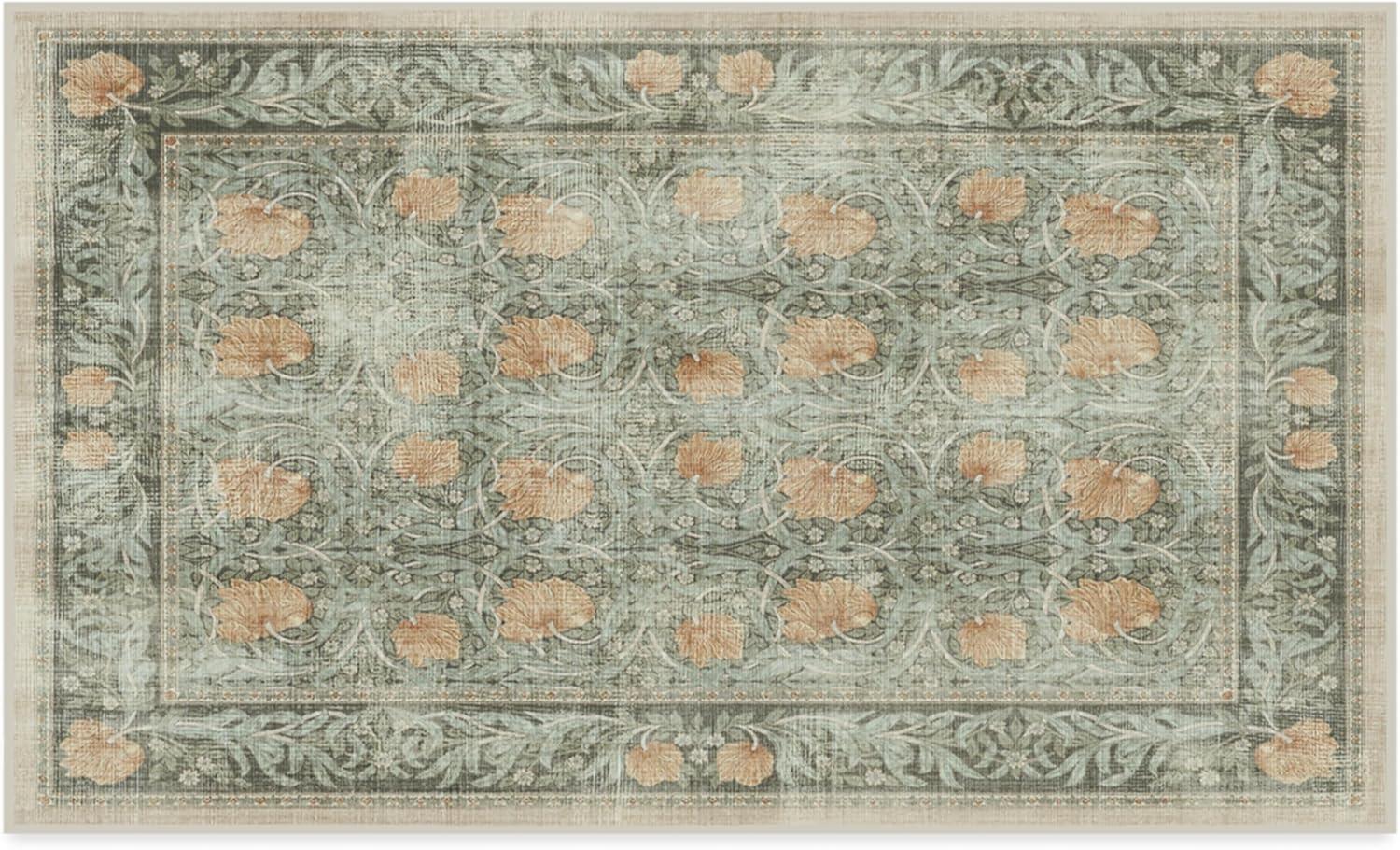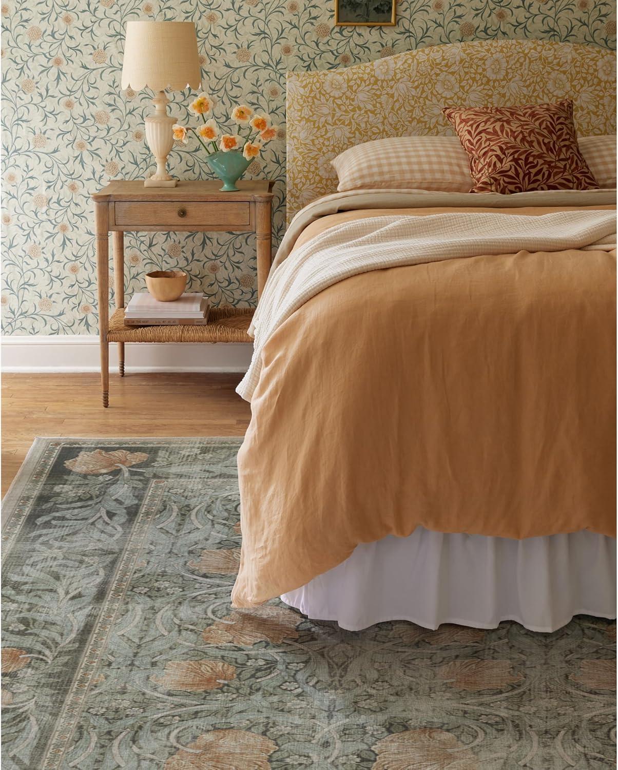 RUGGABLE x Morris & Co Washable Runner Rug – Mallow Rust Red 2.5×7, Stain-Resistant, Non-Slip Hallway Runner – Machine Washable Rug for Hallway, Entryway, Living Room & Kitchen–with Standard Pad(Pimpernel Vintage Green – Standard Pad)