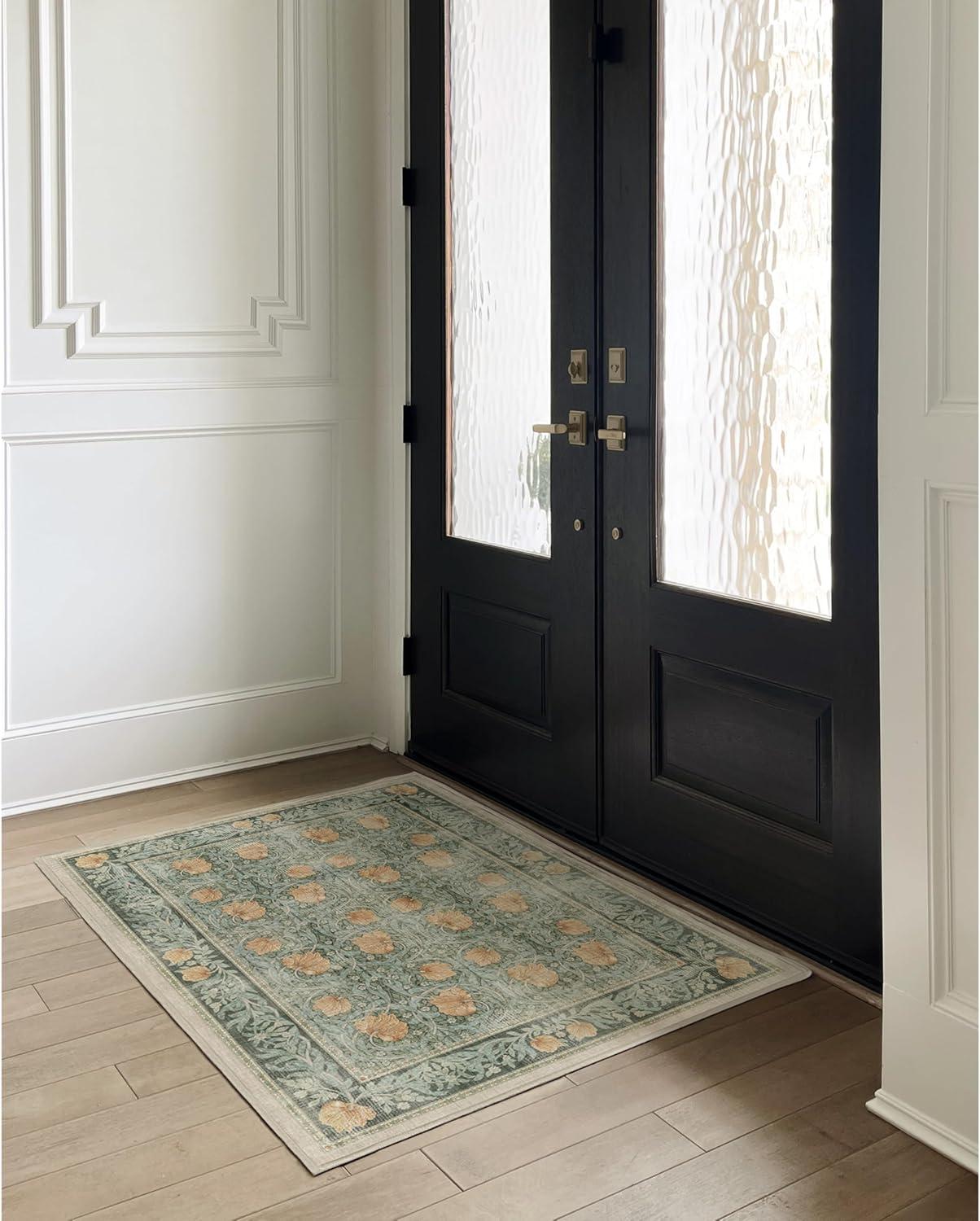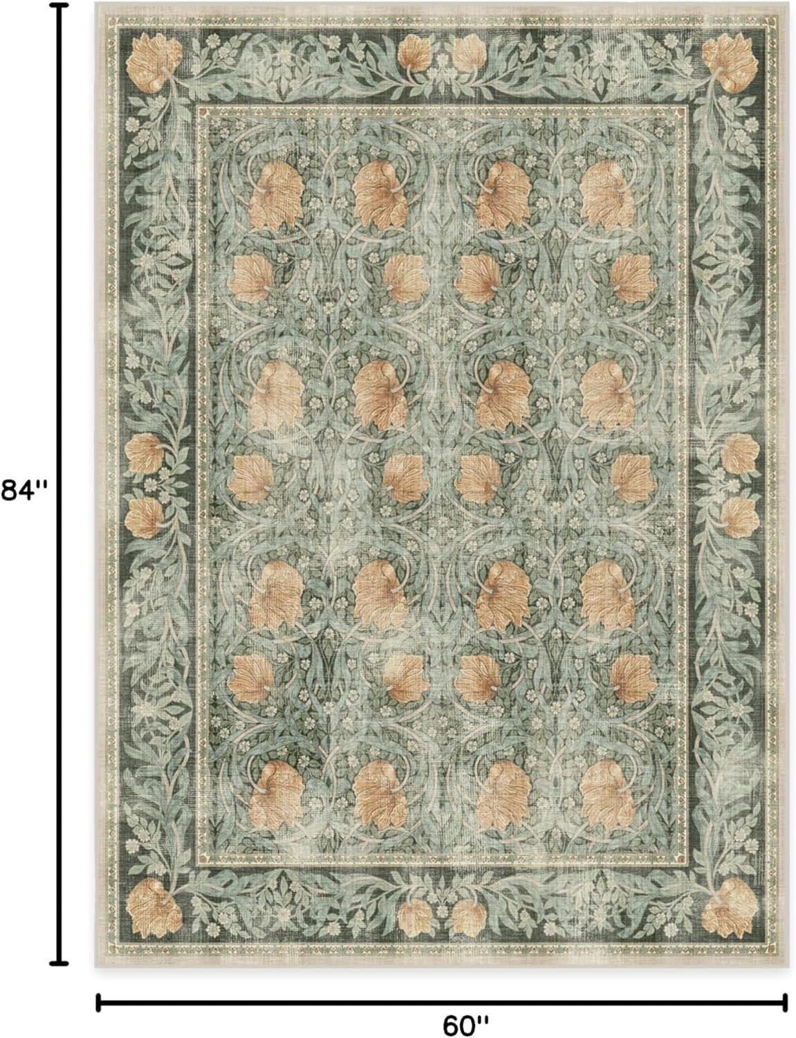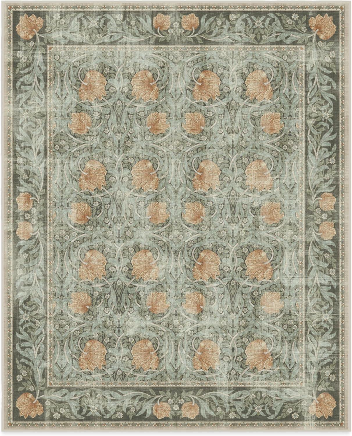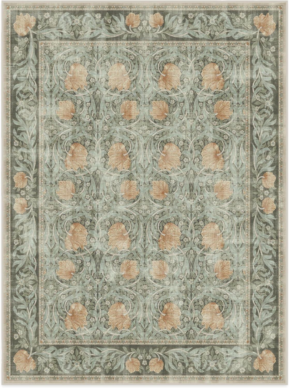 RUGGABLE x Morris & Co Washable Runner Rug – Mallow Rust Red 2.5×7, Stain-Resistant, Non-Slip Hallway Runner – Machine Washable Rug for Hallway, Entryway, Living Room & Kitchen–with Standard Pad(Pimpernel Vintage Green – Standard Pad)